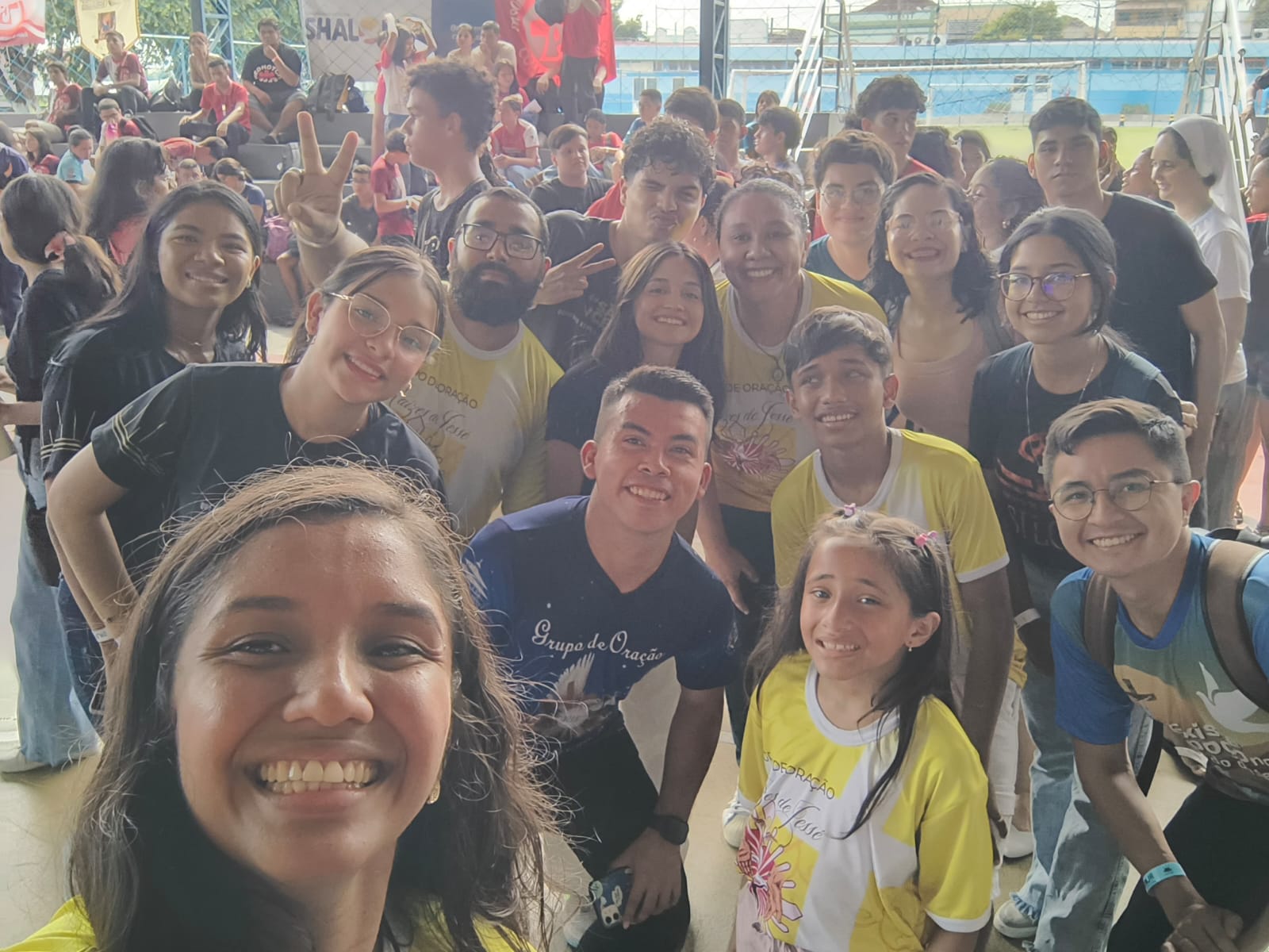 Nossos jovens participaram do encontro com muita alegria e corações abertos. Eles se envolveram intensamente no momento de louvor, na oração do terço missionário, que foi singular, e prestaram atenção em tudo que foi compartilhado pelos coordenadores do evento. Tivemos também a honra de contar com a presença de Dom Hudson, que dirigiu palavras aos 800 jovens presentes: “Não se afastem da Comunidade, não se afastem da vida de oração, não se afastem de Jesus!”