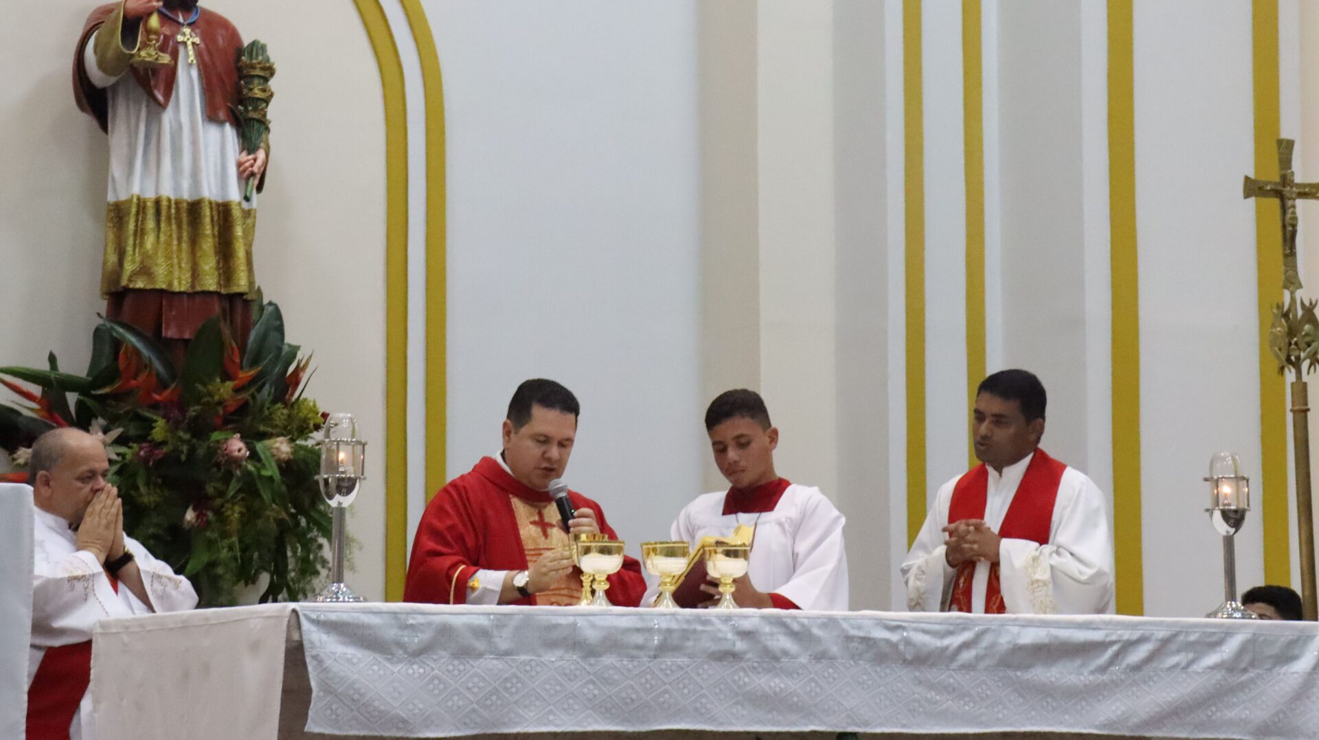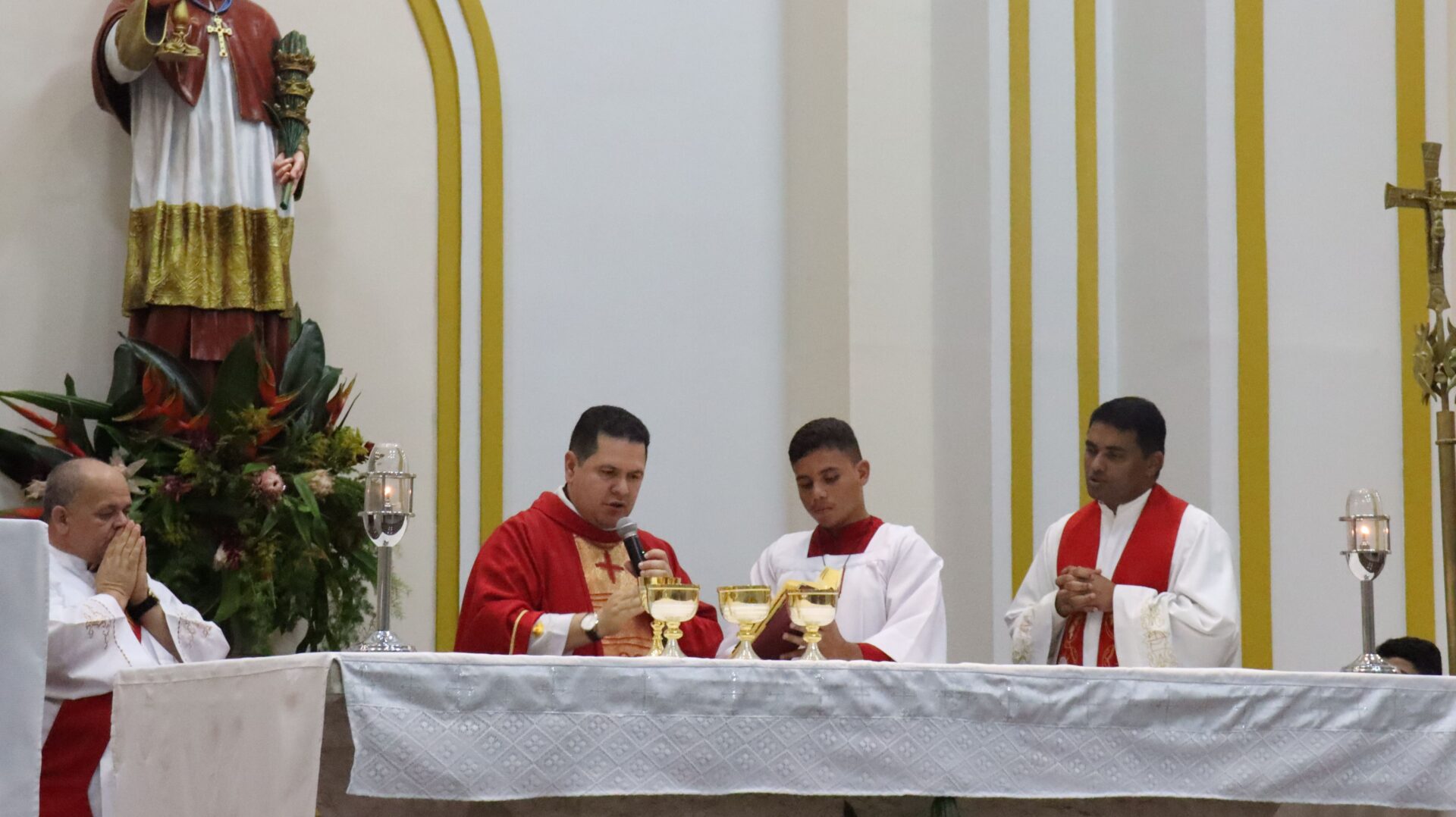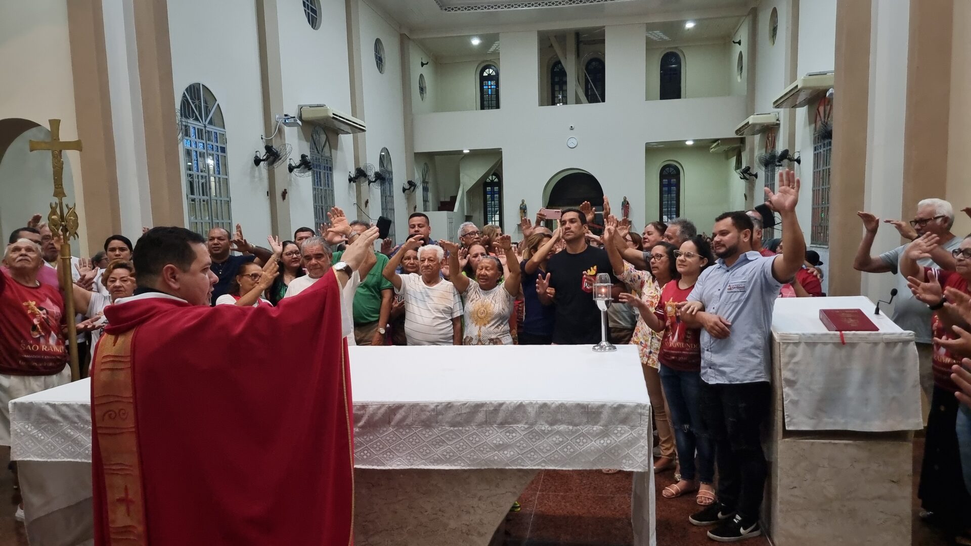 2º Dia do tríduo de São Raimundo Nonato, missa presidida pelo Pe. Amarildo e Pe. John Paul. Ao final da missa foi dada uma benção especial para os casais.
