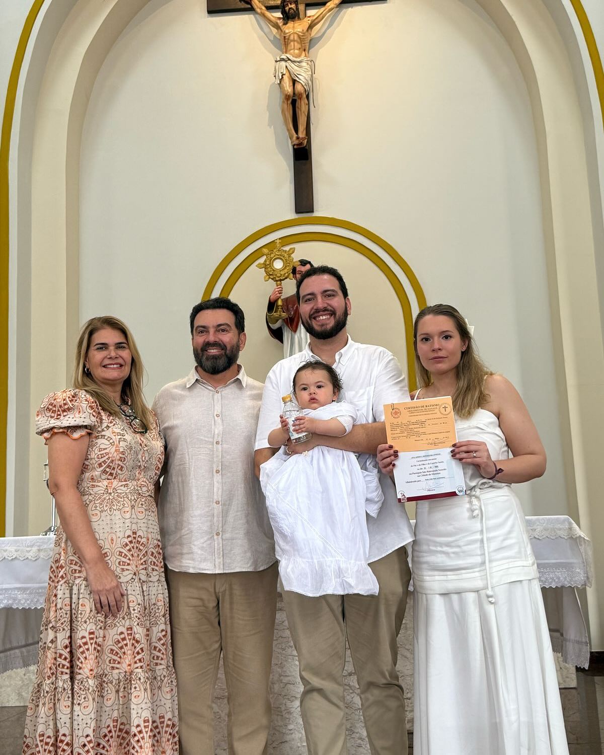 A criança, nascida em Belém-Lisboa, é filha de Pai brasileiro e Mãe Russa. O Casal, unido pelo amor, realizou hoje o Sacramento do Batismo de sua pequena!