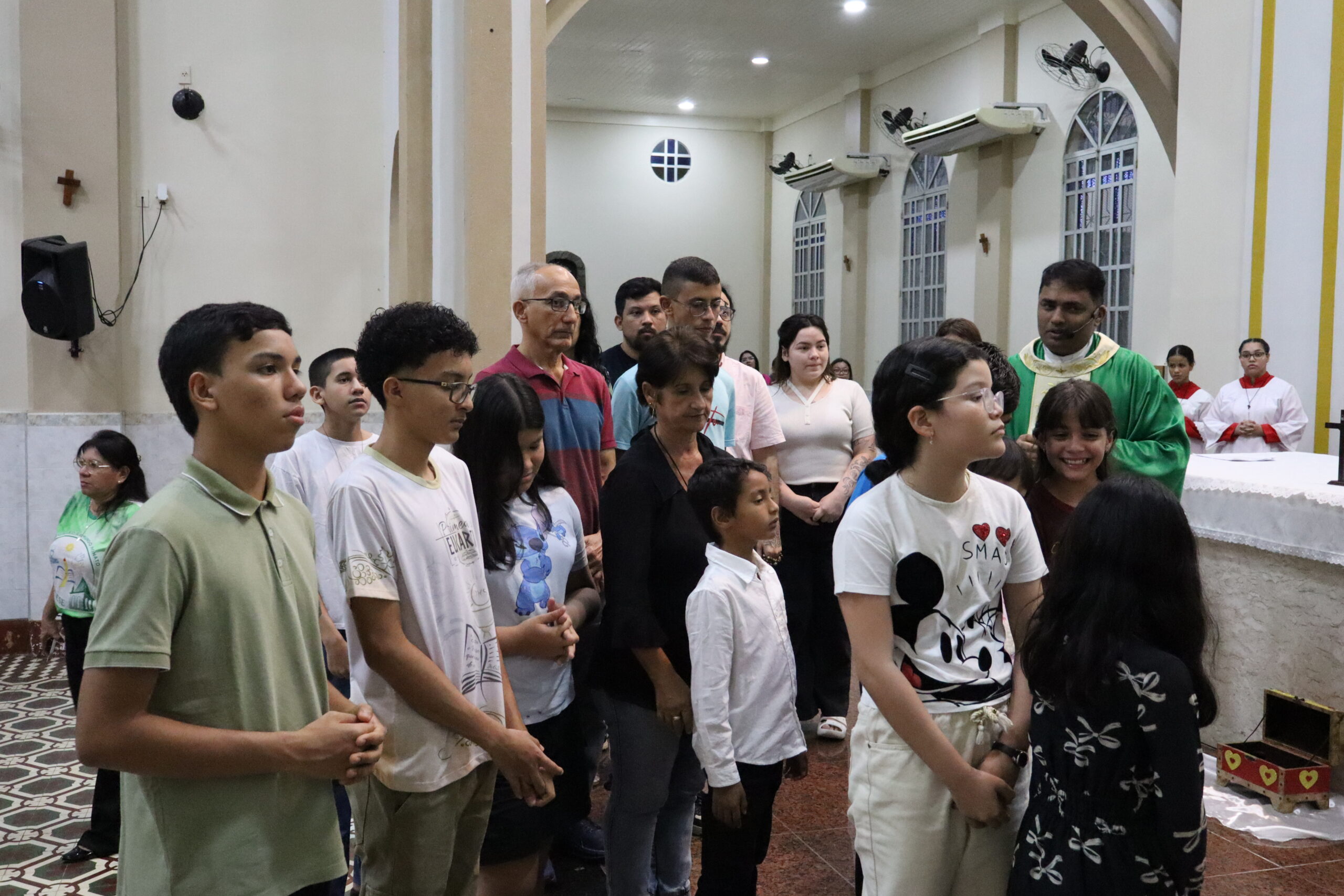 Neste domingo, 15 de fevereiro, nas celebrações das três comunidades de nossa Paróquia São Raimundo Nonato, iniciamos o ano catequético com a presença dos catequizandos, familiares e catequistas. O Rito foi presidido por Pe. John Paul, que recebeu das mãos dos coordenadores a lista contendo os nomes dos catequizandos e catequistas de cada fase da catequese, acolhendo cada um no seio de suas comunidades, onde todos foram chamados a cuidar e acompanhar a caminhada de fé de toda comunidade catequética. O Rito encerrou com a Consagração a Nossa Senhora, num gesto de entrega de todos nas mãos de Maria Santíssima, mãe de nosso Senhor Jesus Cristo, nossa primeira catequista.