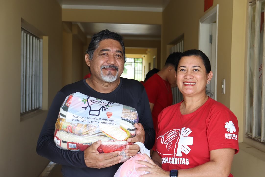 No dia 07/02/2025, a nossa Paróquia foi contemplada, através de parceria da empresa Amazonas Energia, com 30 cestas básicas e 30 frangos.