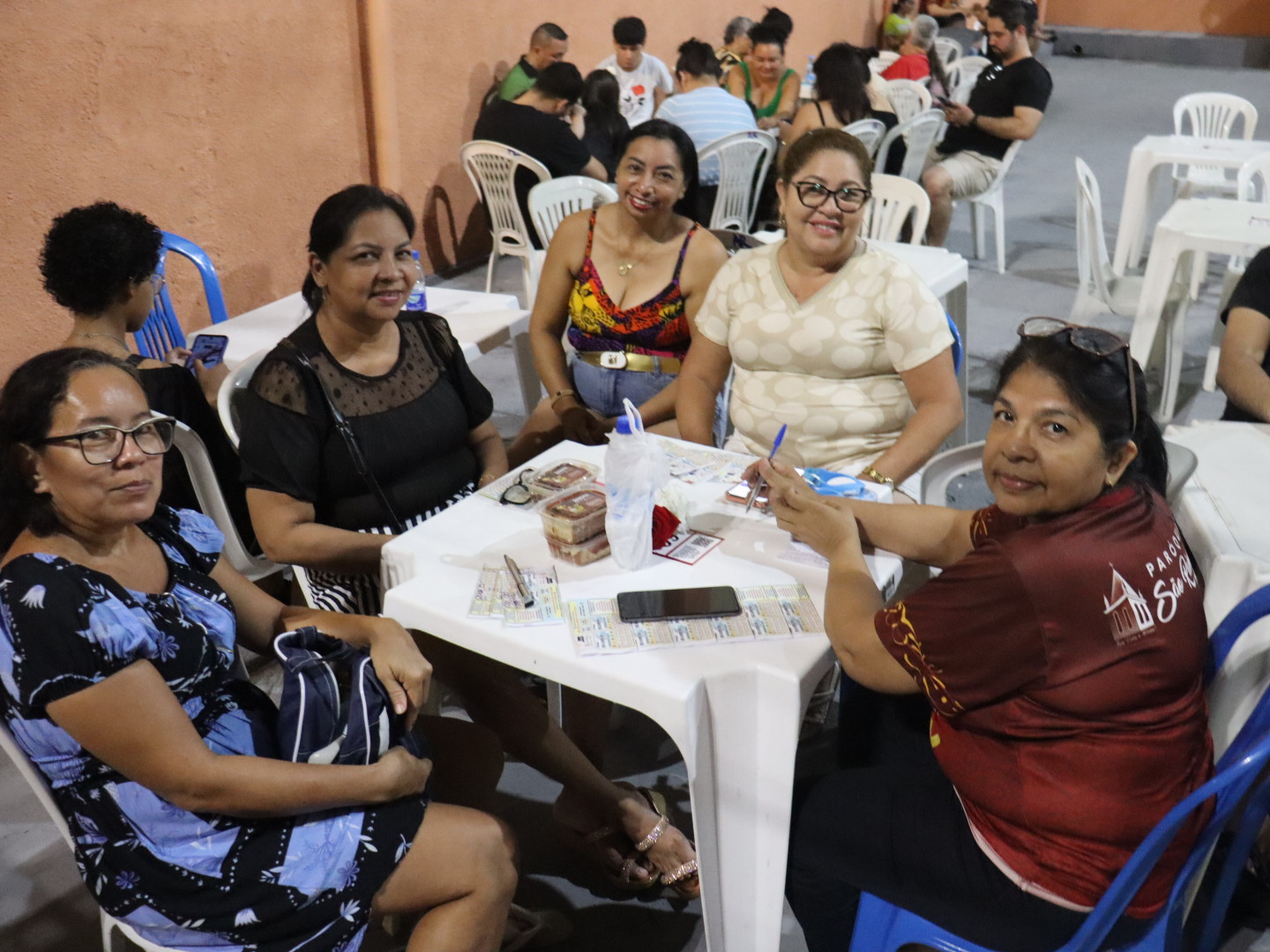 Entre os destaques da noite, tivemos o nosso tradicional Bingão Paroquial, sempre muito esperado, além do especial leilão do Bolo do Padroeiro, momento de tradição e devoção que reuniu muitos fiéis.
