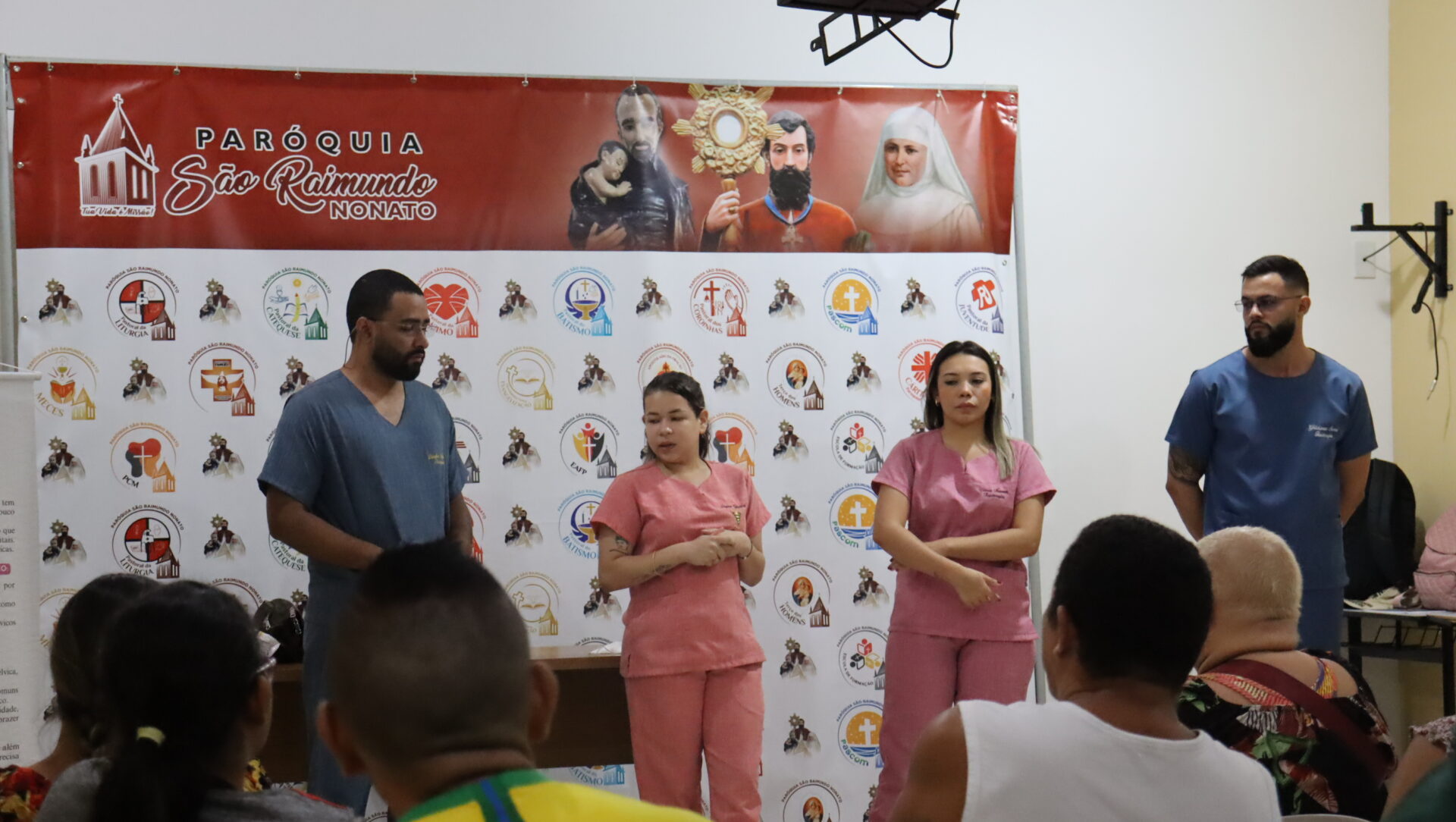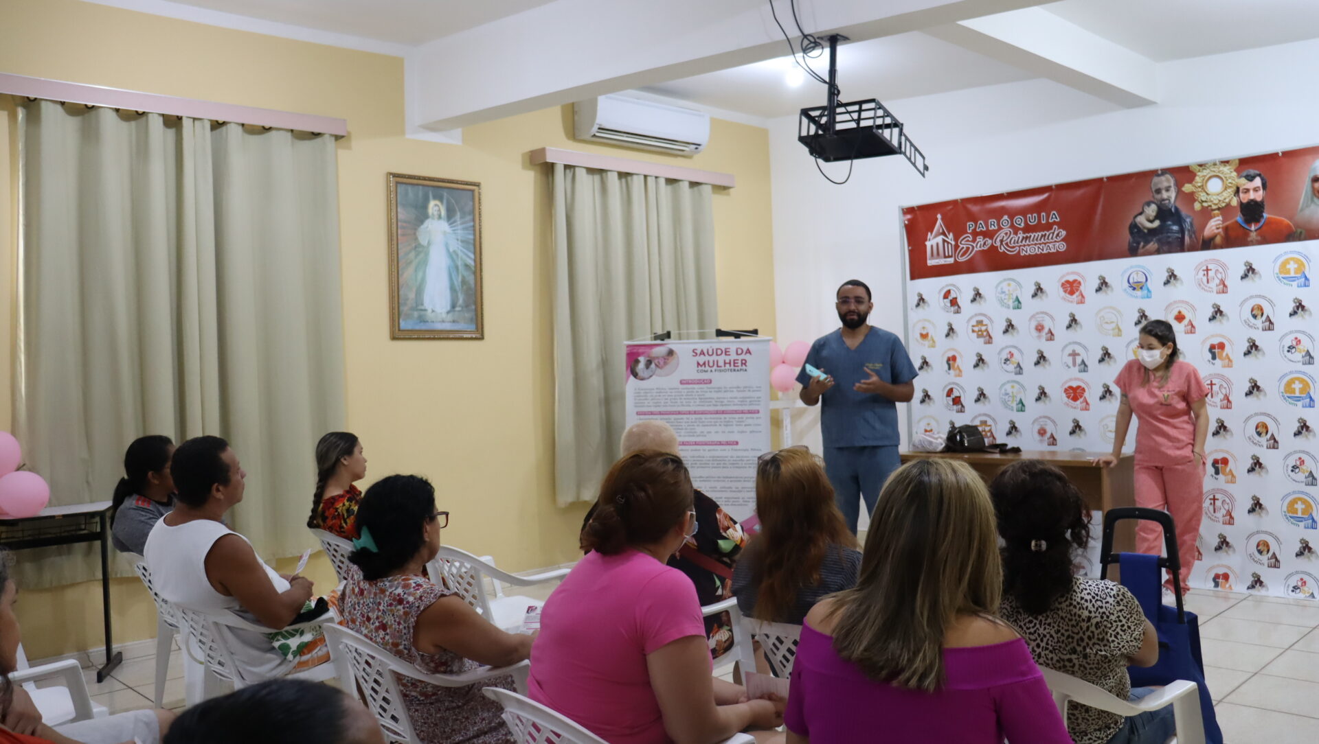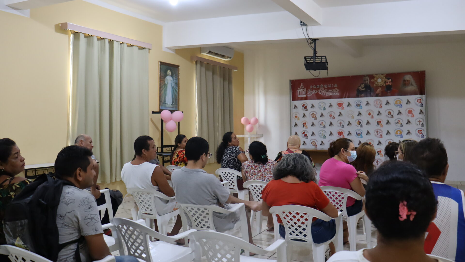 Neste sábado, dia 14 de outubro, a Cáritas da Paróquia São Raimundo Nonato reuniu com 30 representantes das famílias que são atendidas, para mais uma roda de conversa que acontece todos os meses. Nesta, foi possível contar com a parceria dos acadêmicos de fisioterapia da Faculdade Estácio de Sá, que trabalharam o tema: Outubro Rosa e a Fisioterapia na saúde da mulher. Foi um momento muito importante para as mulheres que estavam ali. A partilha, escuta e aprendizado foram destaques nessa atividade. O encontro foi encerrado com entrega de uma cesta básica para as famílias presentes e agradecimento a turma que, a partir de agora, será nossa parceira de atividade.