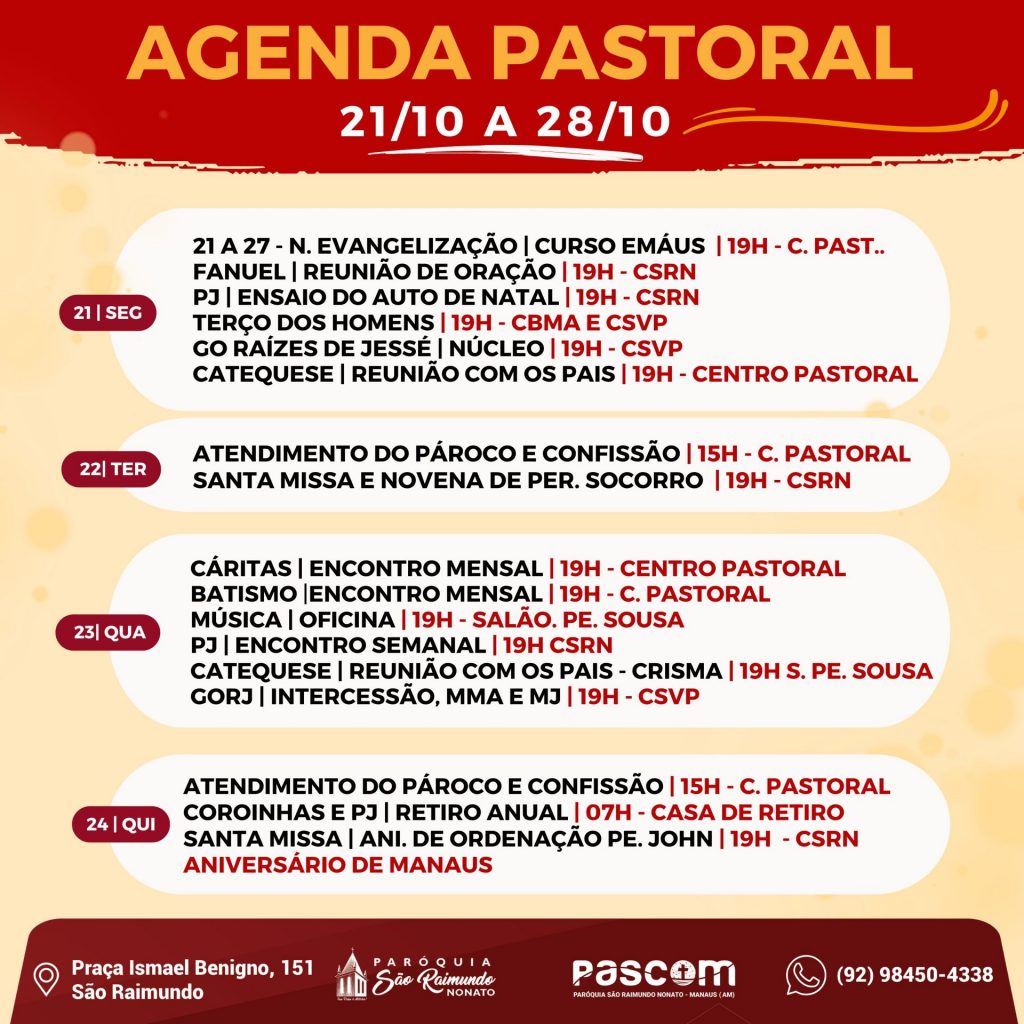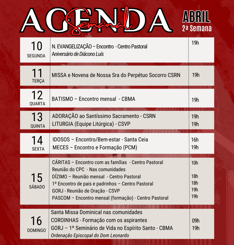 AGENDA SEMANAL – 2ª SEMANA DE ABRIL