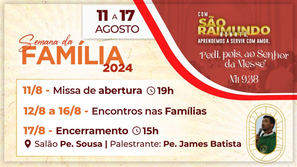 Eventos Paroquiais, Paróquia em Ação 19 de agosto de 2024 Encerramento da SEMANA DA FAMÍLIA 2024 Leia Mais