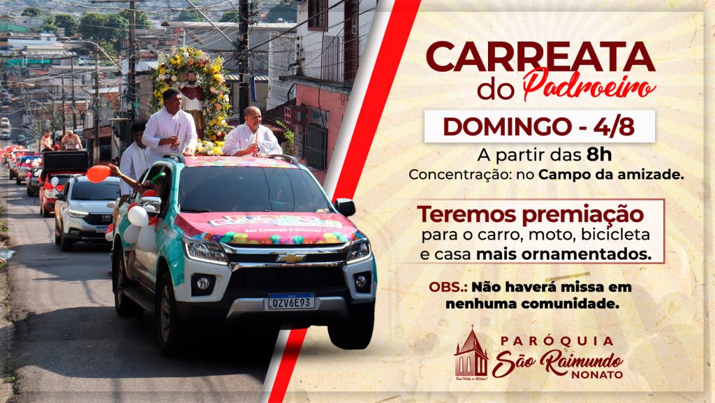 Eventos Paroquiais 3 de agosto de 2024 Carreata do padroeiro São Raimundo Nonato 2024_Percurso Leia Mais