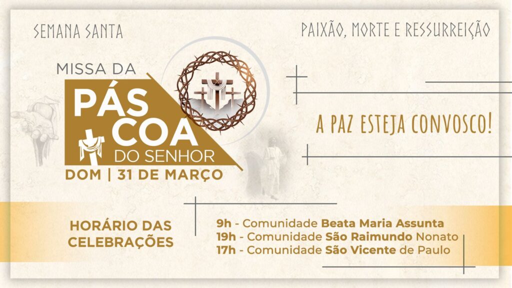 Avisos Paroquiais 30 de março de 2024 CRISTO RESSUSCITOU! VERDADEIRAMENTE RESSUSCITOU! ALELUIA! Leia Mais
