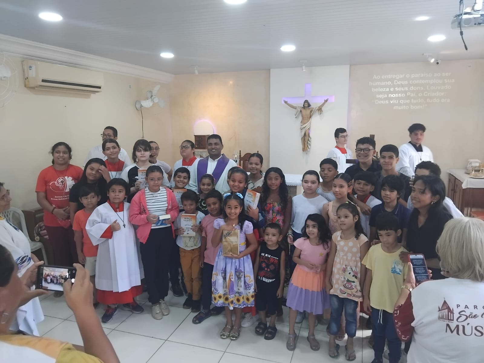 Agradecemos a Deus por sua Palavra que nos ensina, ajuda e transforma. Agradecemos ao nosso Pároco Pe John e ao Sr Ferreira, Ministro da eucaristia que entregaram um grande tesouro nas mãos dos catequizandos. Agradecemos aos catequizandos por suas docilidades ao desejar a Palavra de Deus. Somos gratos aos catequistas das turmas, aos músicos, aos familiares e a Comunidade.