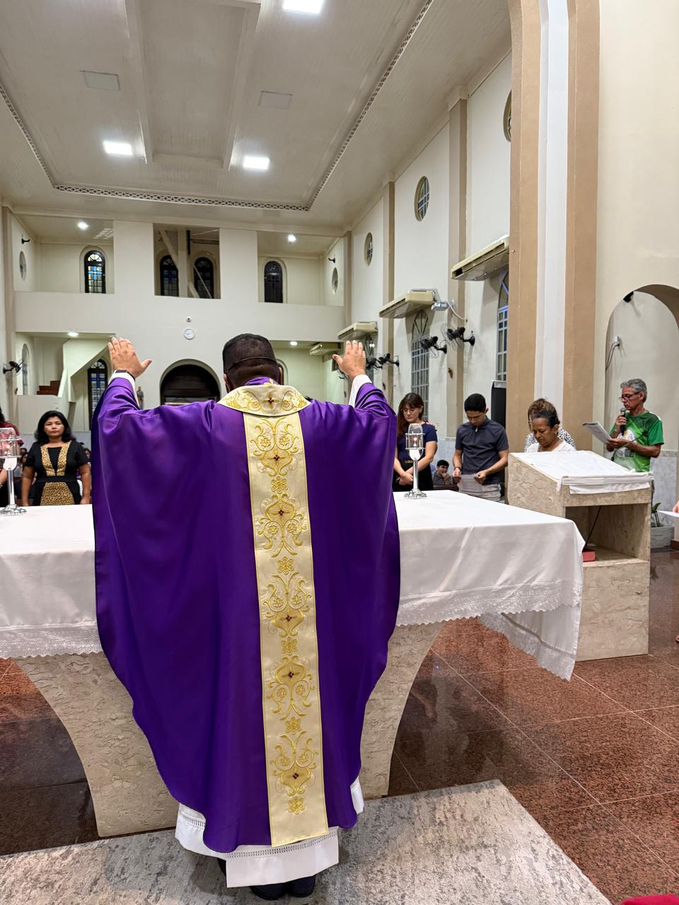 Na noite deste domingo 06/04, na missa das 19 horas, na Comunidade São Raimundo Nonato, realizou-se o Rito do Terceiro Escrutínio para a catequese de Adultos, em preparação para os Sacramentos da Iniciação a Vida Cristã. Pe John presidiu a Celebração e conduziu o referido Rito. Neste Rito, mais uma vez, o sacerdote implora a Deus o Espírito de Penitência, a consciência do pecado e a verdadeira liberdade dos filhos de Deus.