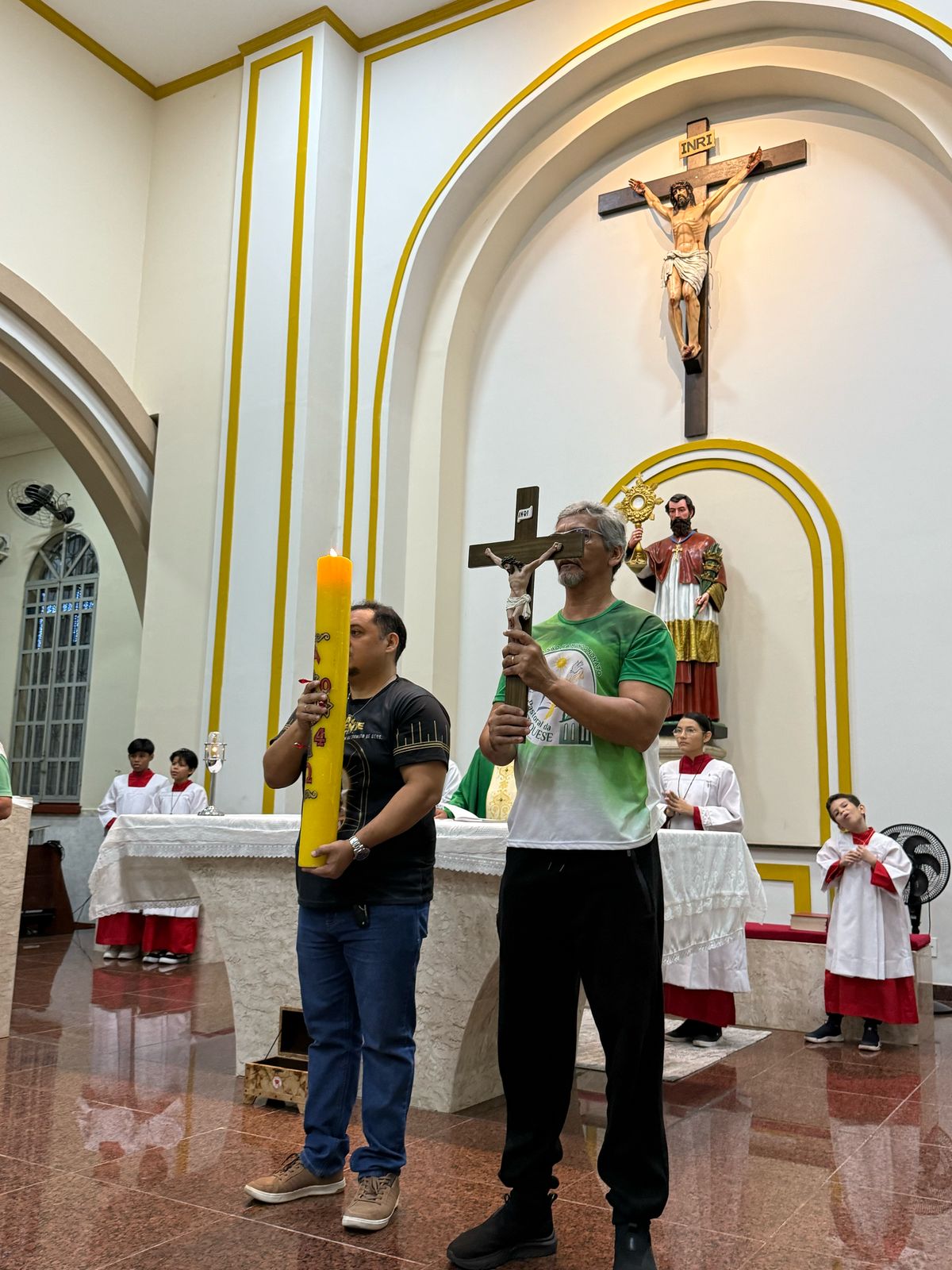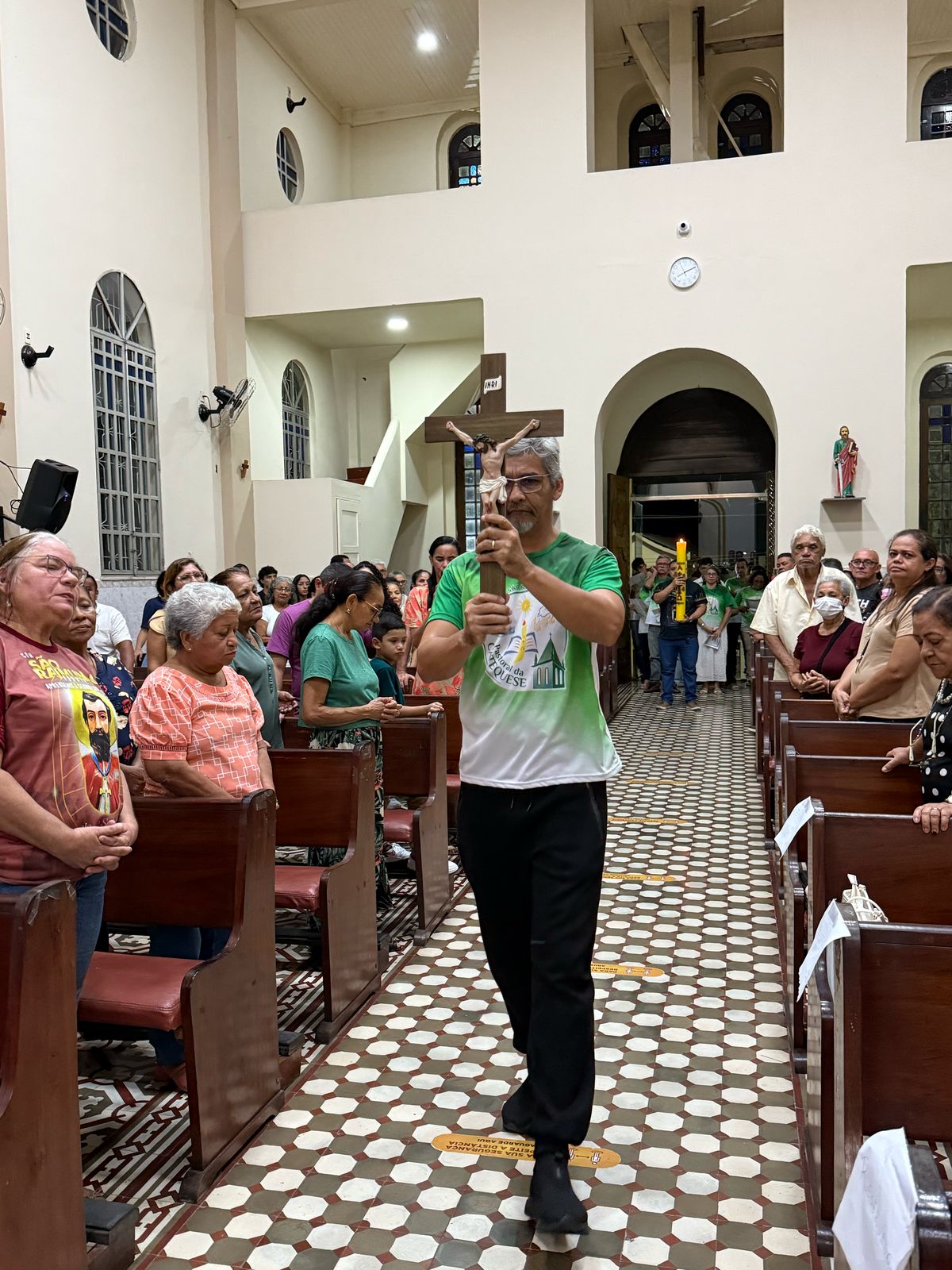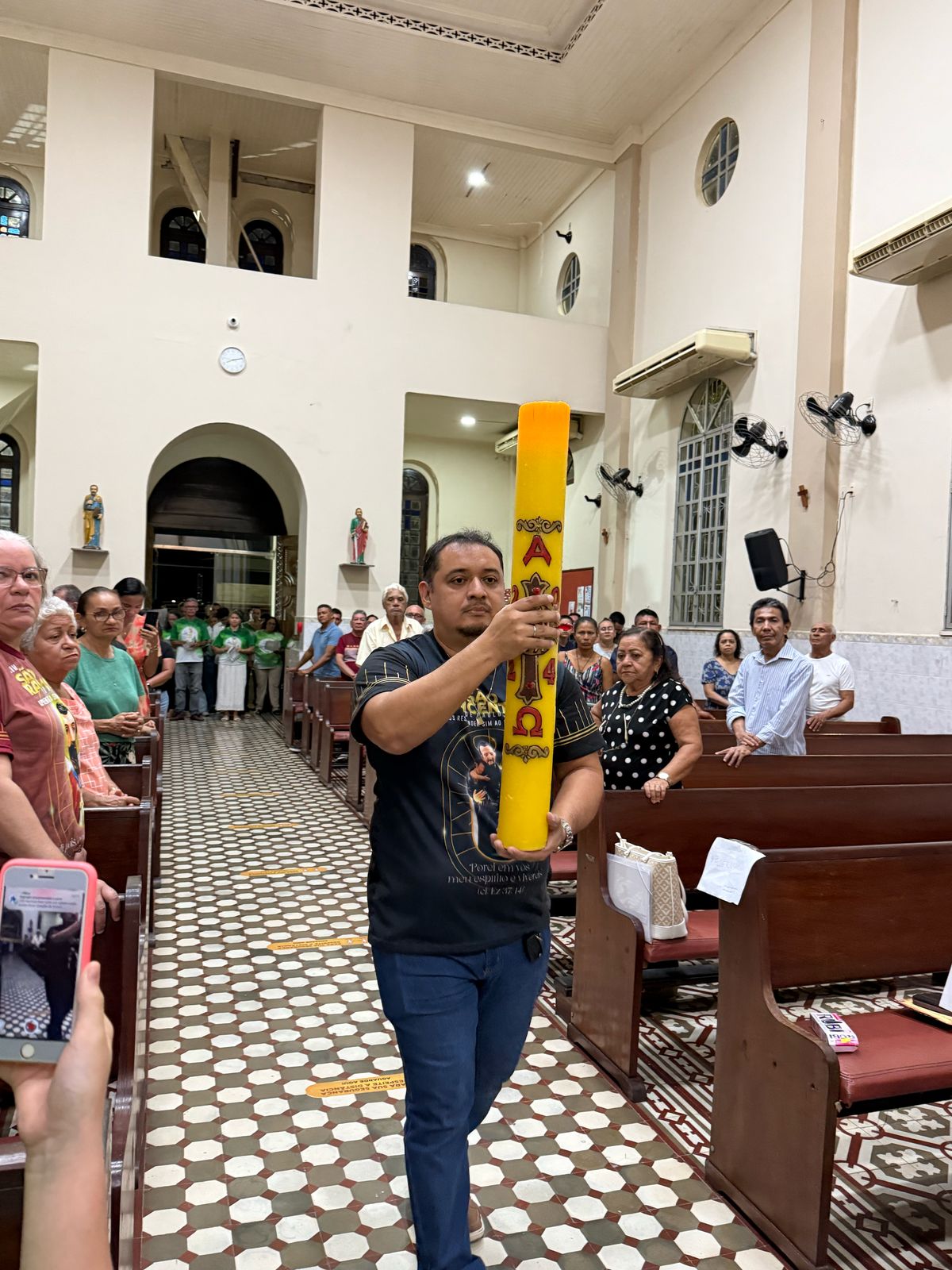 Rito deu início com a condução do celebrante Pe. John Paul, seguido da entrada dos símbolos importantes para catequese como a Bíblia, o Catecismo, o Crucifixo e o Círio Pascal, sendo conduzidos pelos coordenadores da Pastoral, seguidos pelos catequistas.