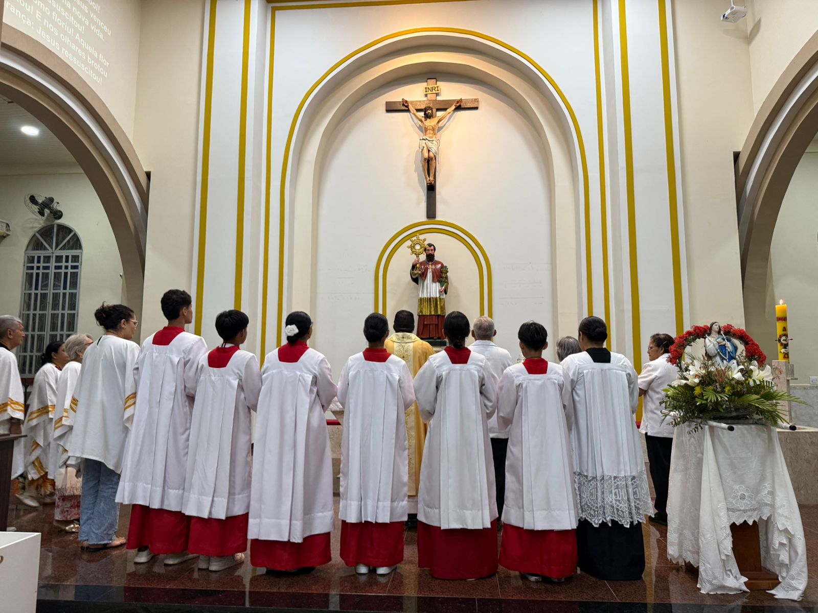 O andor da Mãezinha foi conduzido pelos próprios Acólitos e Coroinhas. Encerramos com a Santa missa das 19 horas, presidida por nosso pároco. Foi uma tarde muito agradável, na companhia de Maria Santíssima!