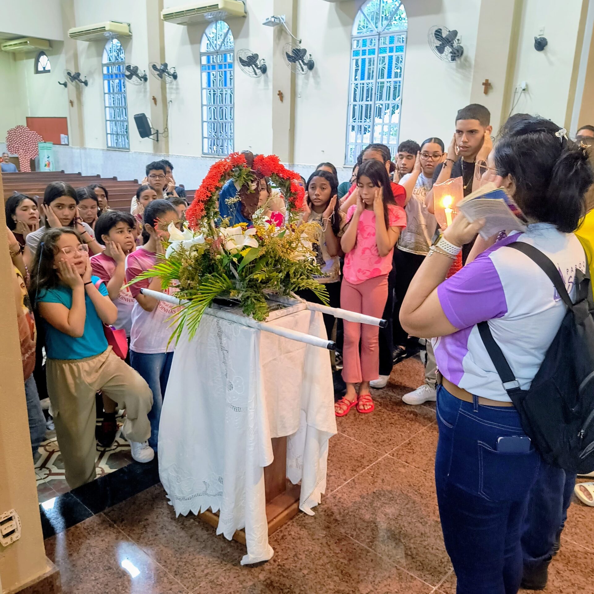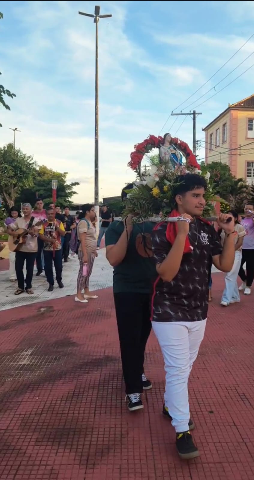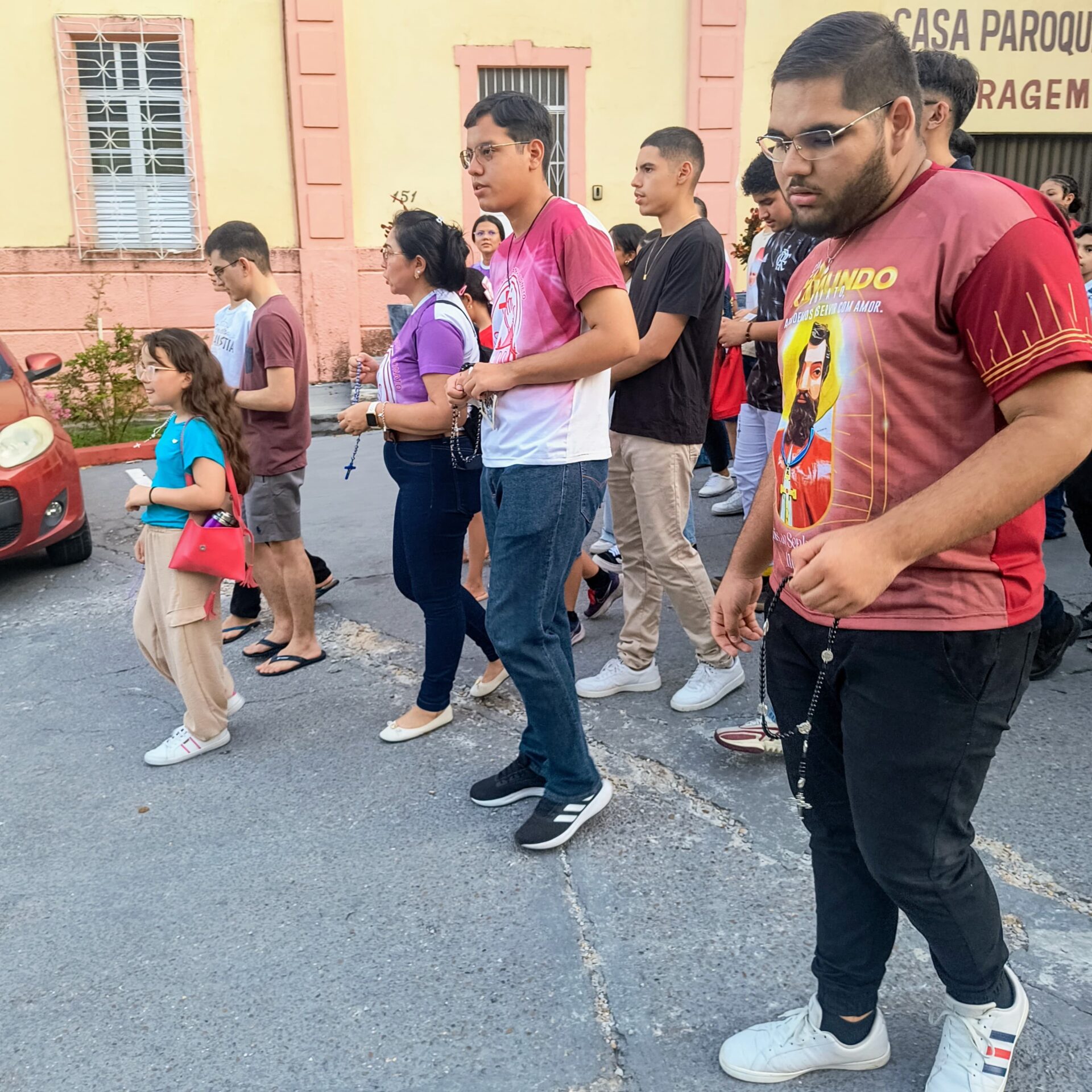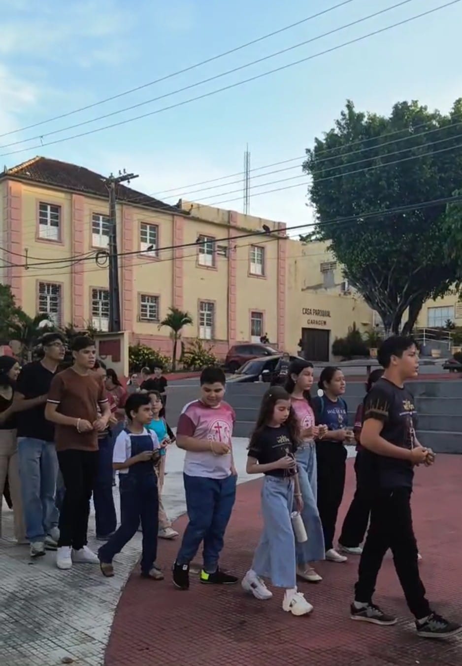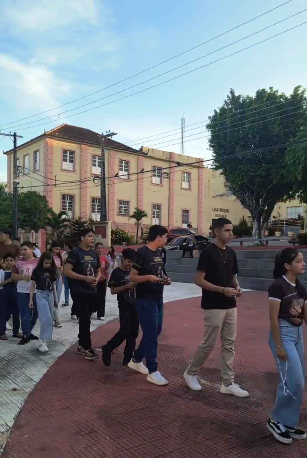 Conforme o Ano Jubilar, com o tema: Com Maria aprendemos ser Peregrinos de Esperança , e sim essa pequena peregrinação na praça, nos fez contemplar o Mistério Glorioso, com muita fé e esperança, pedindo a intercessão de Maria por nossas intenções: pelas intenções do nosso pároco Pe John Paul, pela eleição do Conclave no Vaticano o futuro de nossa igreja, por nossas famílias paroquianas, pela saúde dos enfermos nos hospitais, em suas casas, nas ruas (saúde mental, espiritual e física), pela paz do mundo, pelos abandonados, viciados, desempregados, por todos os presentes e os que não puderem está conosco.