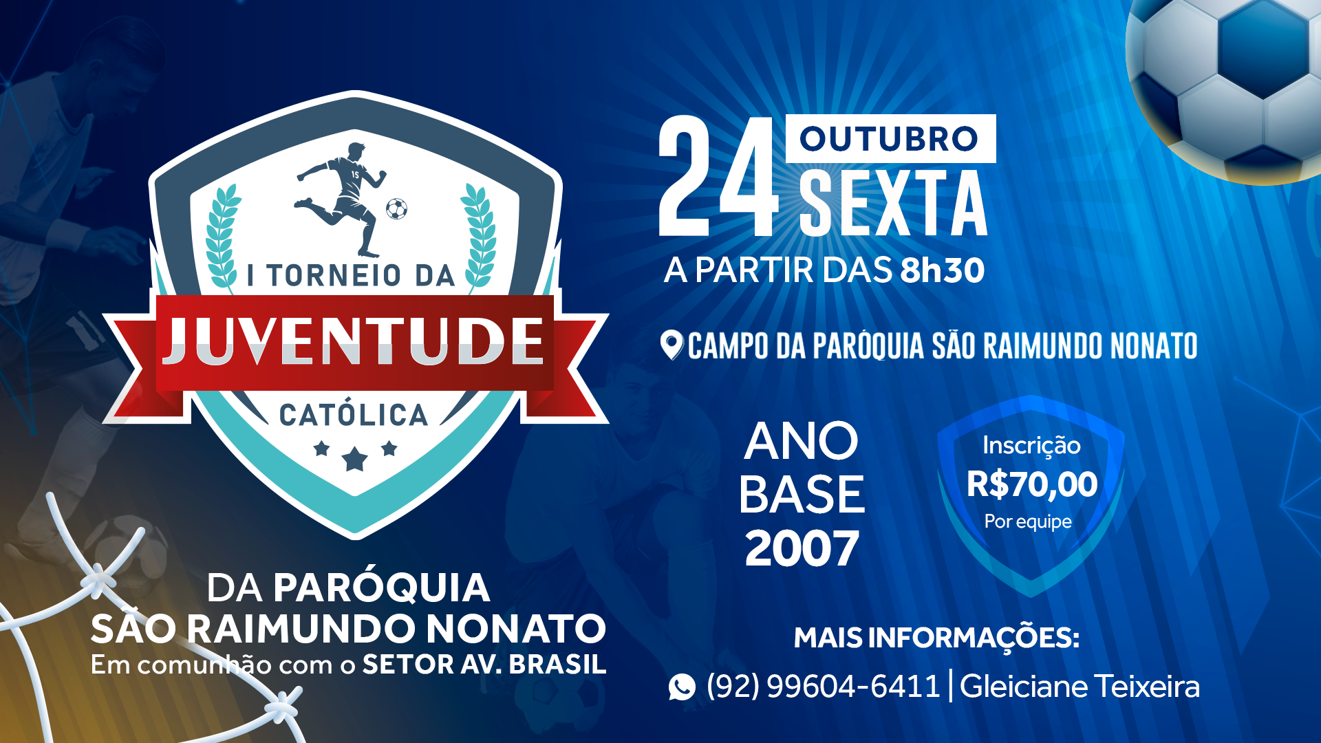 A Paróquia São Raimundo Nonato tem a alegria de anunciar o primeiro Torneio da Juventude católica, reunindo todas as paróquias do Setor Avenida Brasil e demais paróquias que desejarem participar conosco.