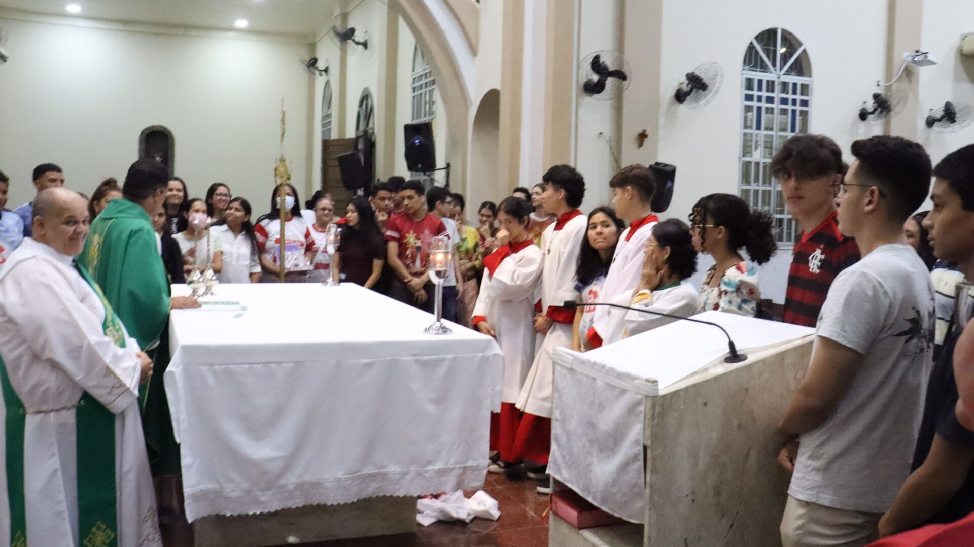 Neste domingo, 27/06, às 19 horas, na Missa da Comunidade São Raimundo Nonato, louvamos e bendizemos à Deus a alegria do serviço pastoral dos Catequistas da Paróquia São Raimundo Nonato, que abraçaram a sua vocação de evangelizar crianças, jovens e adultos. Além disso, damos graças a Deus pela disposição de tantos agentes que atuam nas mais diversas atividades pastorais da Paróquia. Para alegrar mais ainda nossos corações, acolhemos vários crismandos, jovens e adultos, que deram o seu SIM para fazerem a experiência no serviço pastoral em algumas pastorais da nossa paróquia. Ao final, todos rezaram a Oração do Agente de pastoral e receberam uma benção especial.