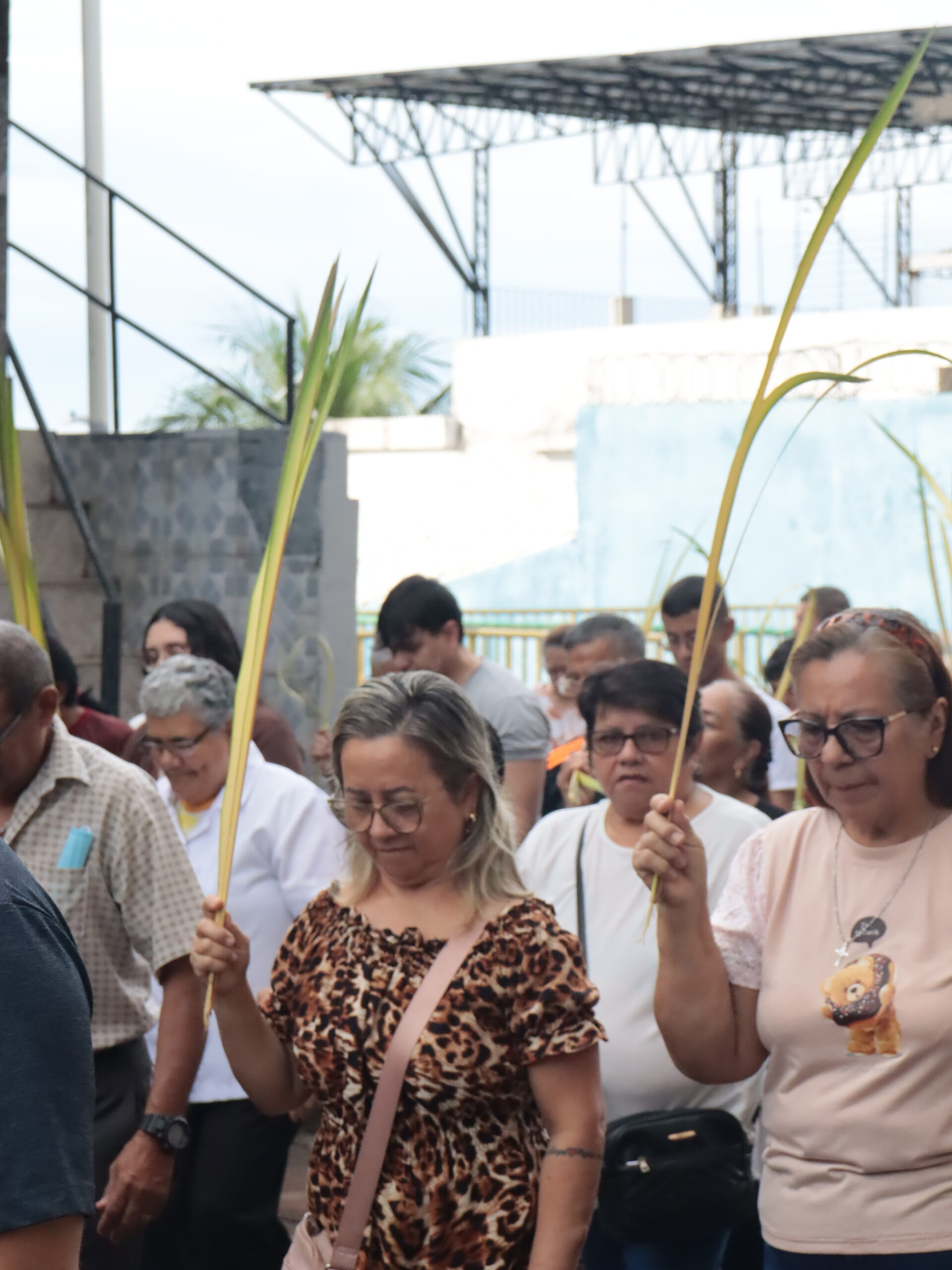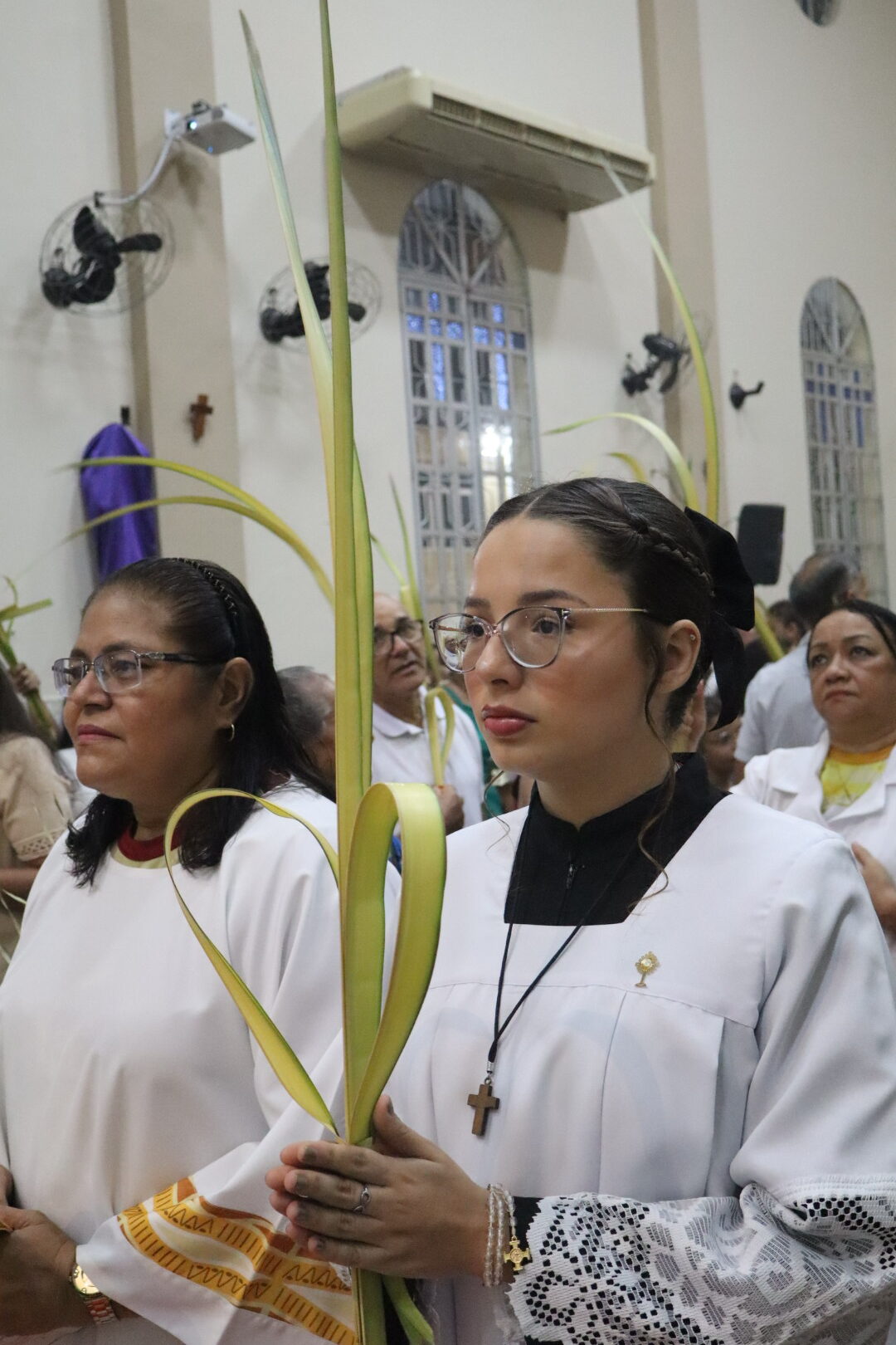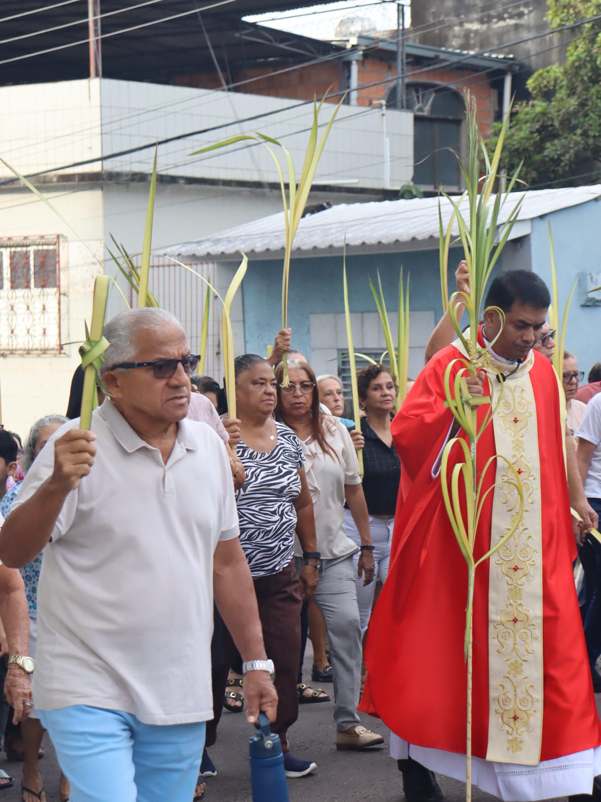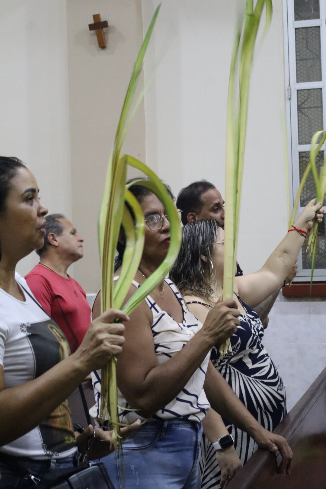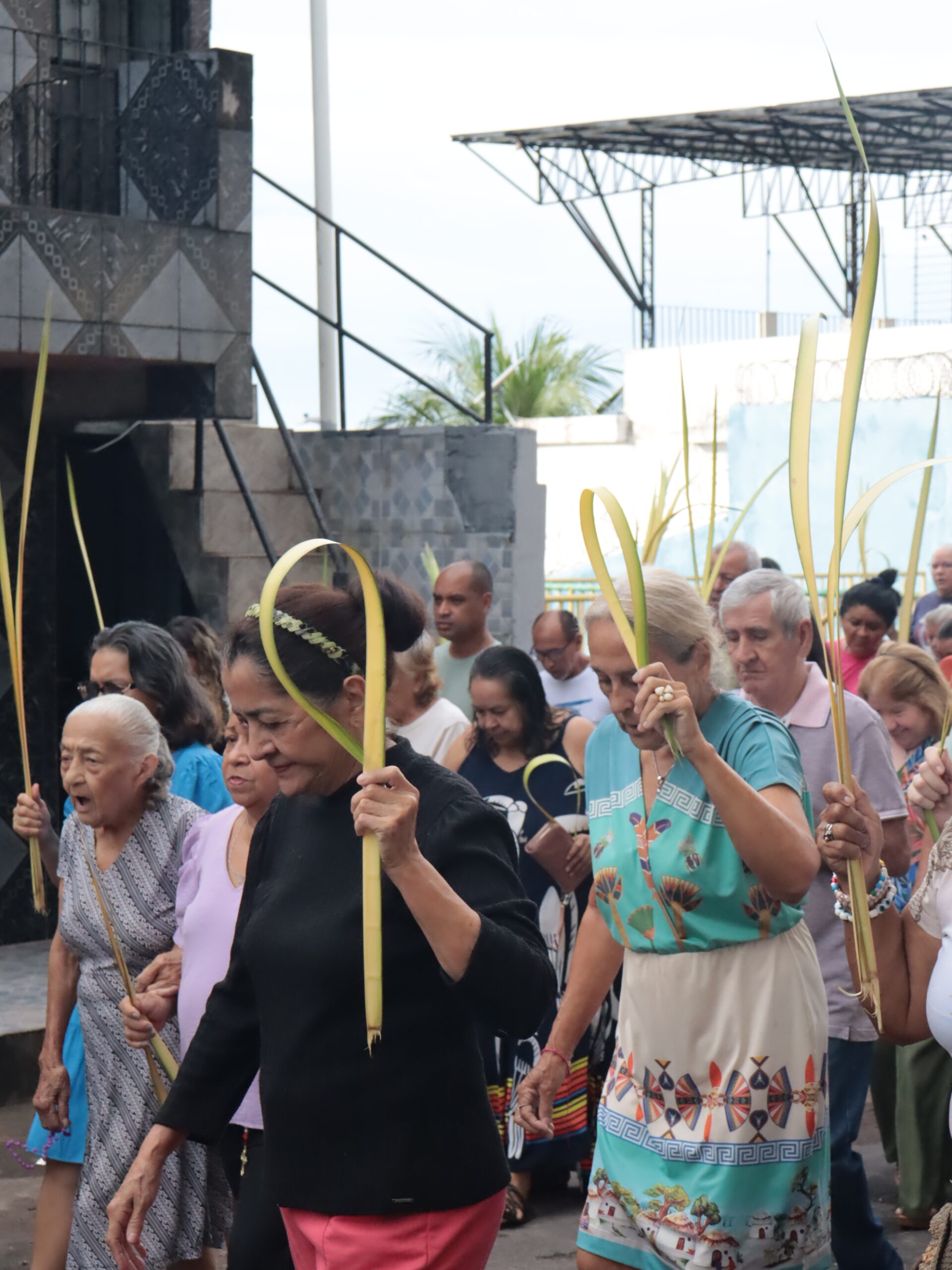 A celebração teve início fora das igrejas, com a bênção dos ramos, recordando a entrada triunfal de Jesus em Jerusalém. Em seguida, os fiéis seguiram em procissão até as igrejas, erguendo seus ramos, cantando e aclamando Jesus como Rei, em um momento marcado pela participação e devoção da comunidade.