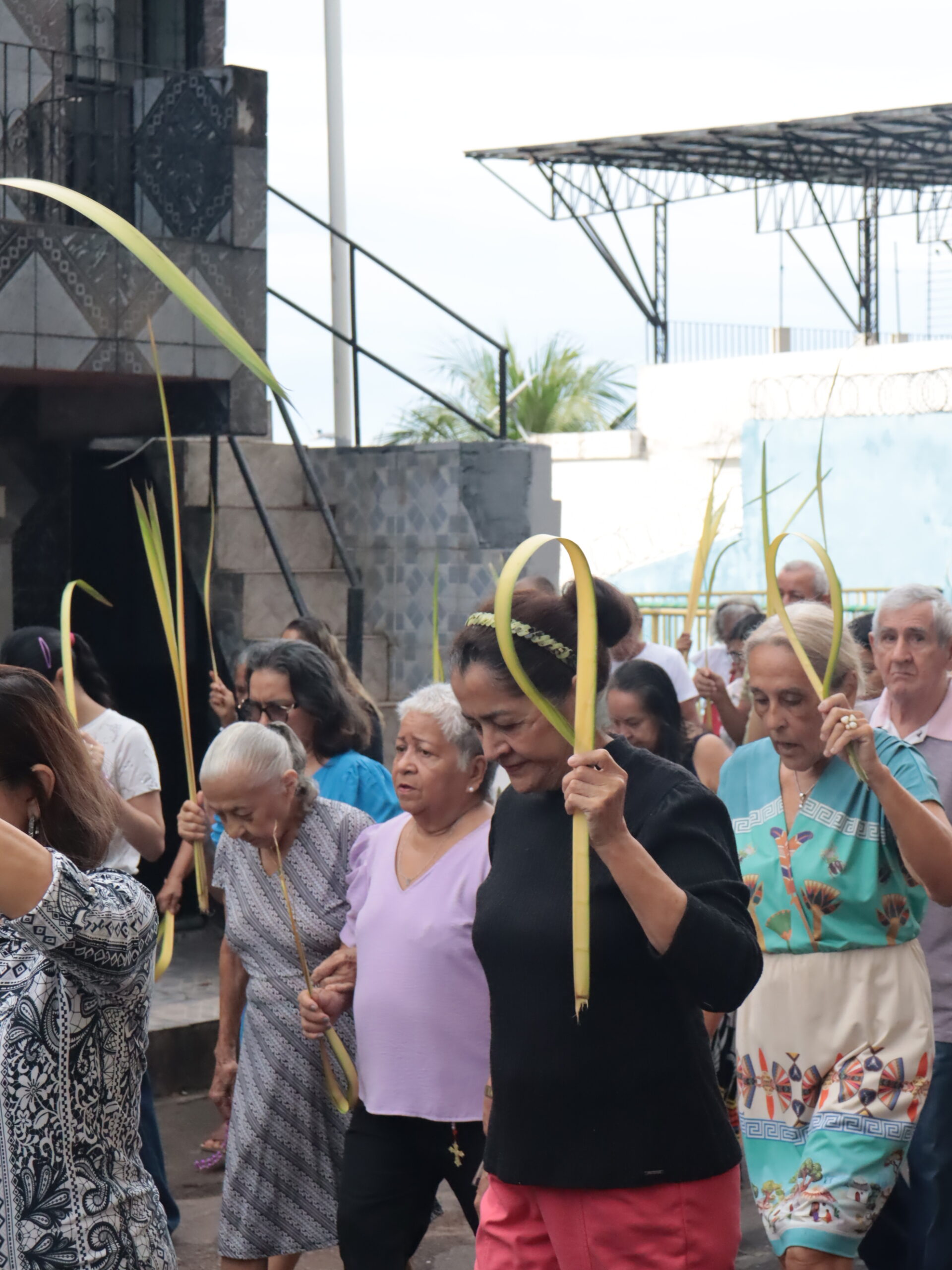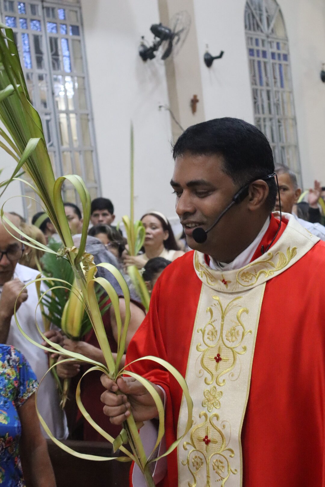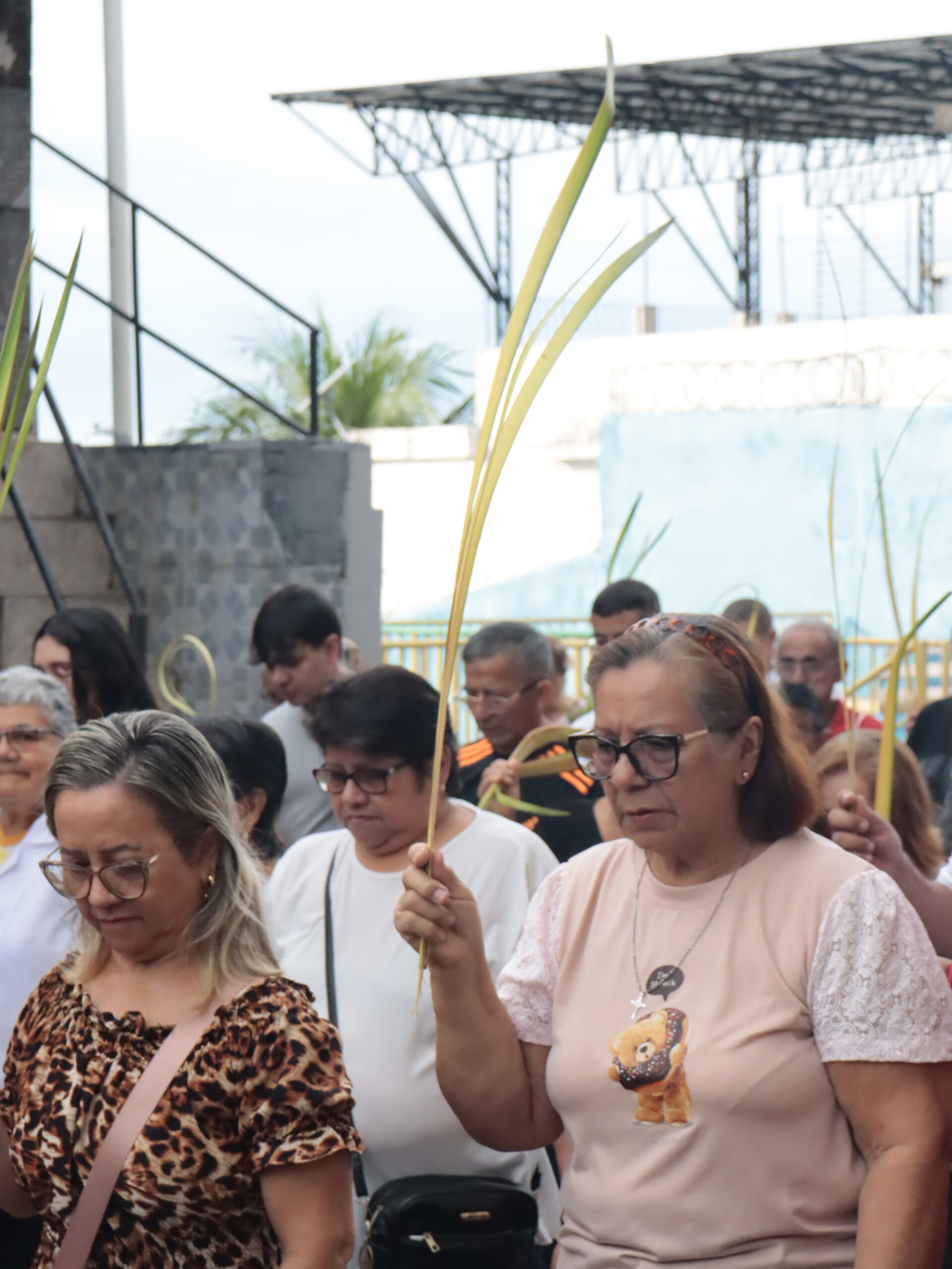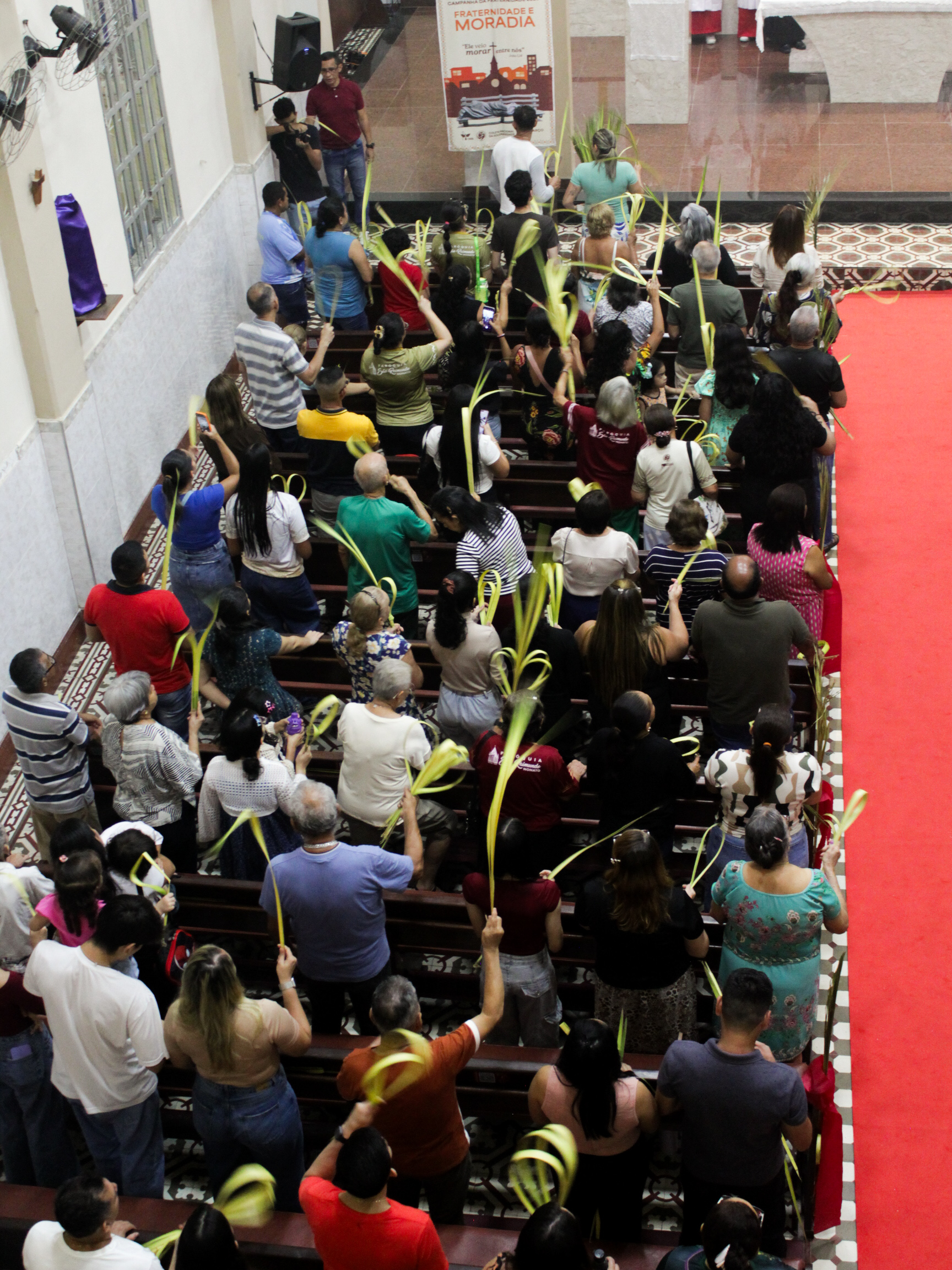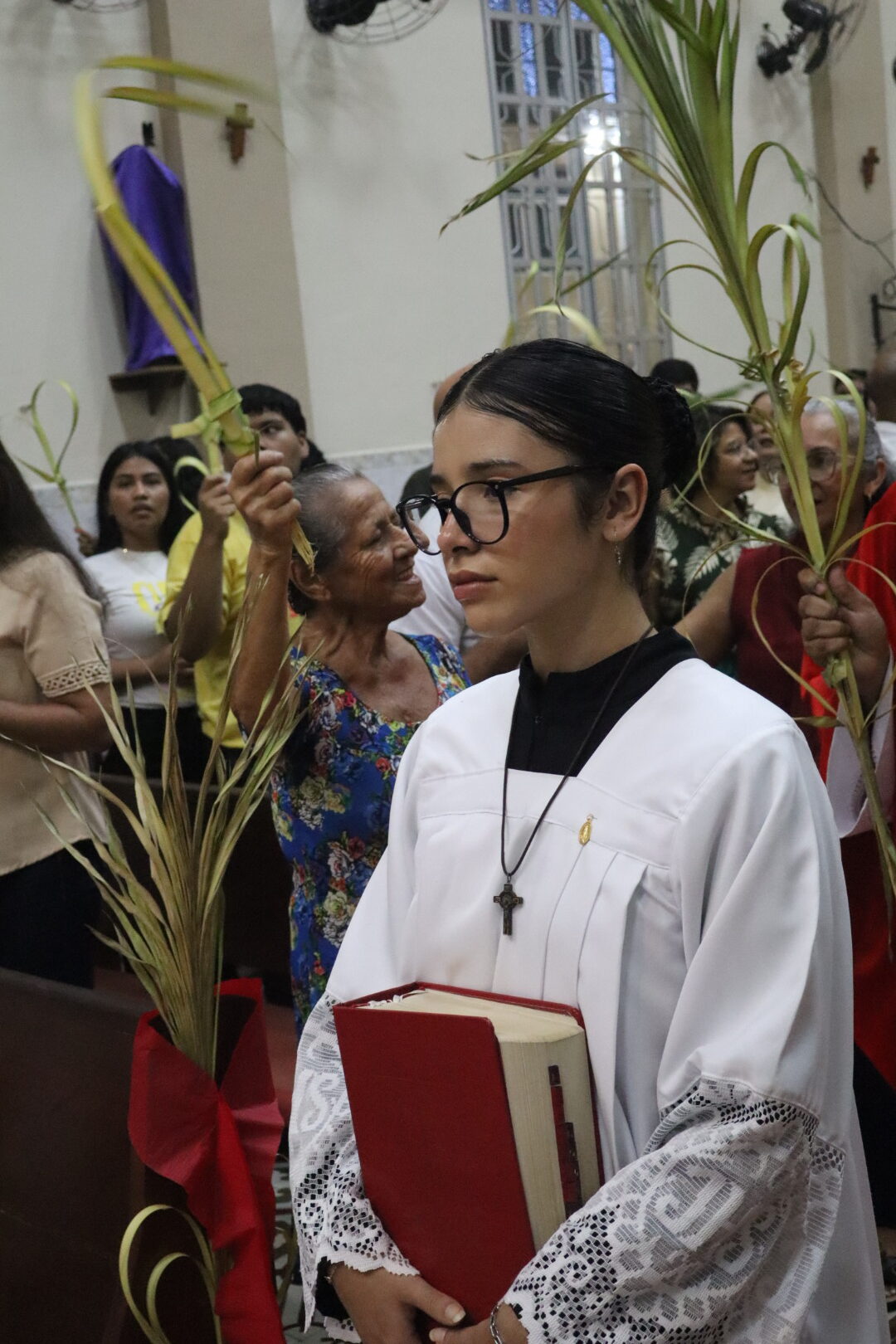 A celebração teve início fora das igrejas, com a bênção dos ramos, recordando a entrada triunfal de Jesus em Jerusalém. Em seguida, os fiéis seguiram em procissão até as igrejas, erguendo seus ramos, cantando e aclamando Jesus como Rei, em um momento marcado pela participação e devoção da comunidade.