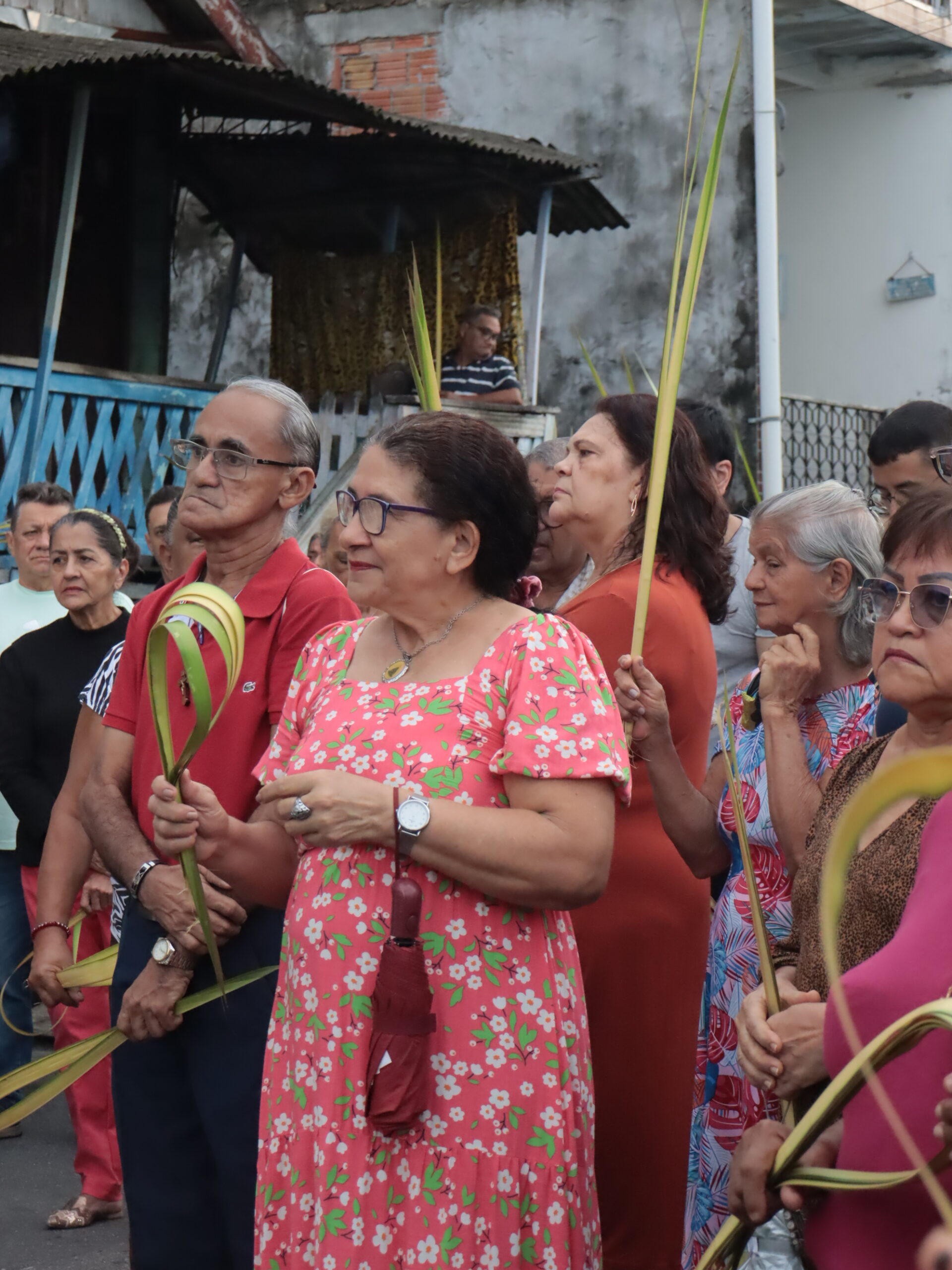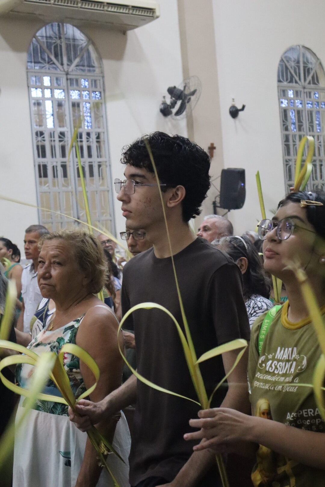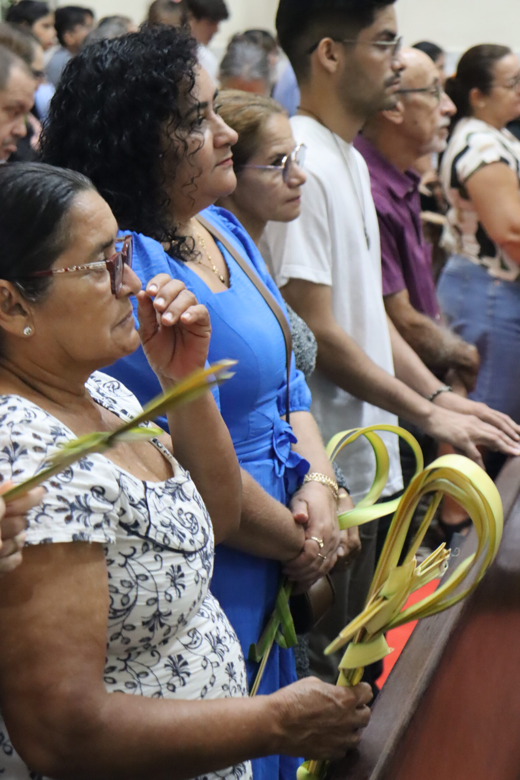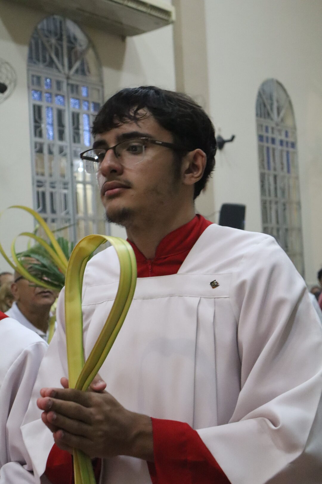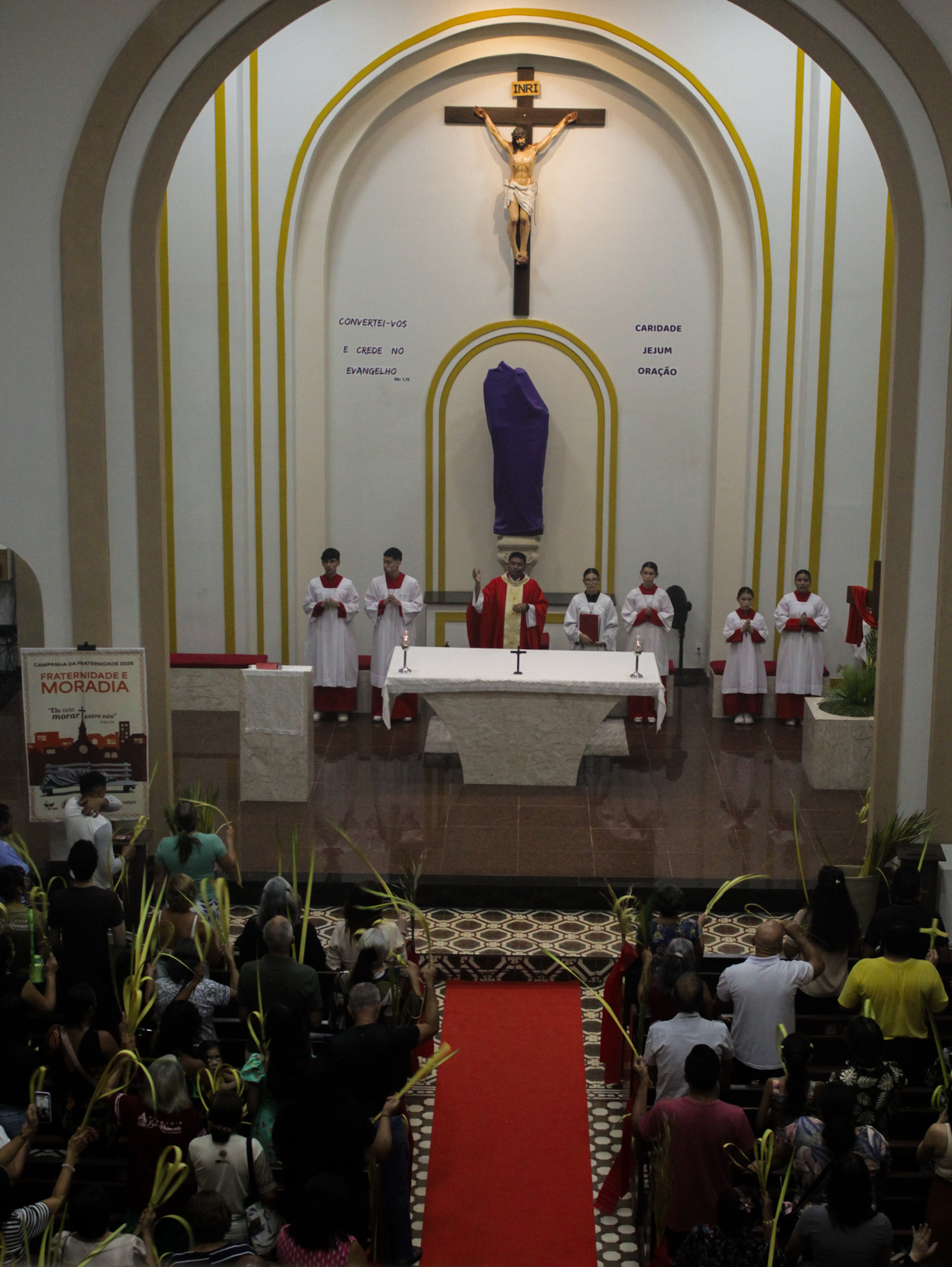 A celebração teve início fora das igrejas, com a bênção dos ramos, recordando a entrada triunfal de Jesus em Jerusalém. Em seguida, os fiéis seguiram em procissão até as igrejas, erguendo seus ramos, cantando e aclamando Jesus como Rei, em um momento marcado pela participação e devoção da comunidade.