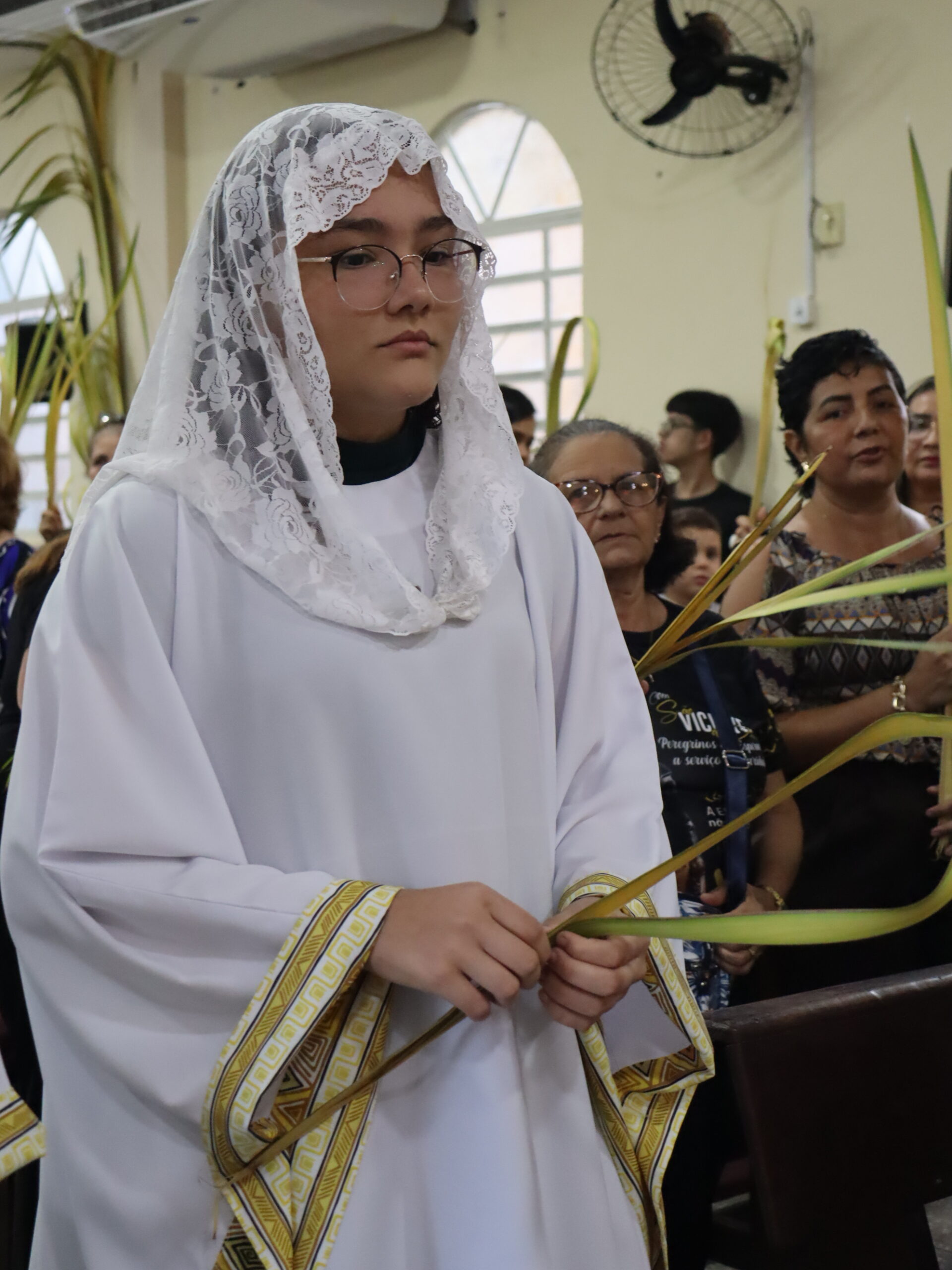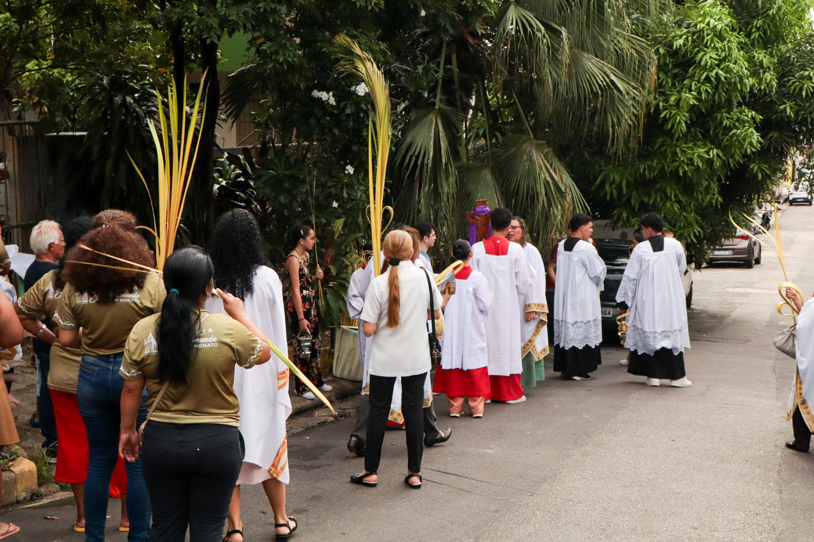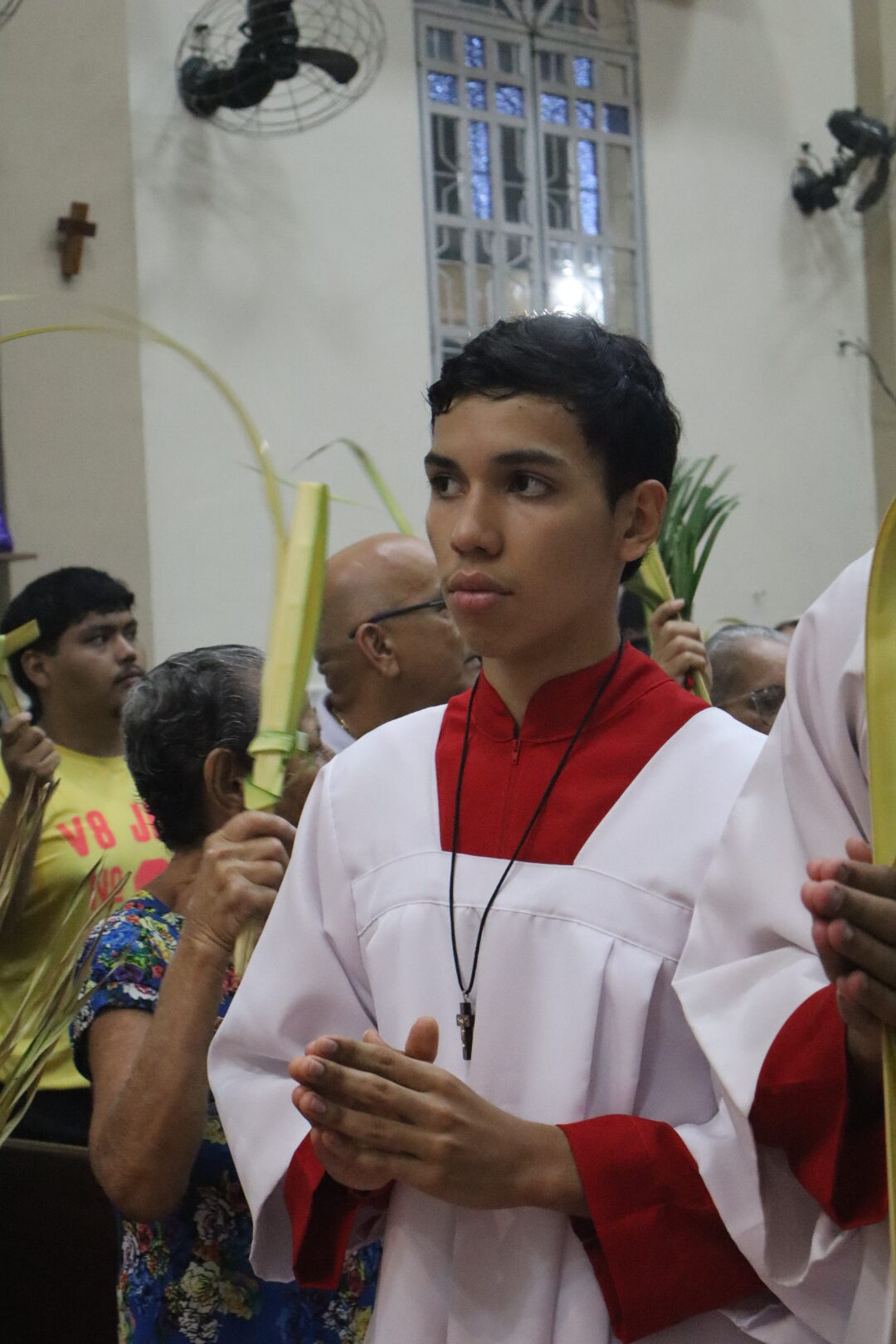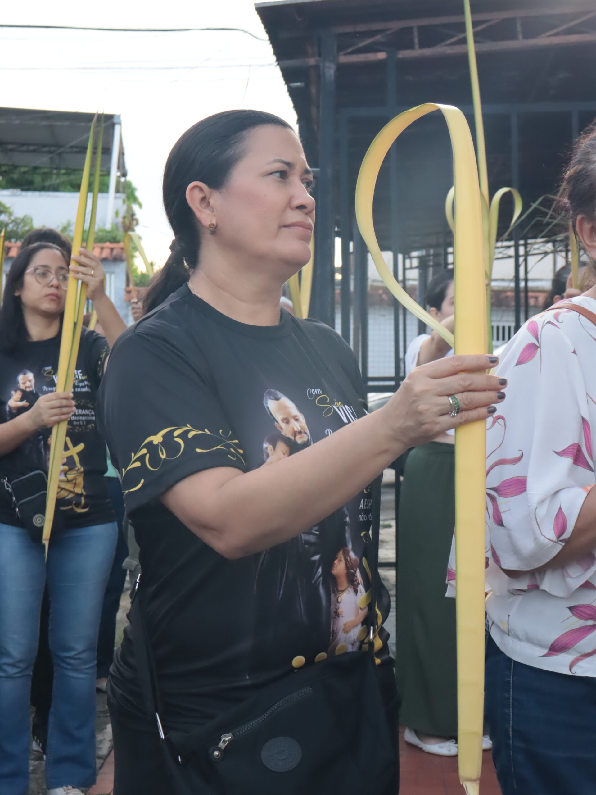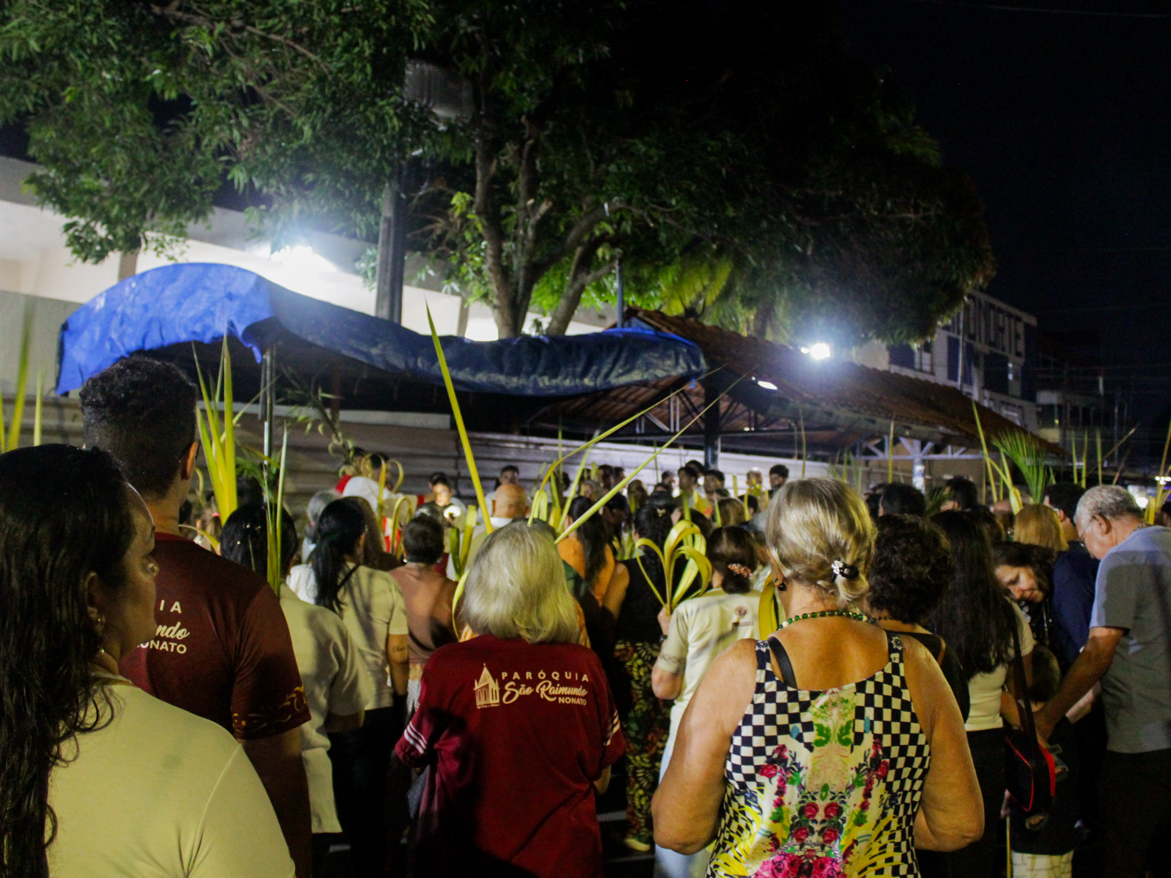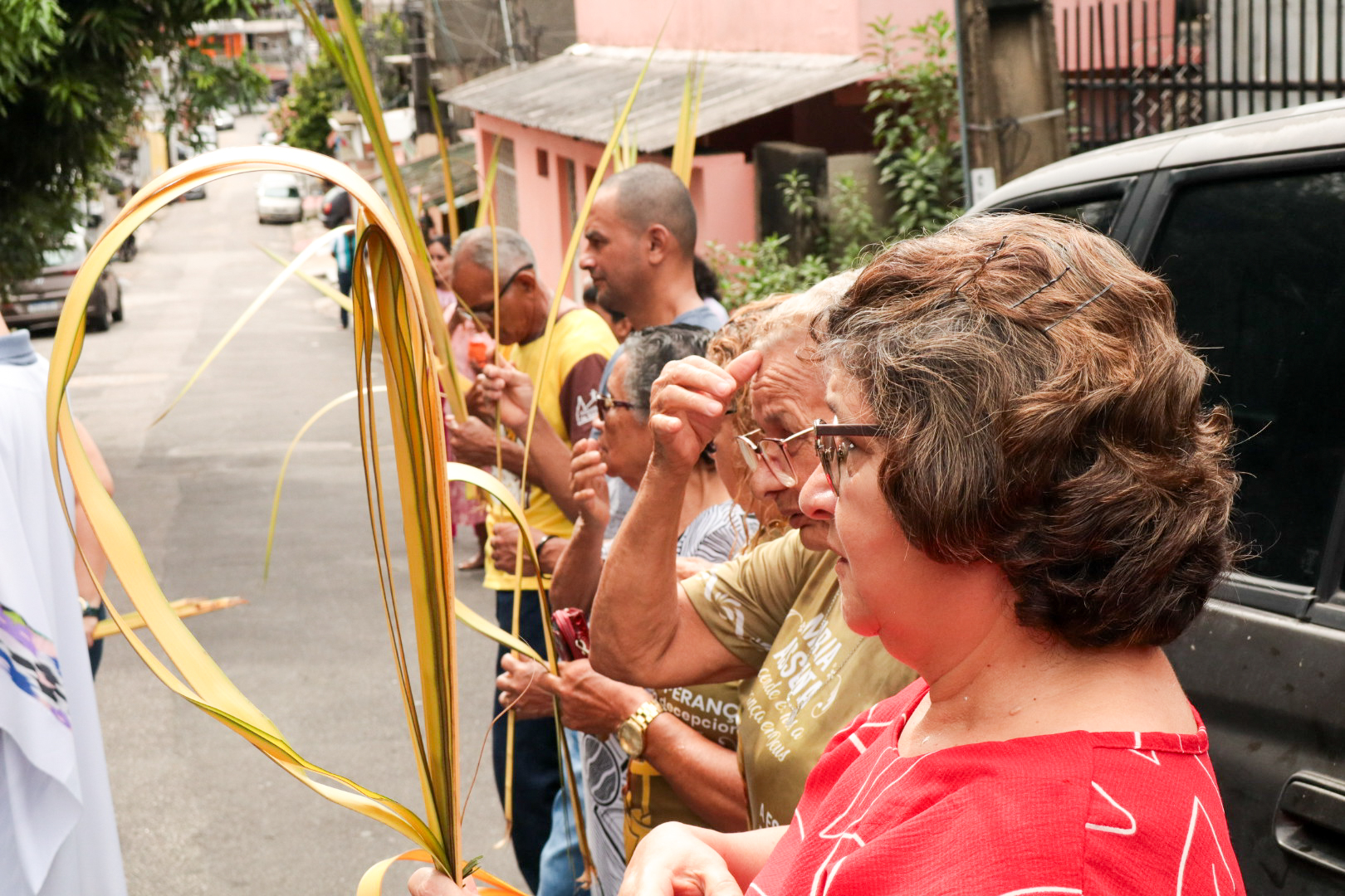 A celebração teve início fora das igrejas, com a bênção dos ramos, recordando a entrada triunfal de Jesus em Jerusalém. Em seguida, os fiéis seguiram em procissão até as igrejas, erguendo seus ramos, cantando e aclamando Jesus como Rei, em um momento marcado pela participação e devoção da comunidade.