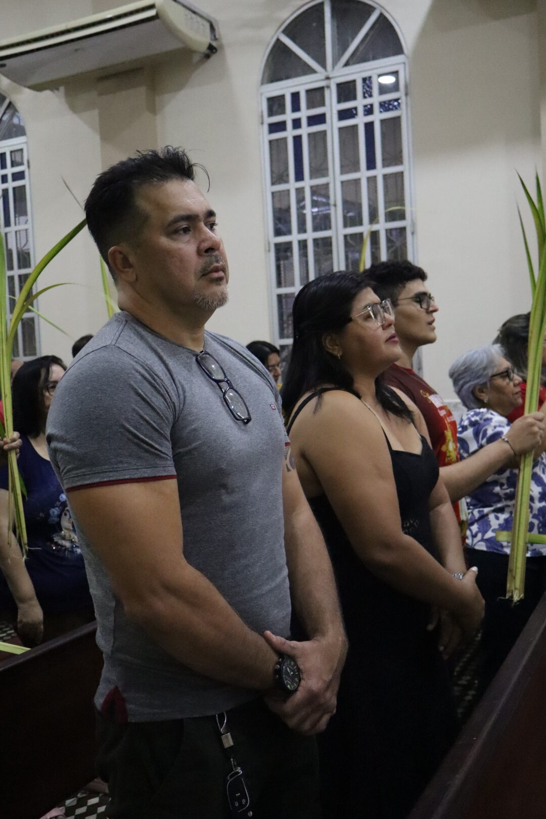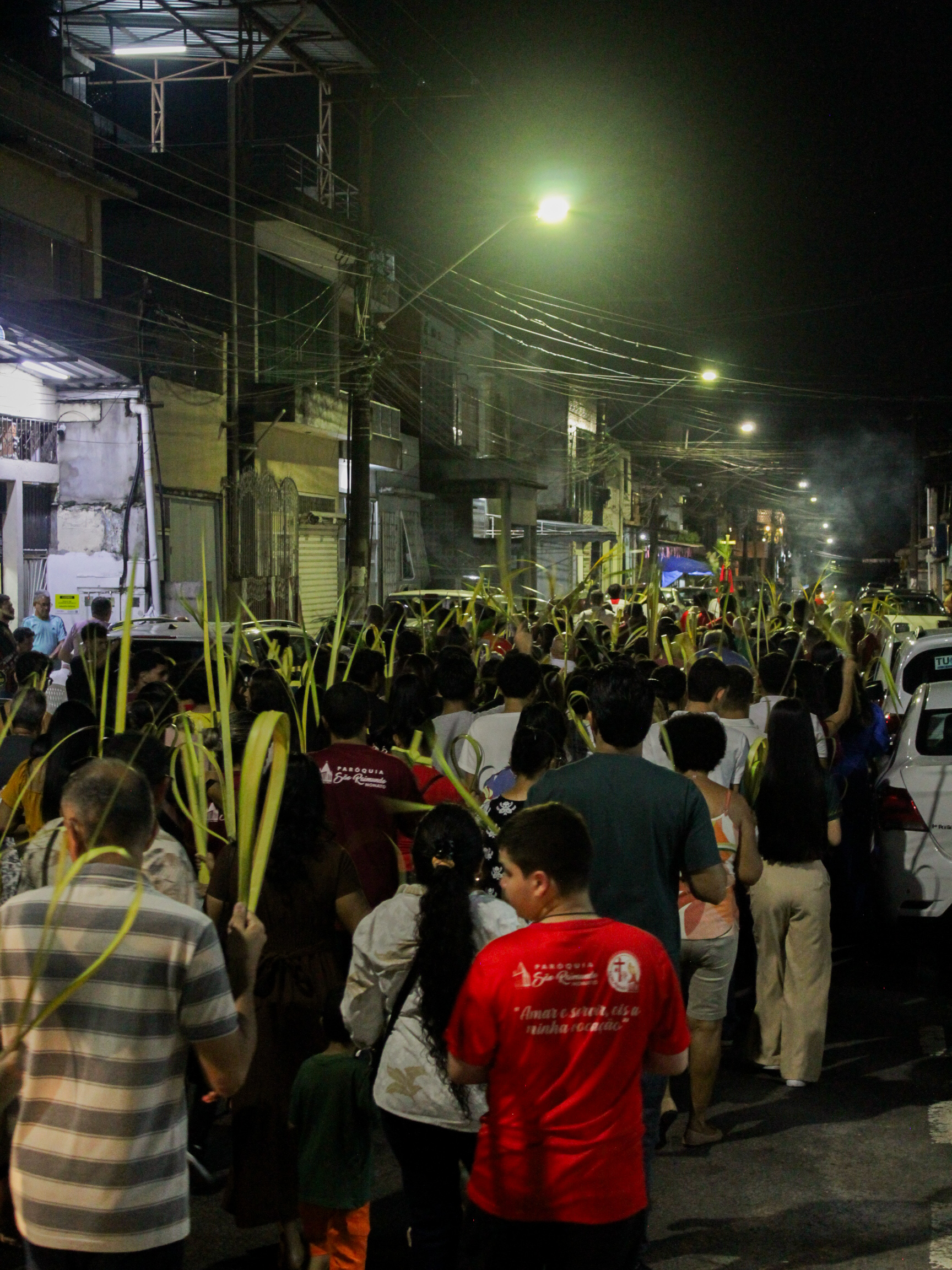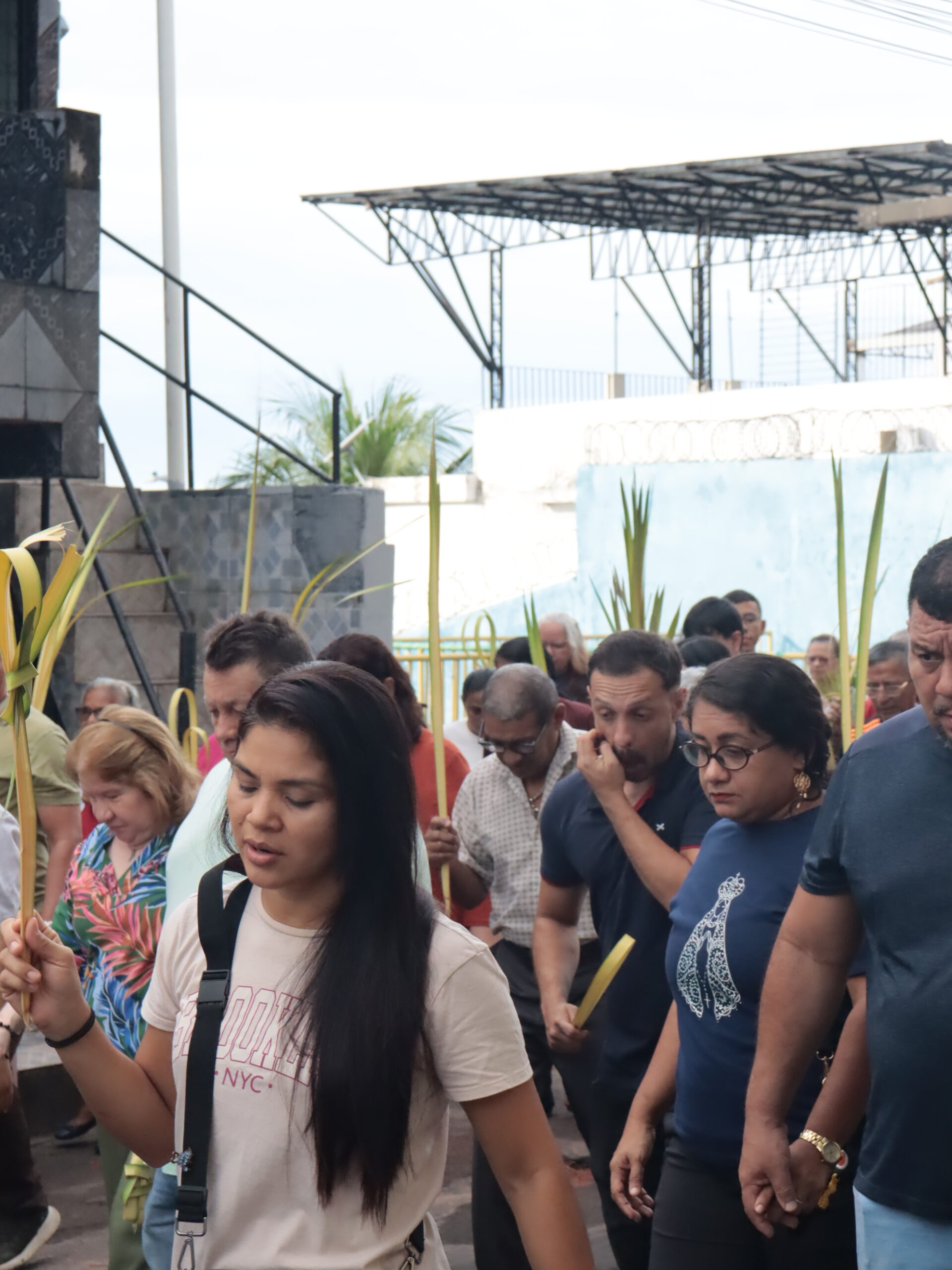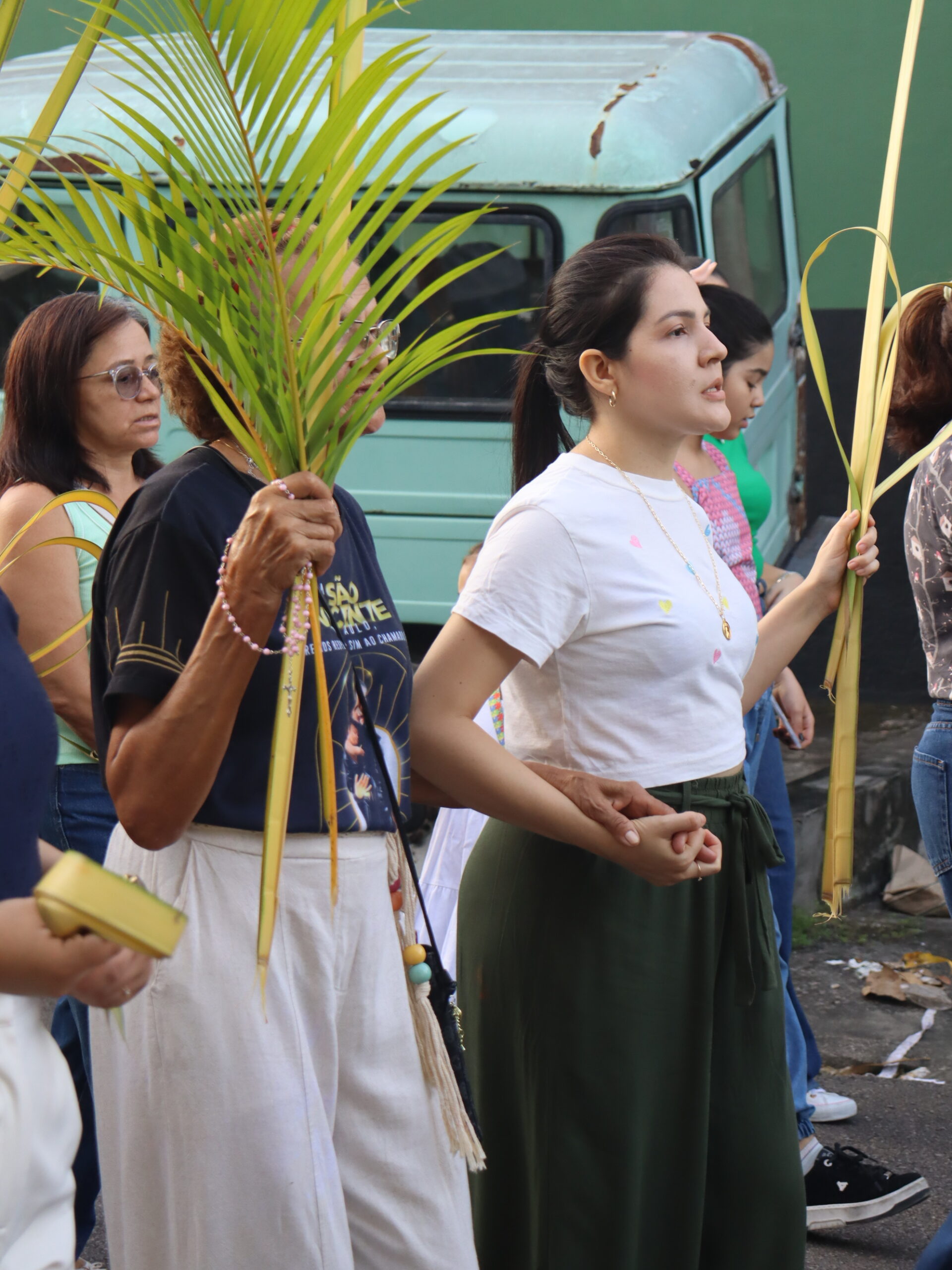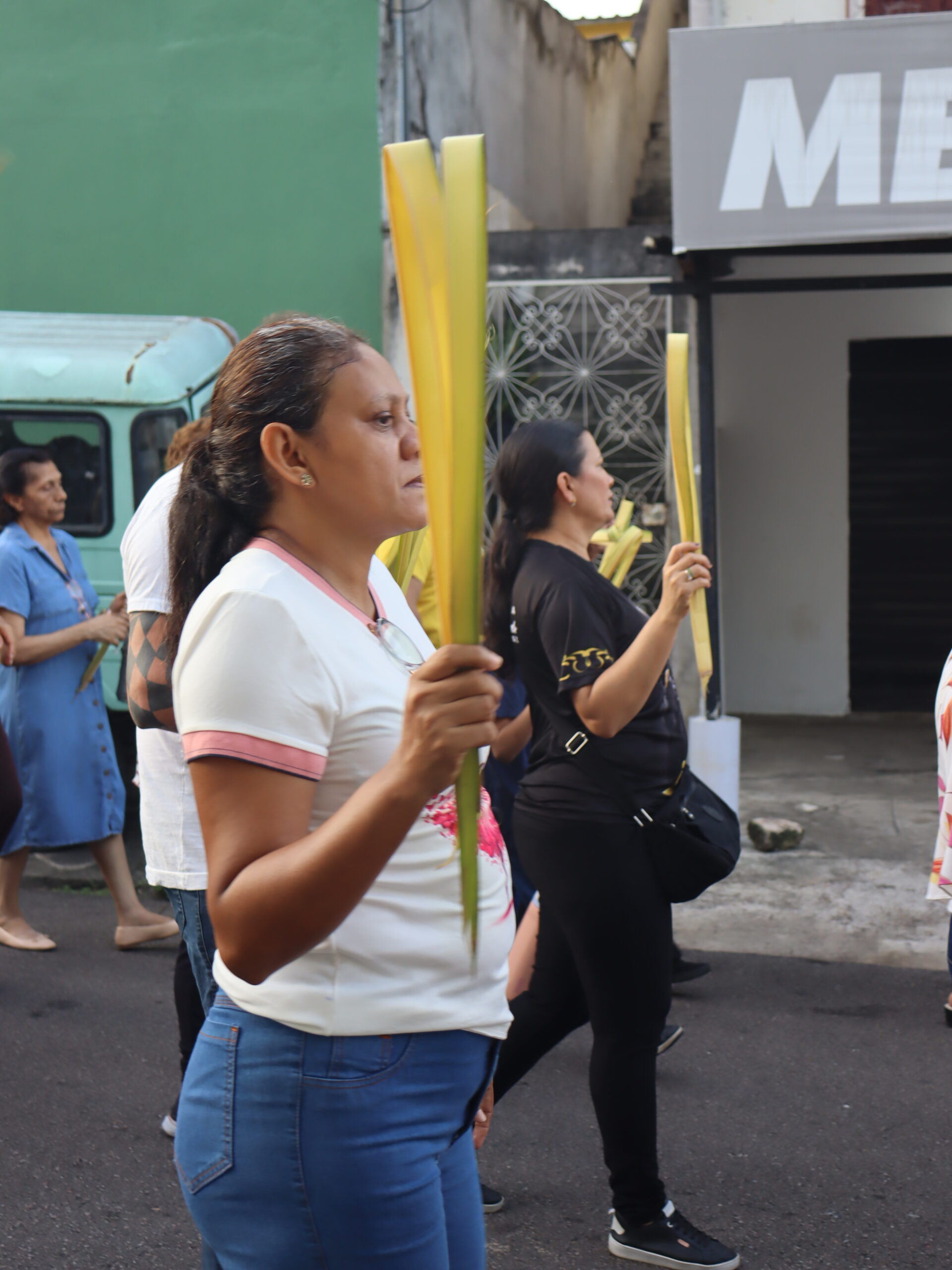 A celebração teve início fora das igrejas, com a bênção dos ramos, recordando a entrada triunfal de Jesus em Jerusalém. Em seguida, os fiéis seguiram em procissão até as igrejas, erguendo seus ramos, cantando e aclamando Jesus como Rei, em um momento marcado pela participação e devoção da comunidade.