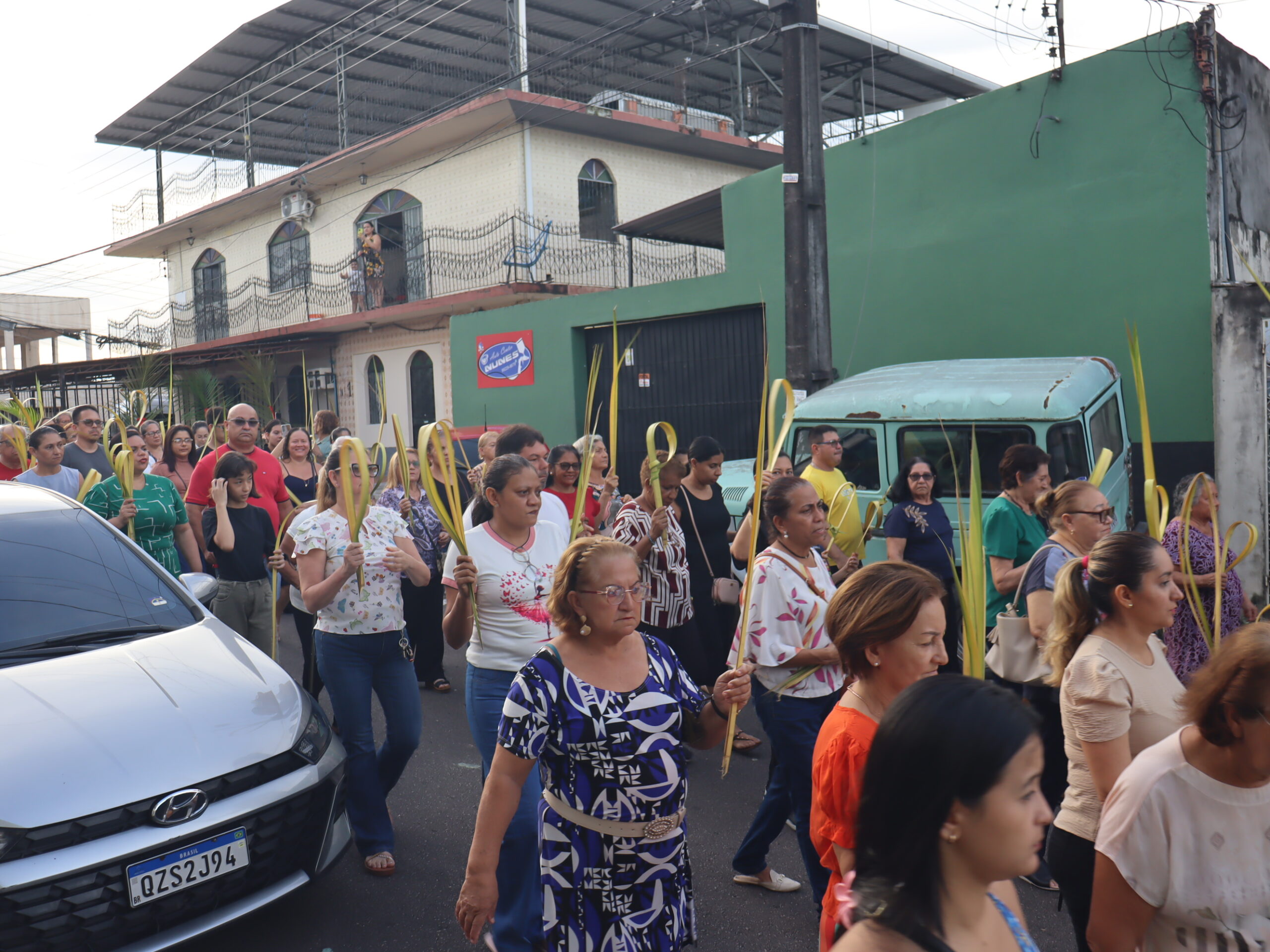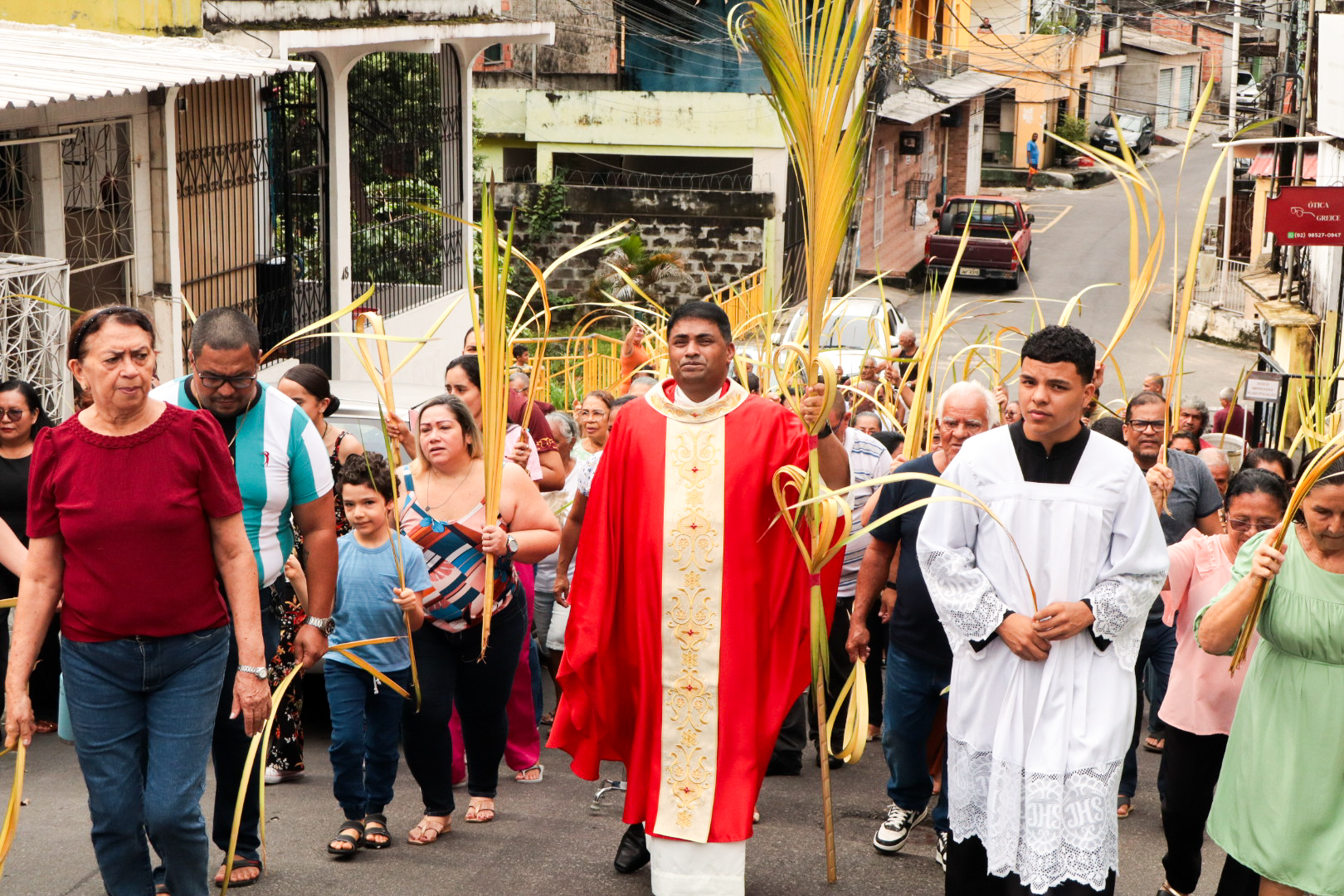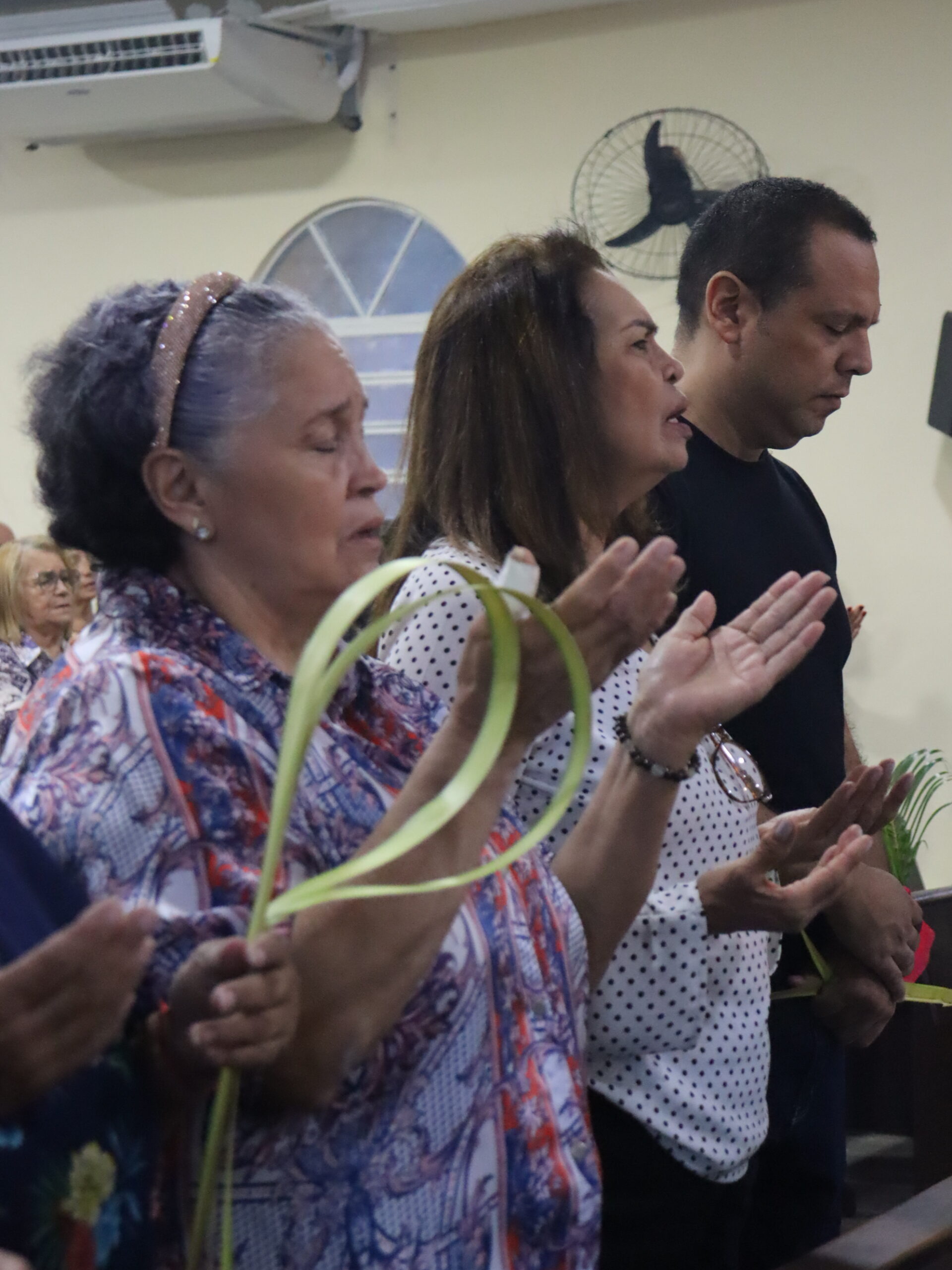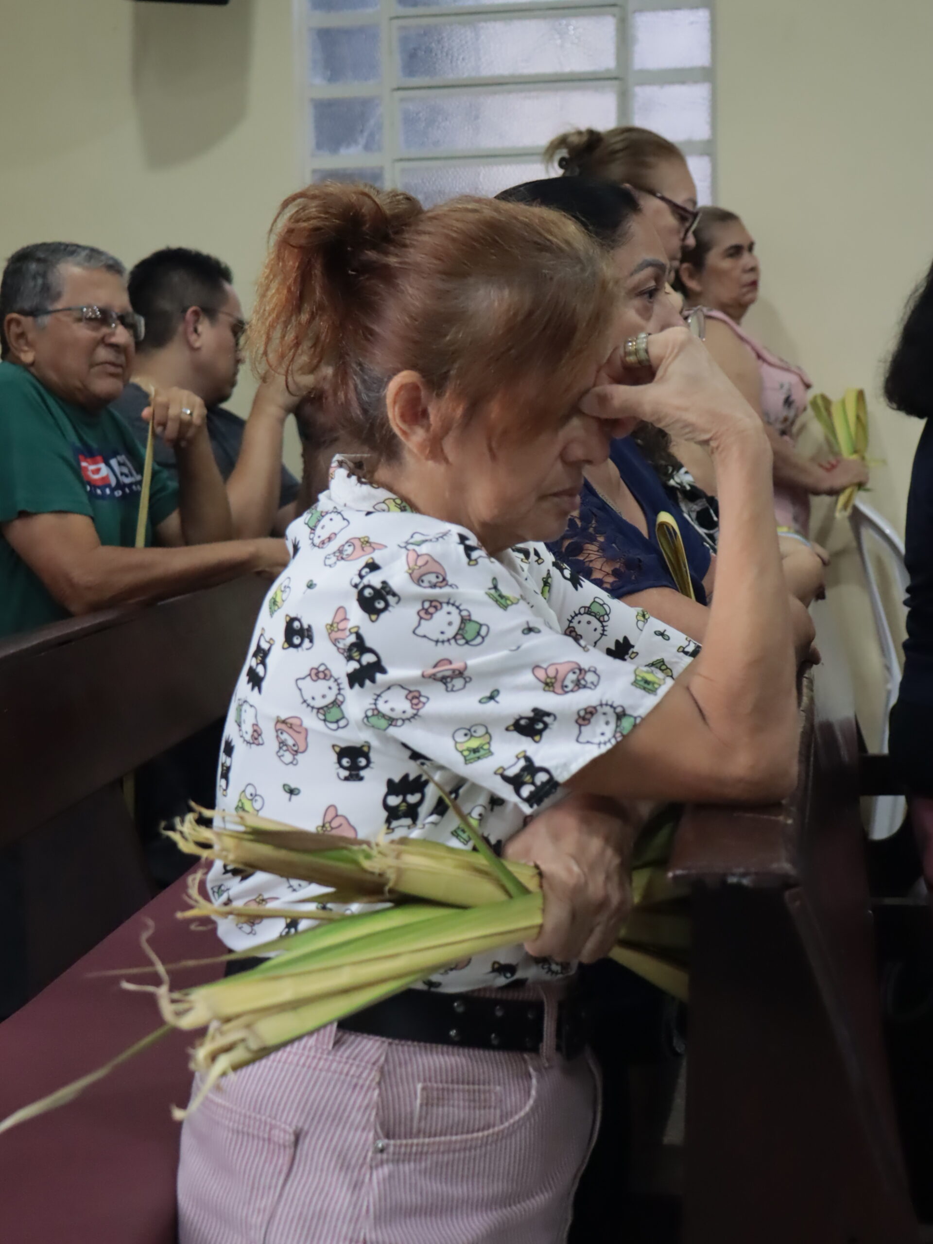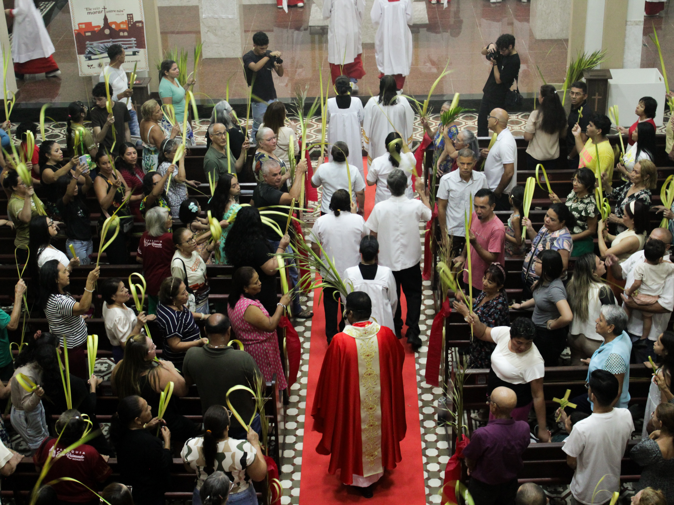 A celebração teve início fora das igrejas, com a bênção dos ramos, recordando a entrada triunfal de Jesus em Jerusalém. Em seguida, os fiéis seguiram em procissão até as igrejas, erguendo seus ramos, cantando e aclamando Jesus como Rei, em um momento marcado pela participação e devoção da comunidade.