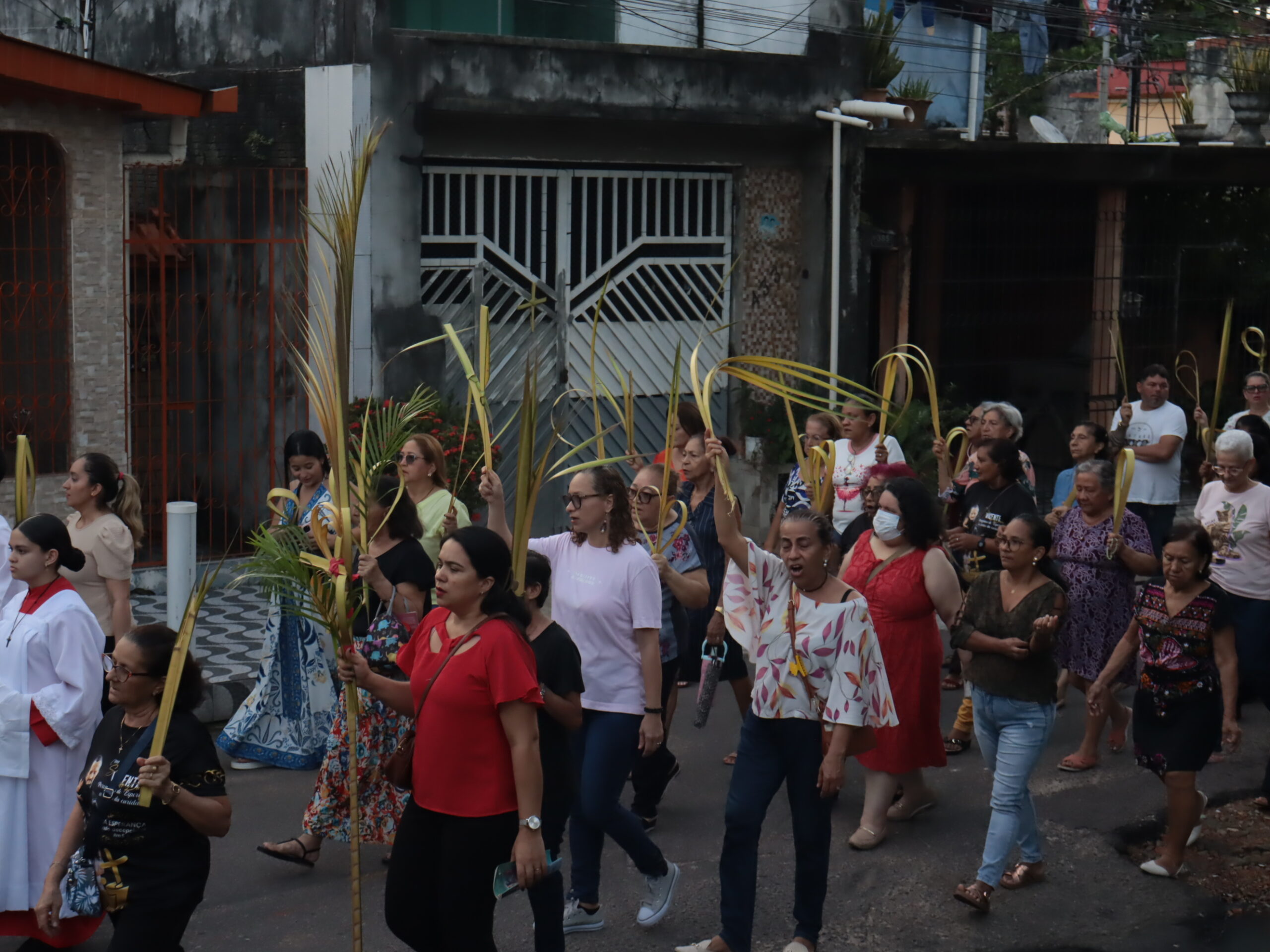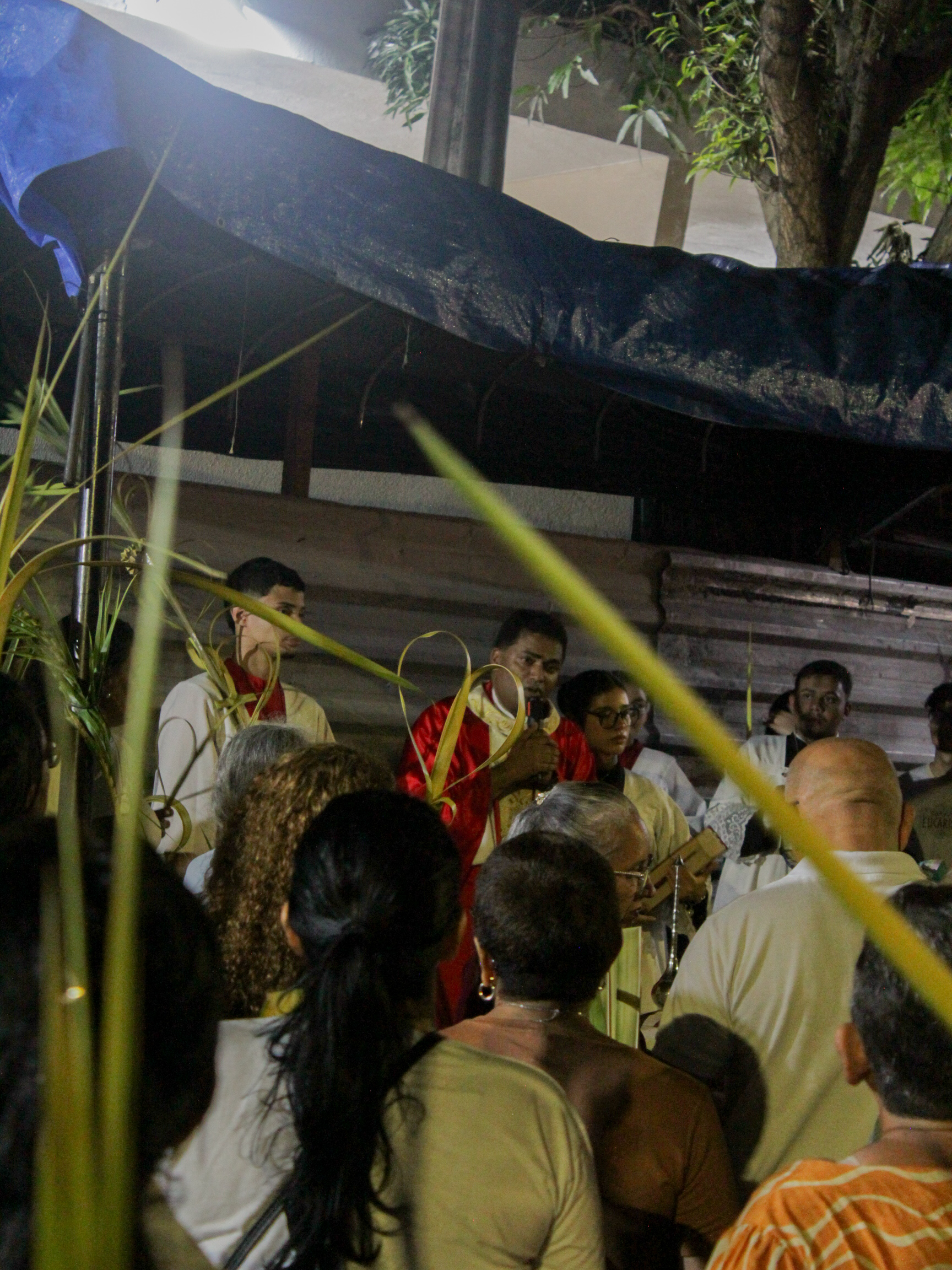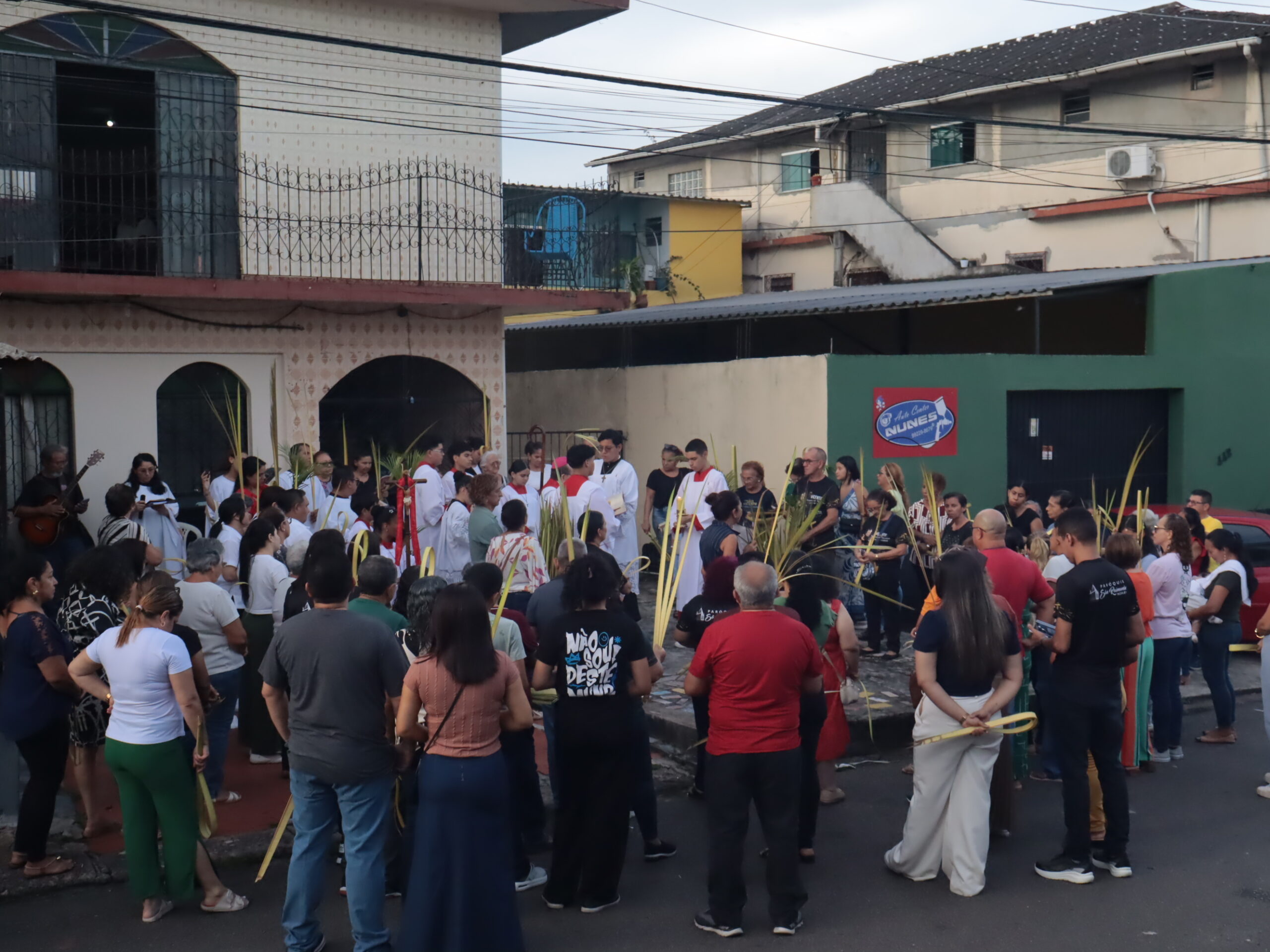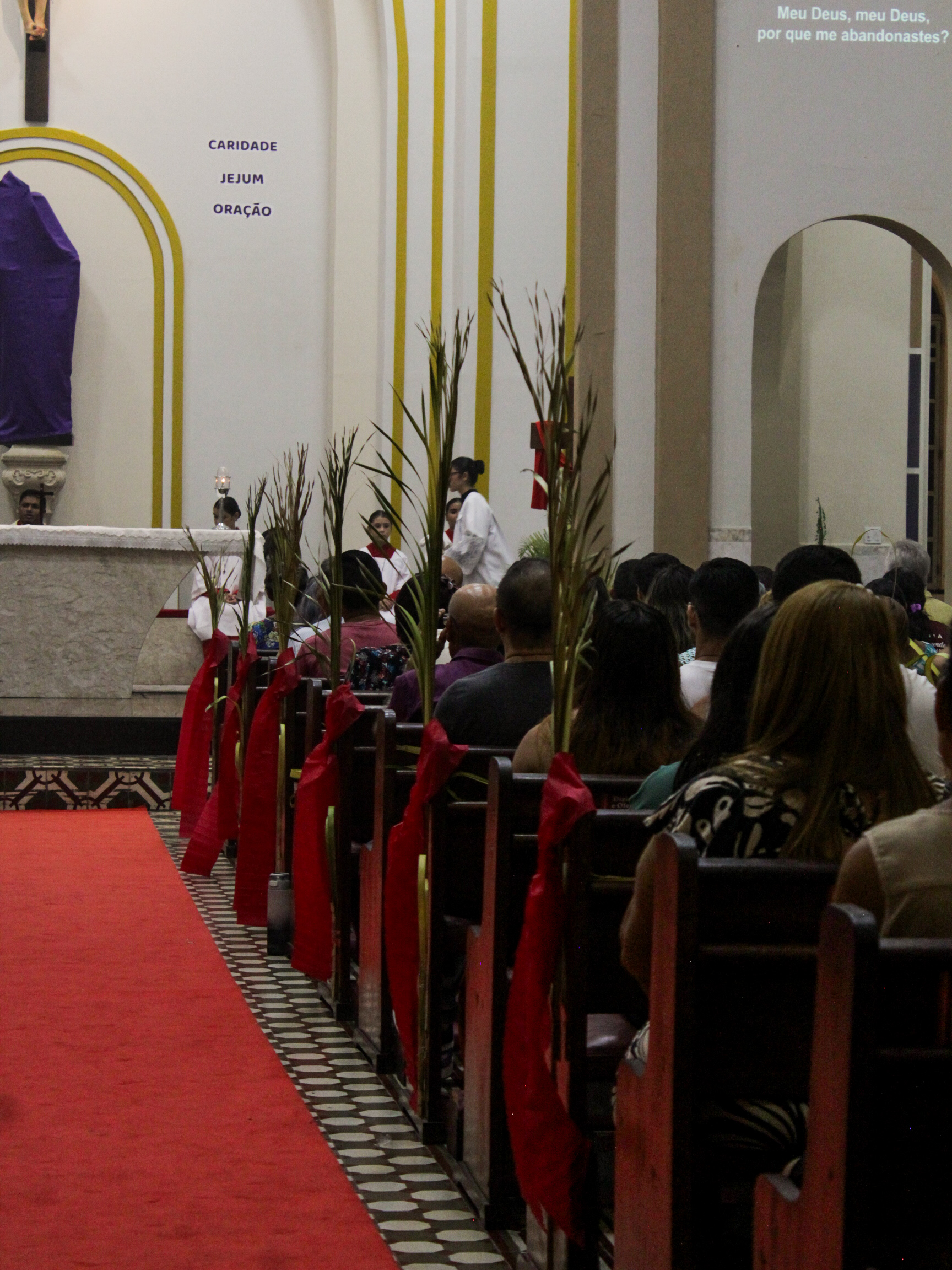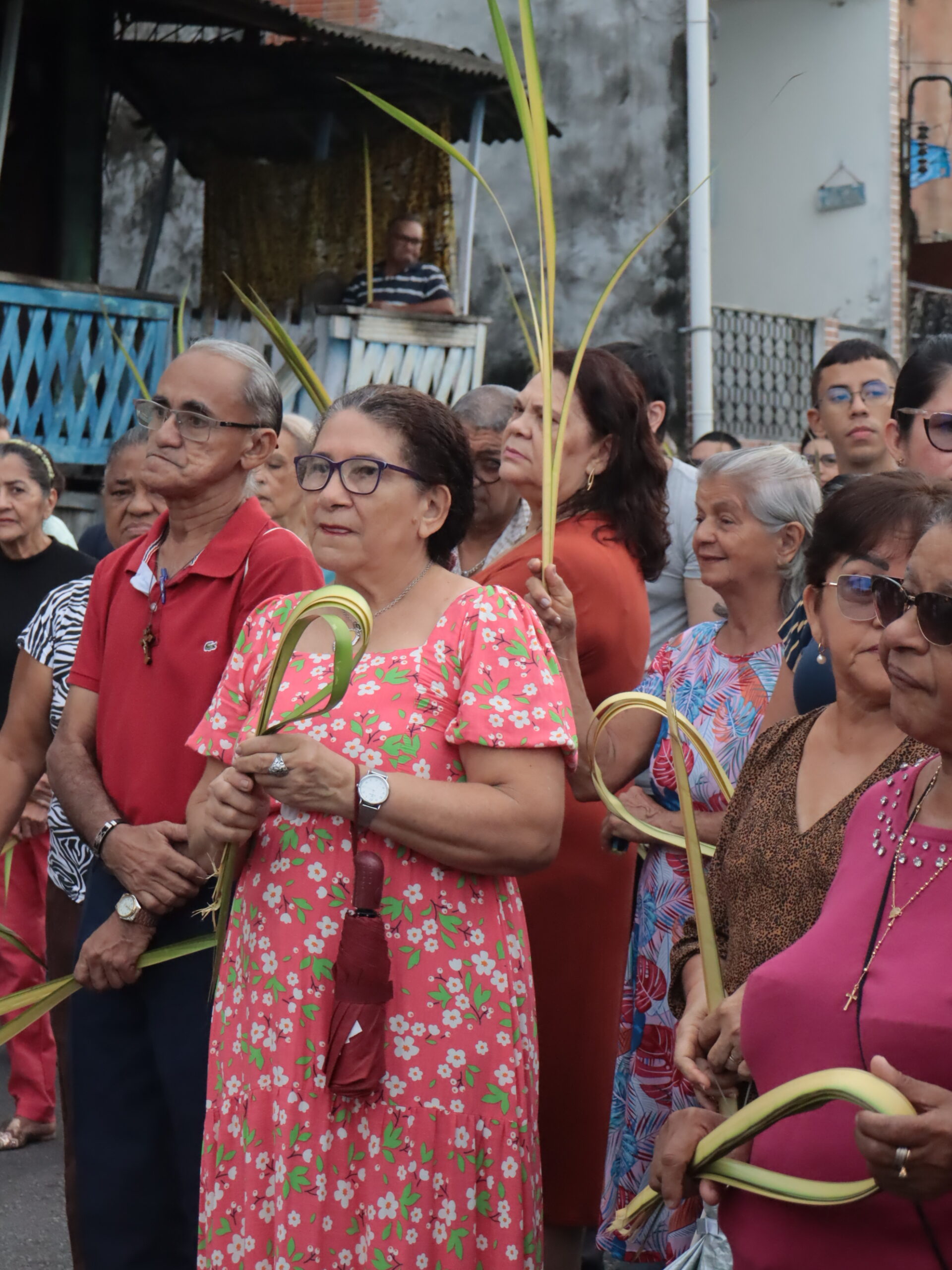 A celebração teve início fora das igrejas, com a bênção dos ramos, recordando a entrada triunfal de Jesus em Jerusalém. Em seguida, os fiéis seguiram em procissão até as igrejas, erguendo seus ramos, cantando e aclamando Jesus como Rei, em um momento marcado pela participação e devoção da comunidade.