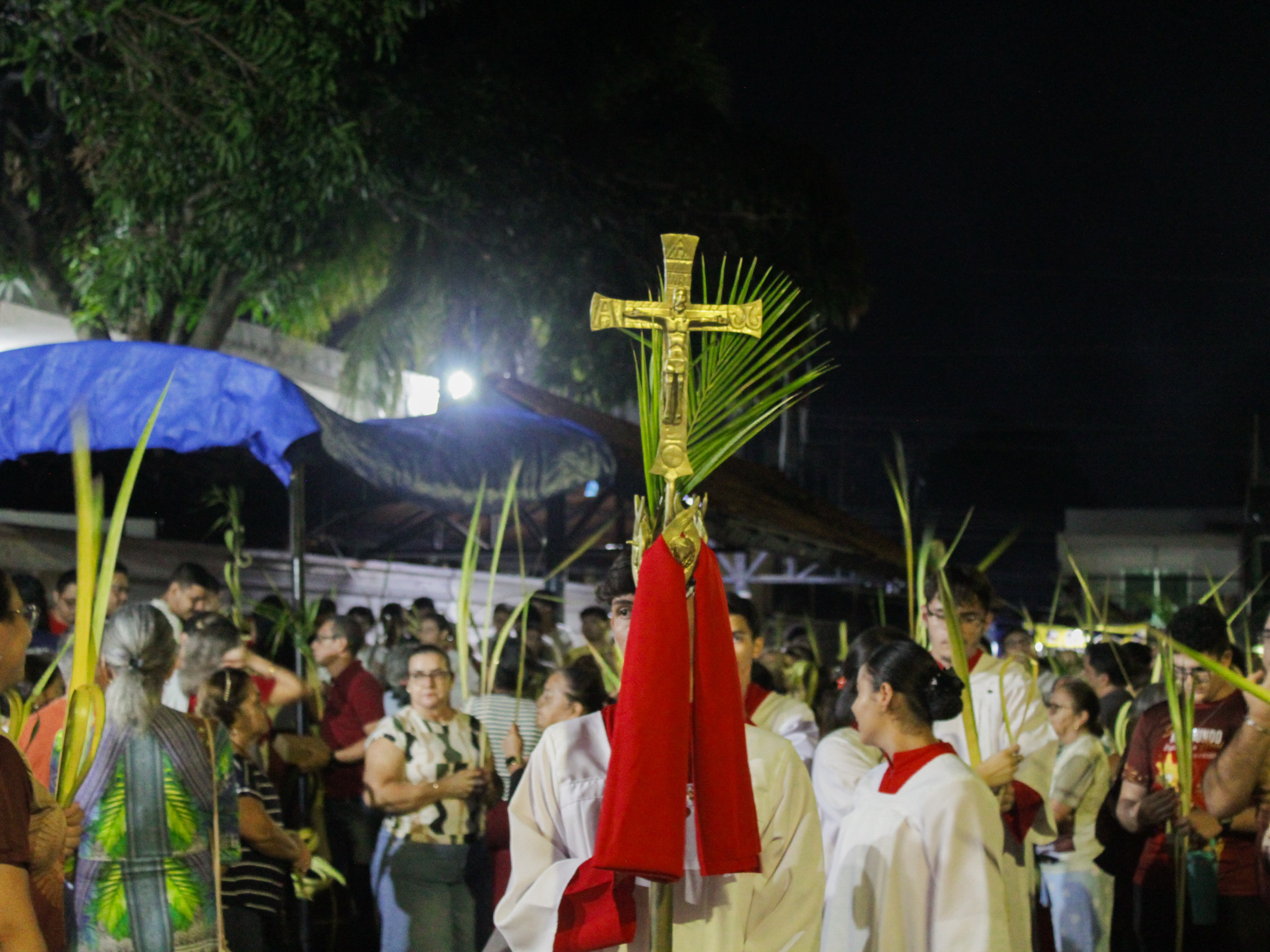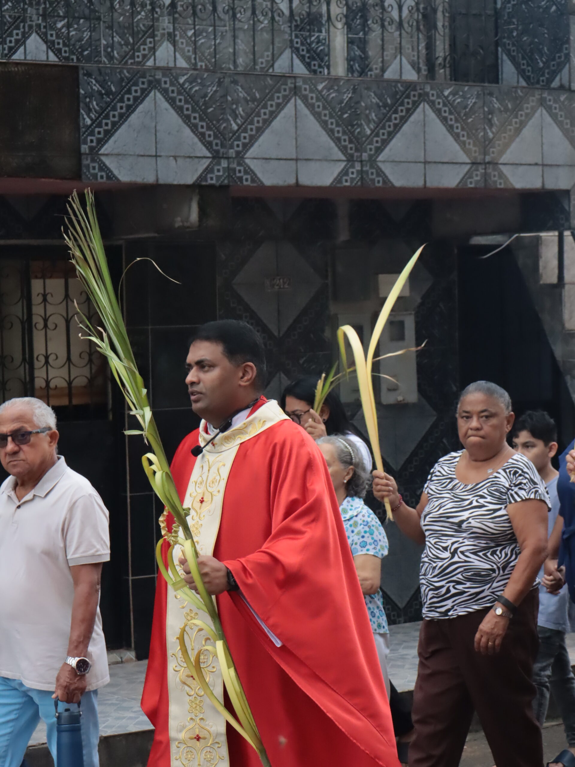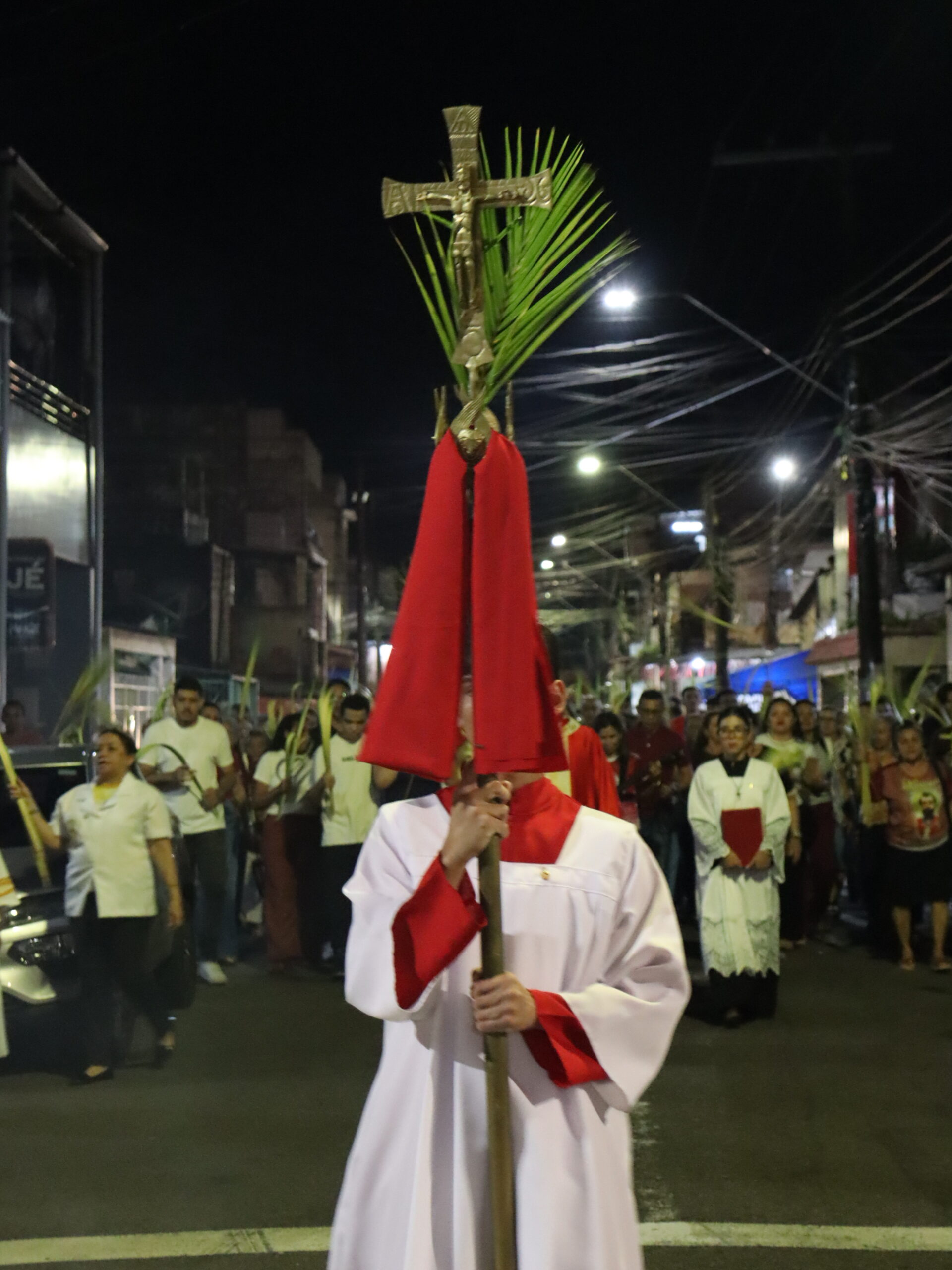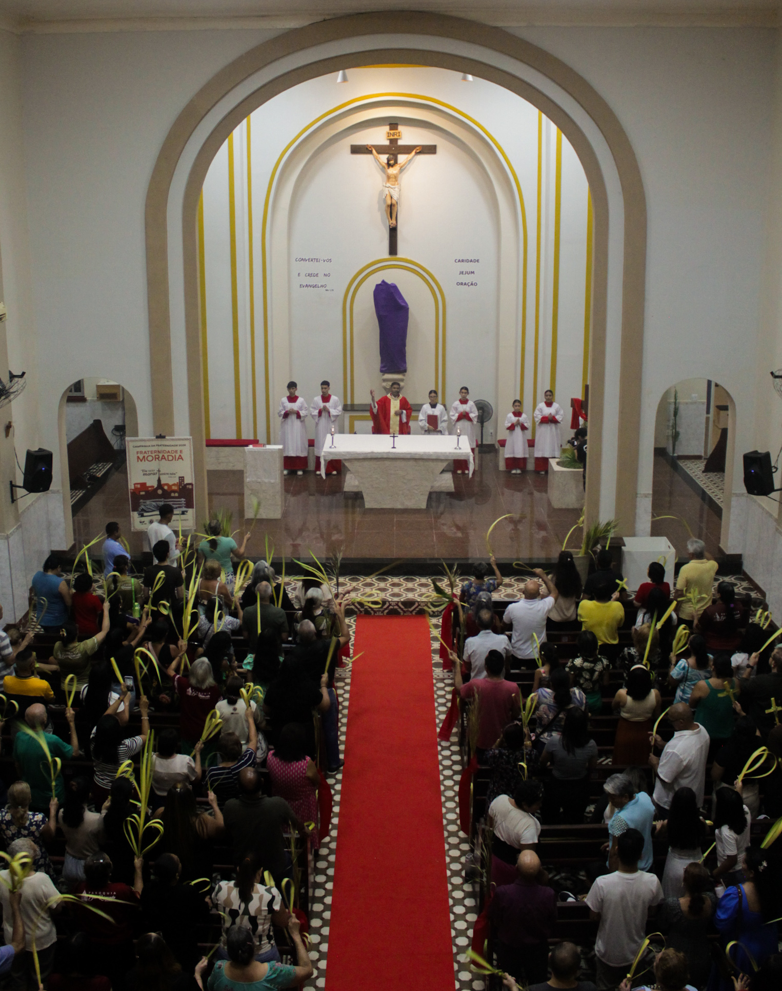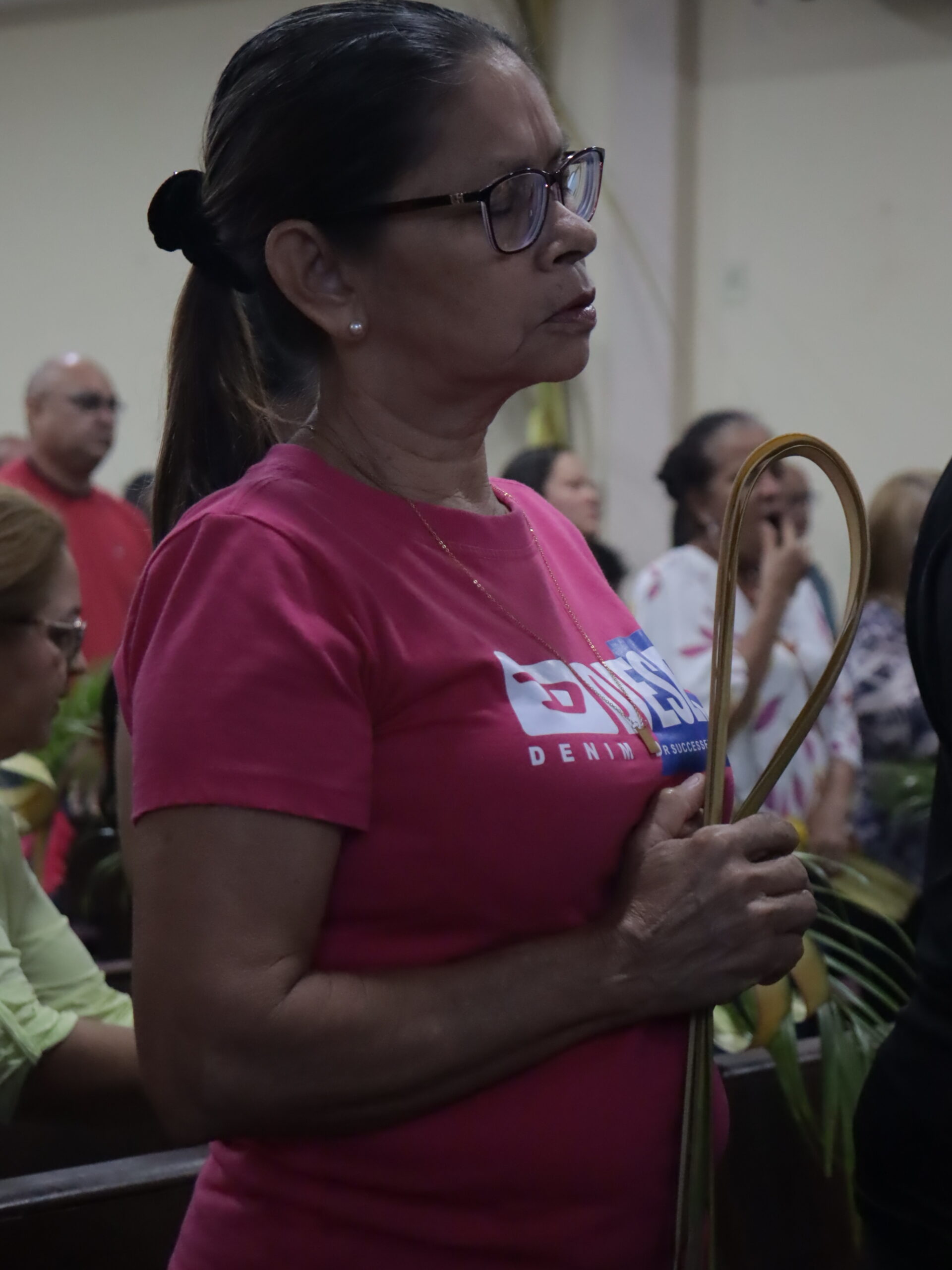 A celebração teve início fora das igrejas, com a bênção dos ramos, recordando a entrada triunfal de Jesus em Jerusalém. Em seguida, os fiéis seguiram em procissão até as igrejas, erguendo seus ramos, cantando e aclamando Jesus como Rei, em um momento marcado pela participação e devoção da comunidade.
