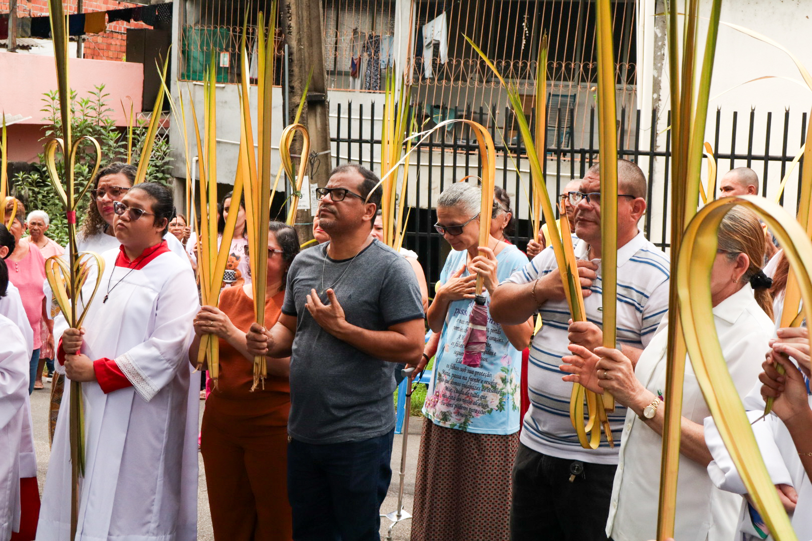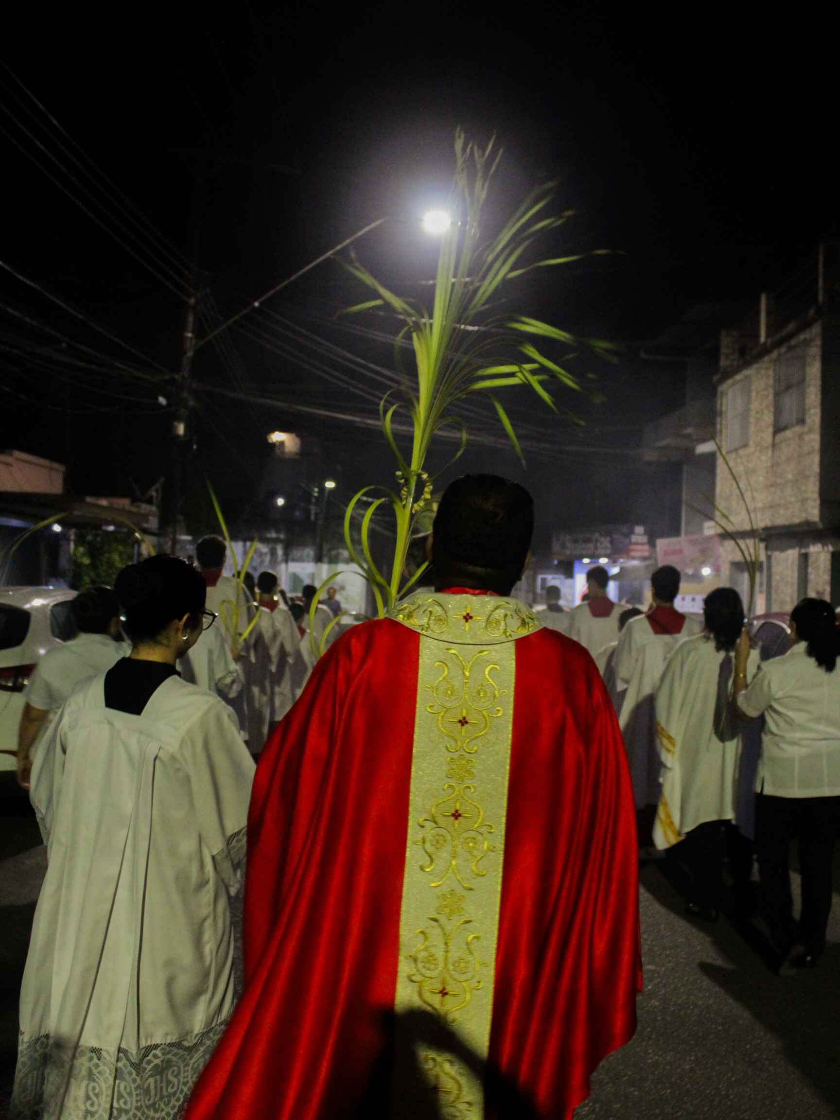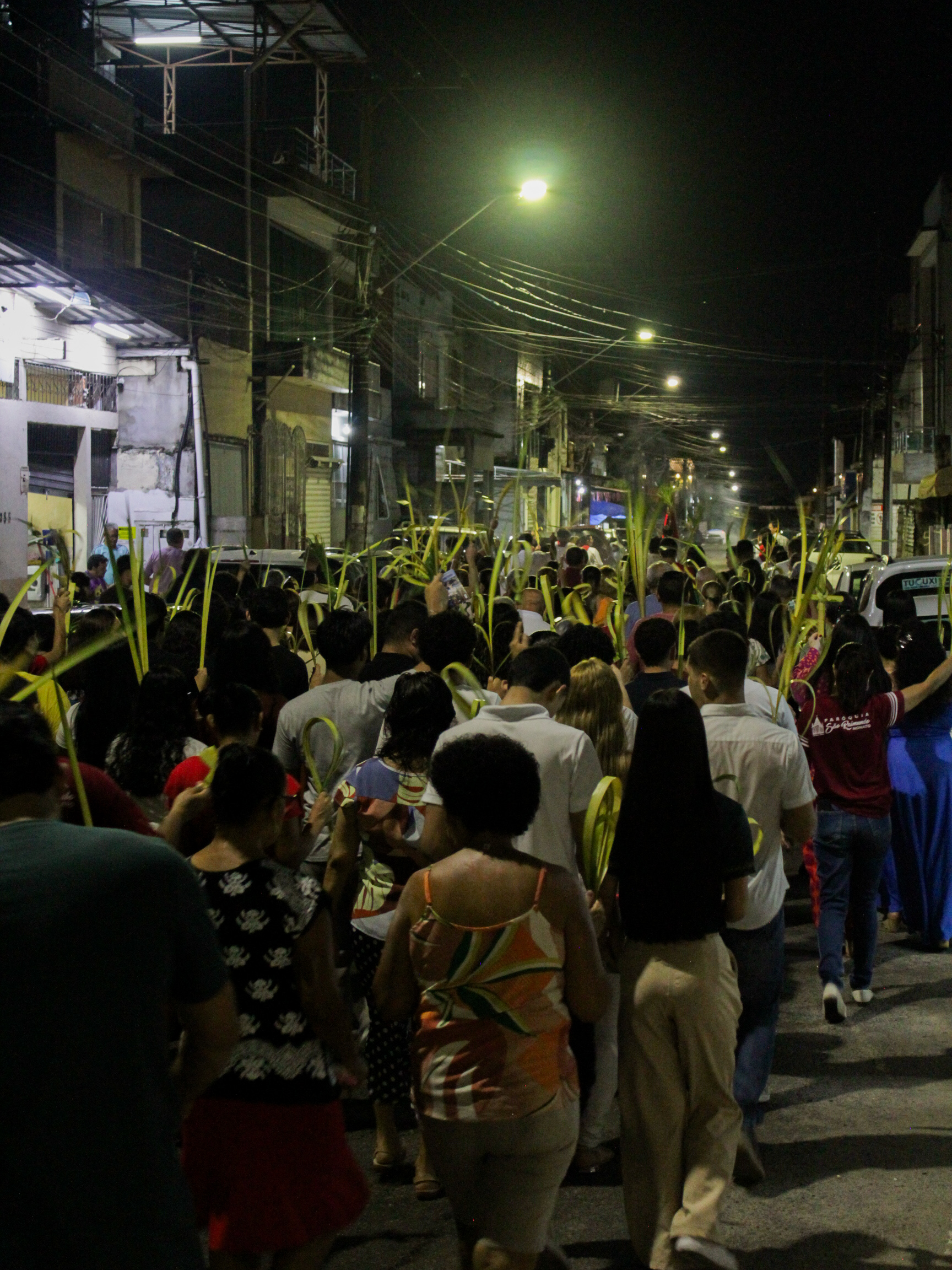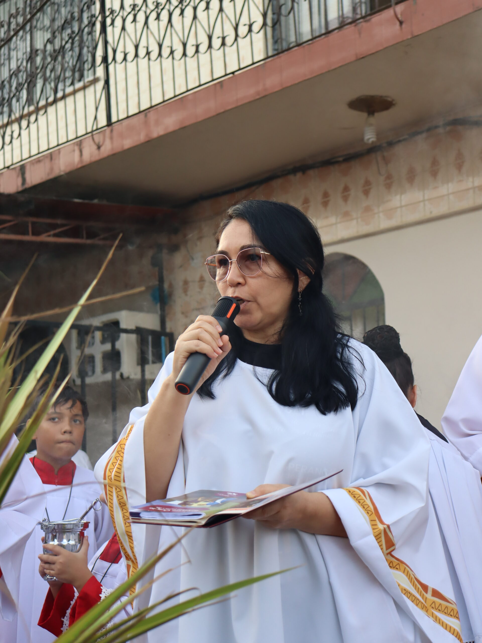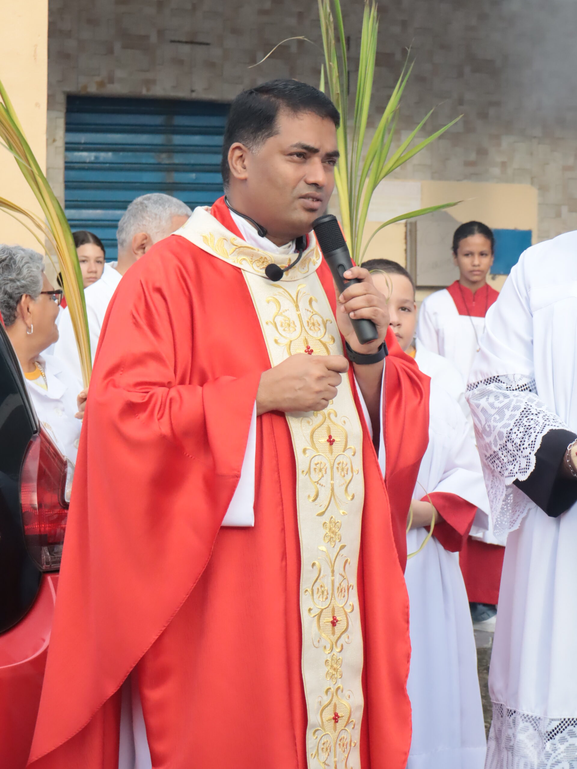 A celebração teve início fora das igrejas, com a bênção dos ramos, recordando a entrada triunfal de Jesus em Jerusalém. Em seguida, os fiéis seguiram em procissão até as igrejas, erguendo seus ramos, cantando e aclamando Jesus como Rei, em um momento marcado pela participação e devoção da comunidade.