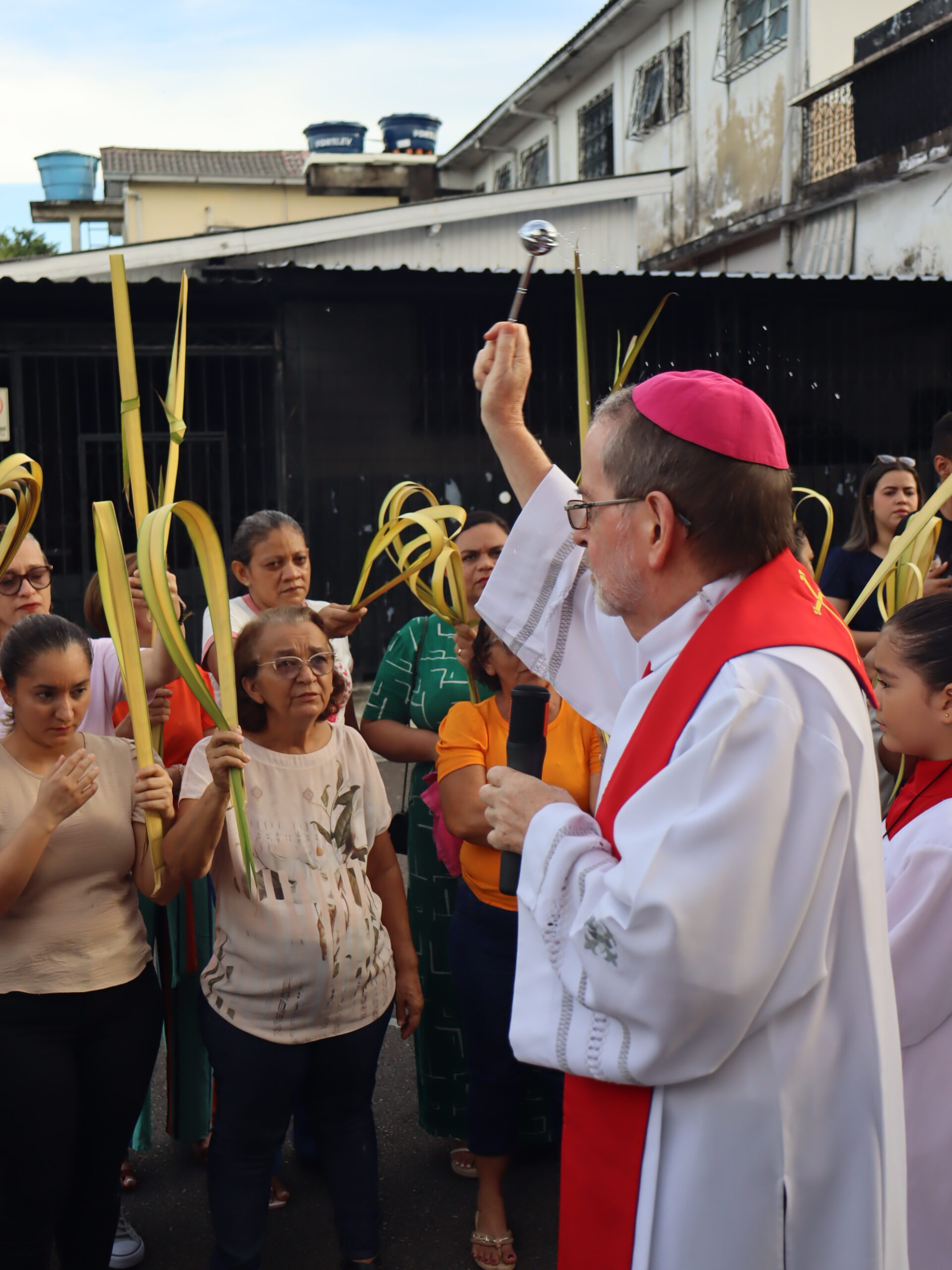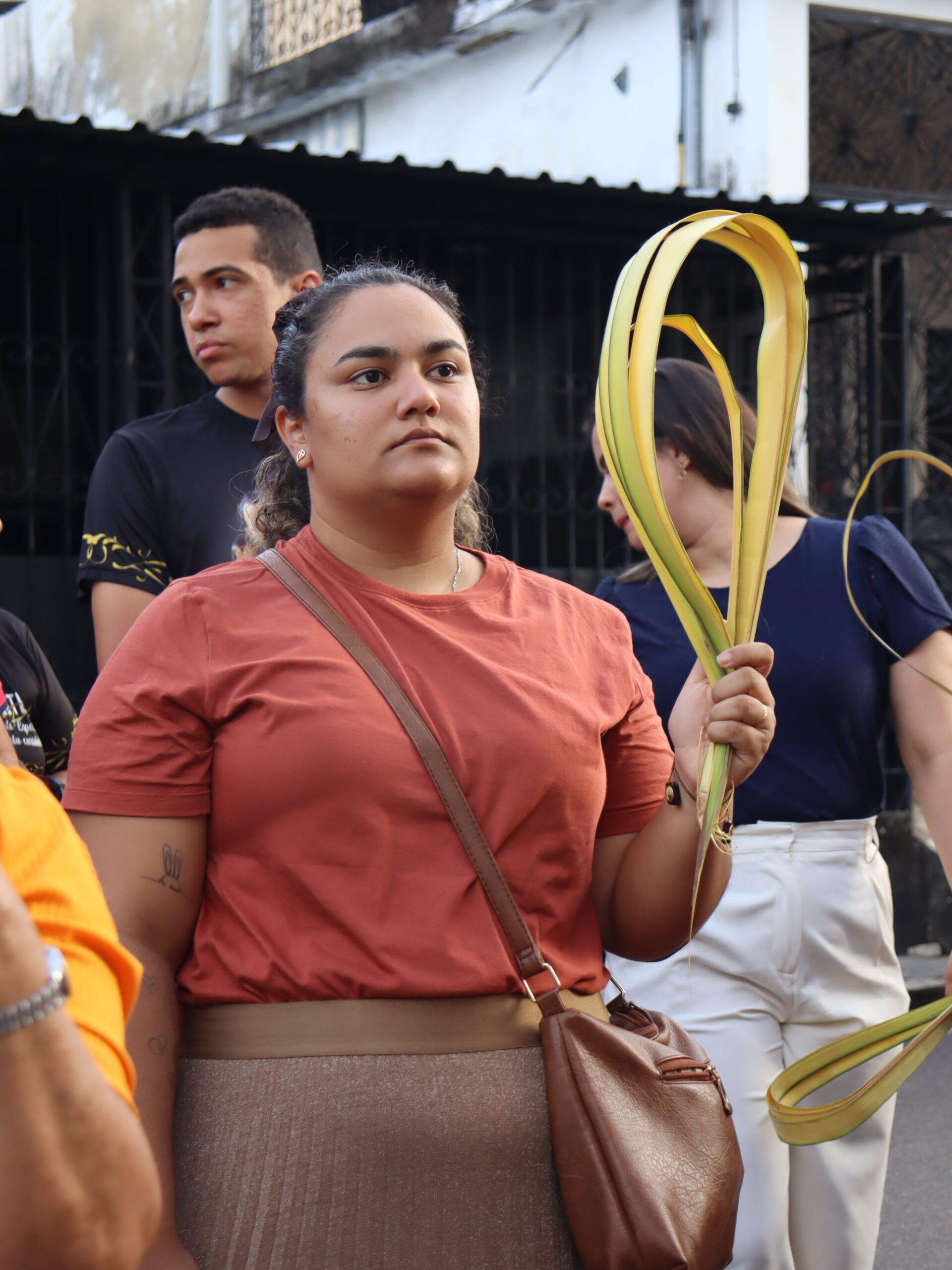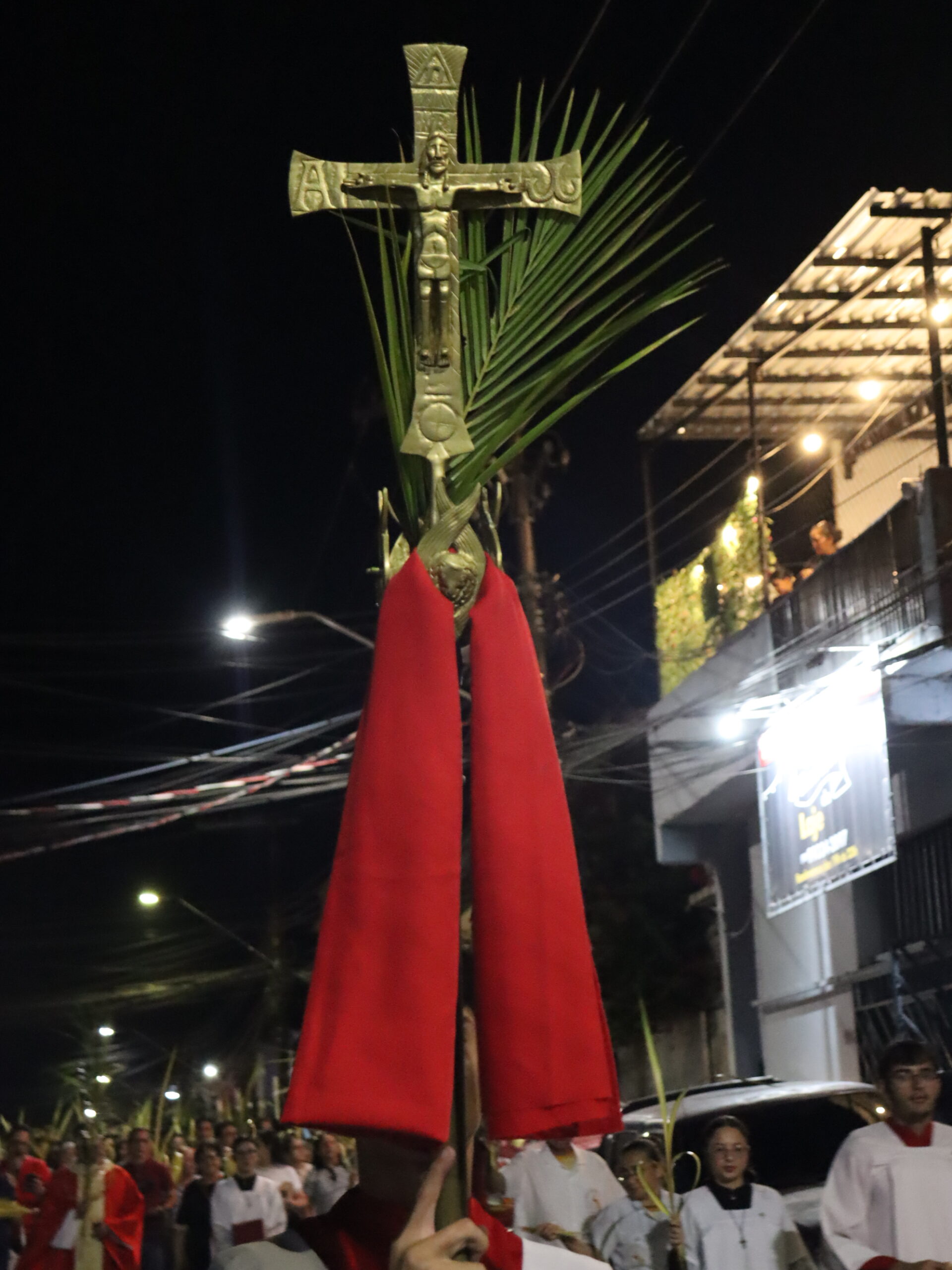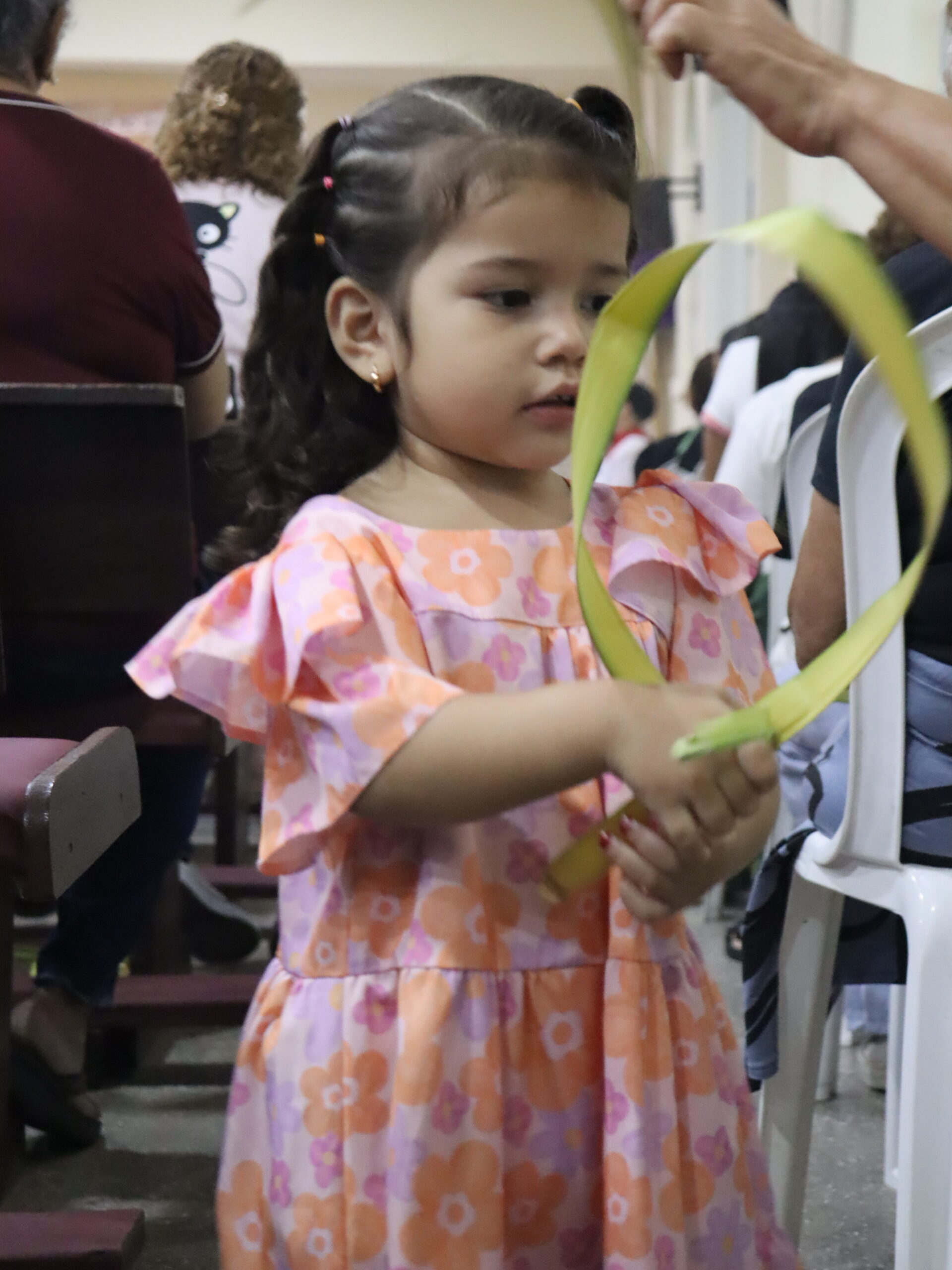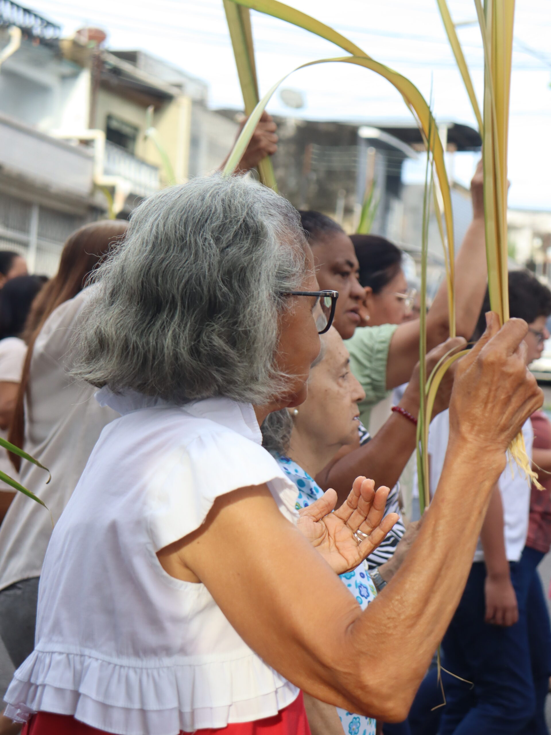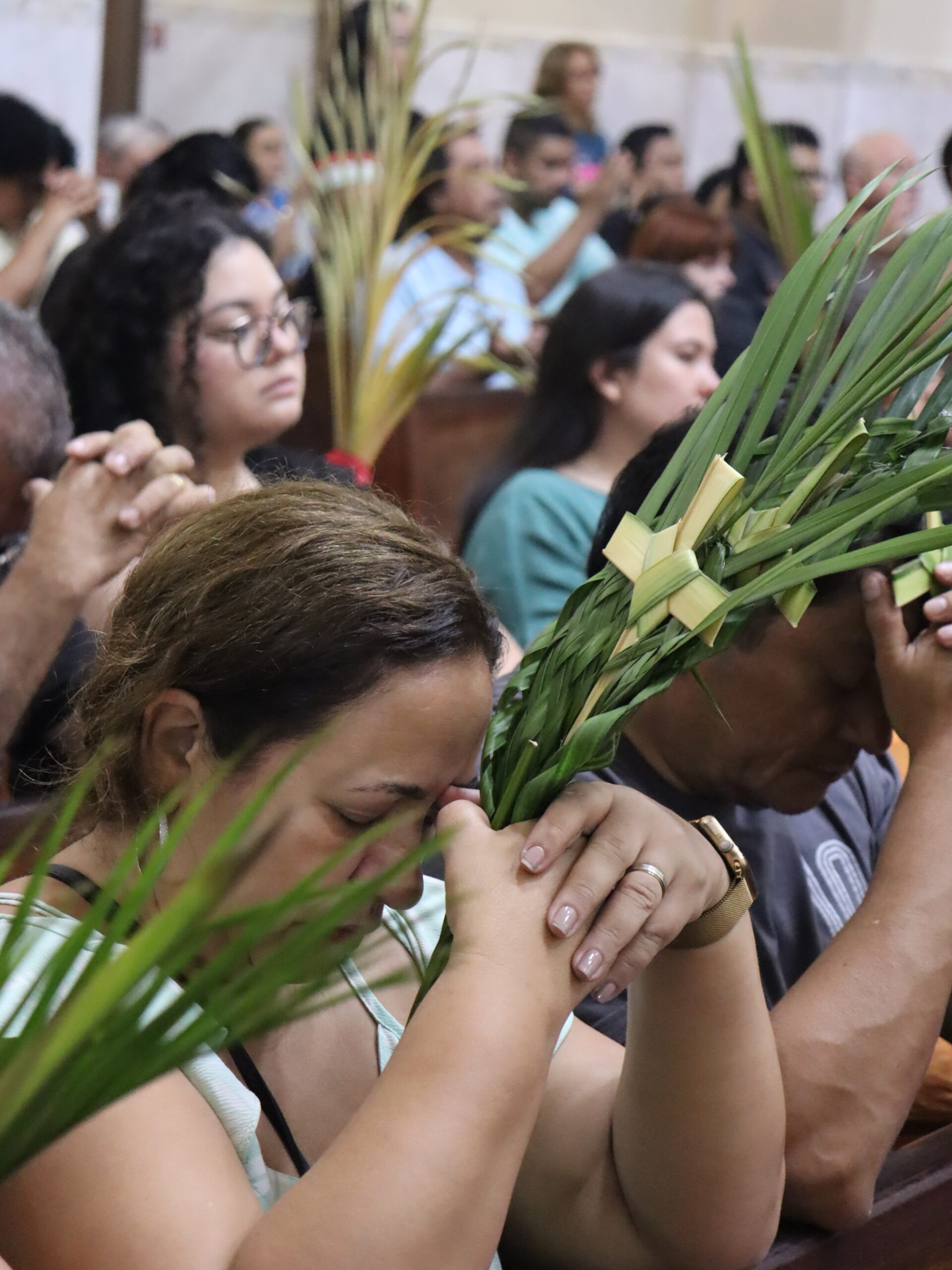 A celebração teve início fora das igrejas, com a bênção dos ramos, recordando a entrada triunfal de Jesus em Jerusalém. Em seguida, os fiéis seguiram em procissão até as igrejas, erguendo seus ramos, cantando e aclamando Jesus como Rei, em um momento marcado pela participação e devoção da comunidade.