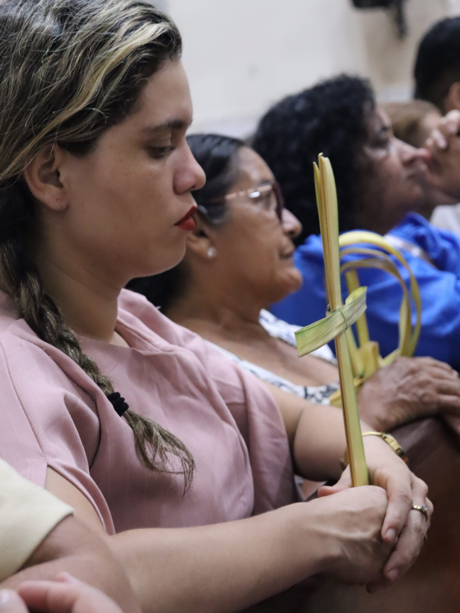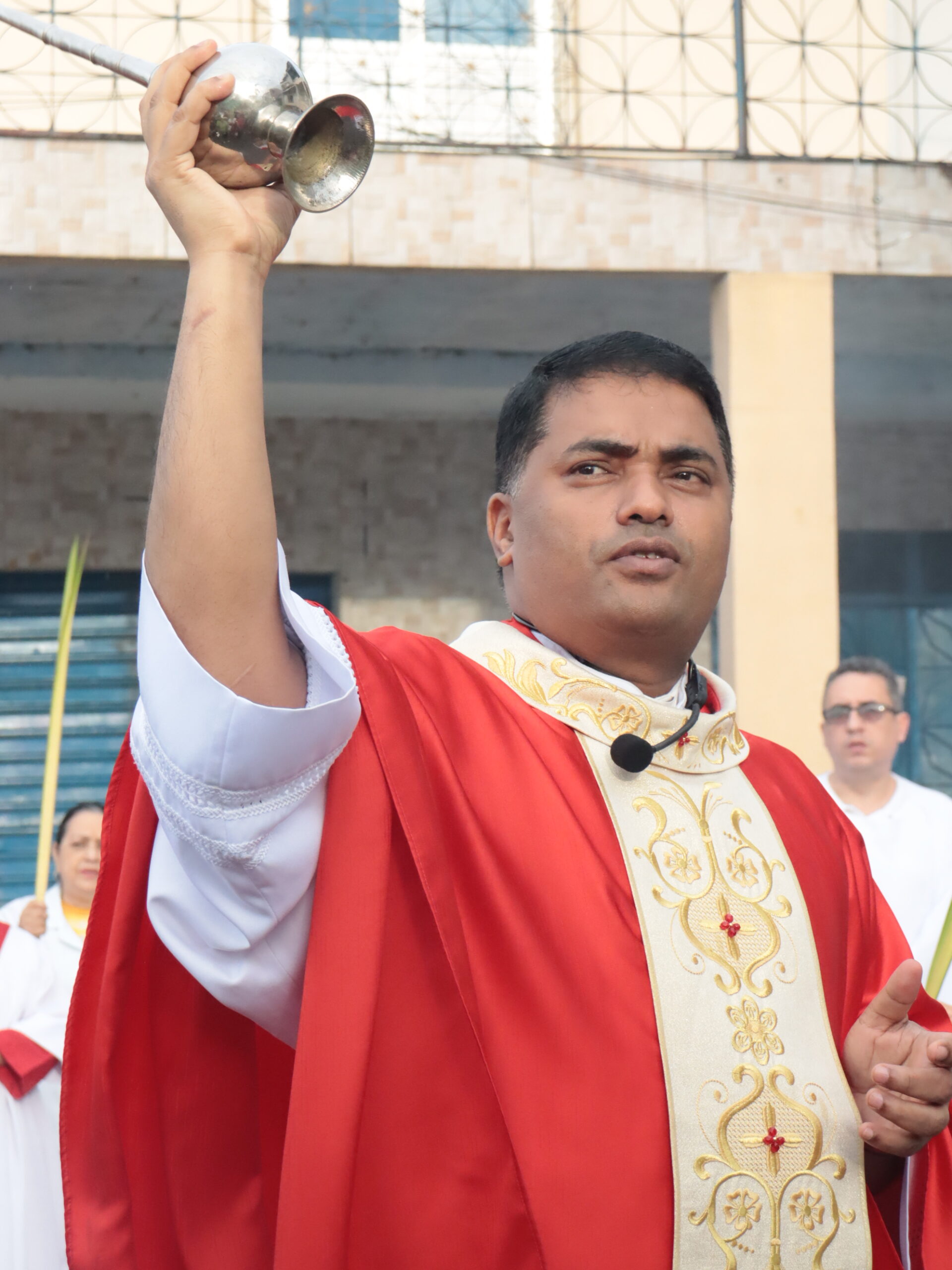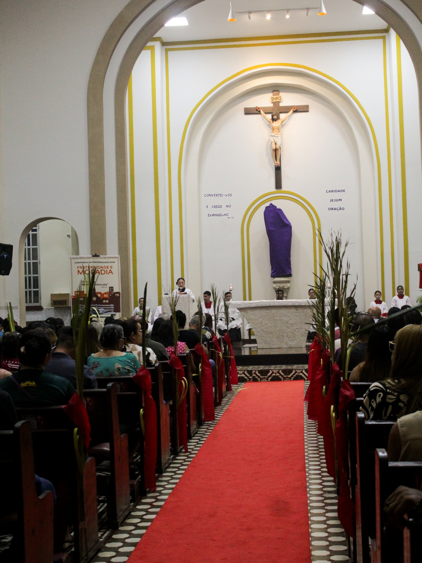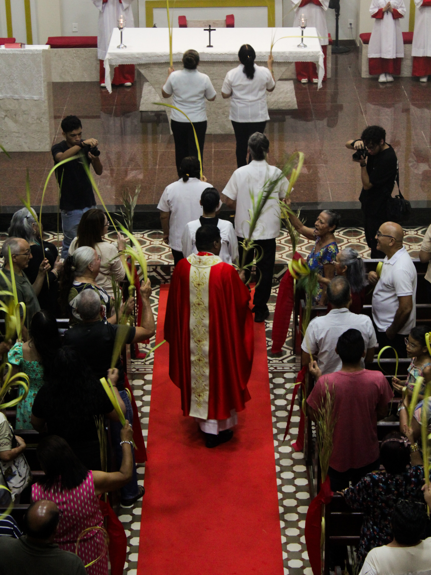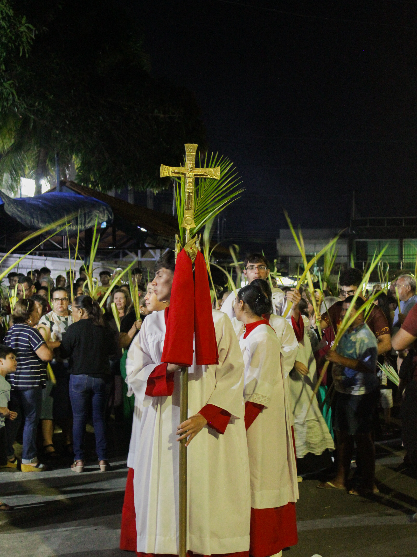 A celebração teve início fora das igrejas, com a bênção dos ramos, recordando a entrada triunfal de Jesus em Jerusalém. Em seguida, os fiéis seguiram em procissão até as igrejas, erguendo seus ramos, cantando e aclamando Jesus como Rei, em um momento marcado pela participação e devoção da comunidade.