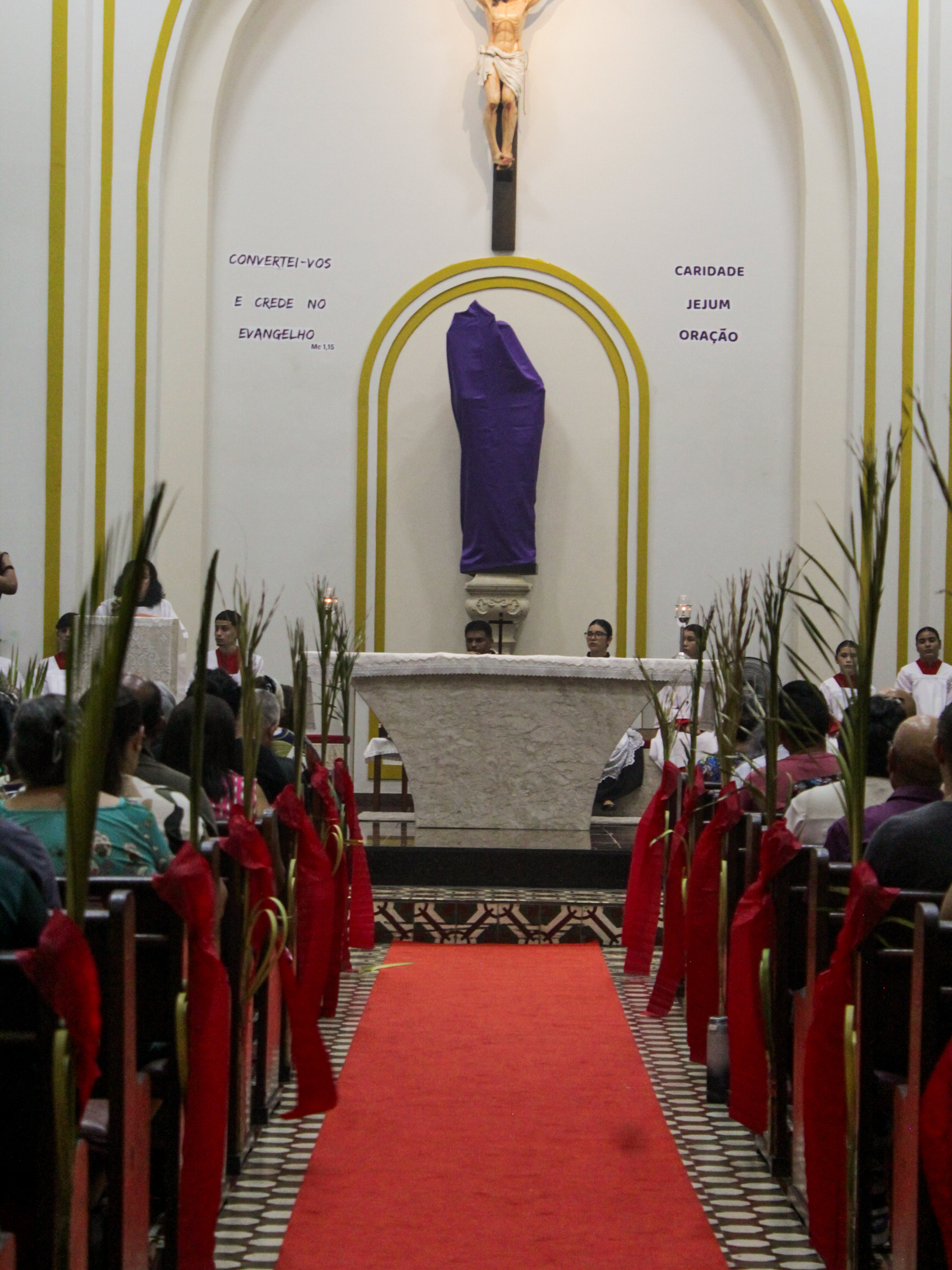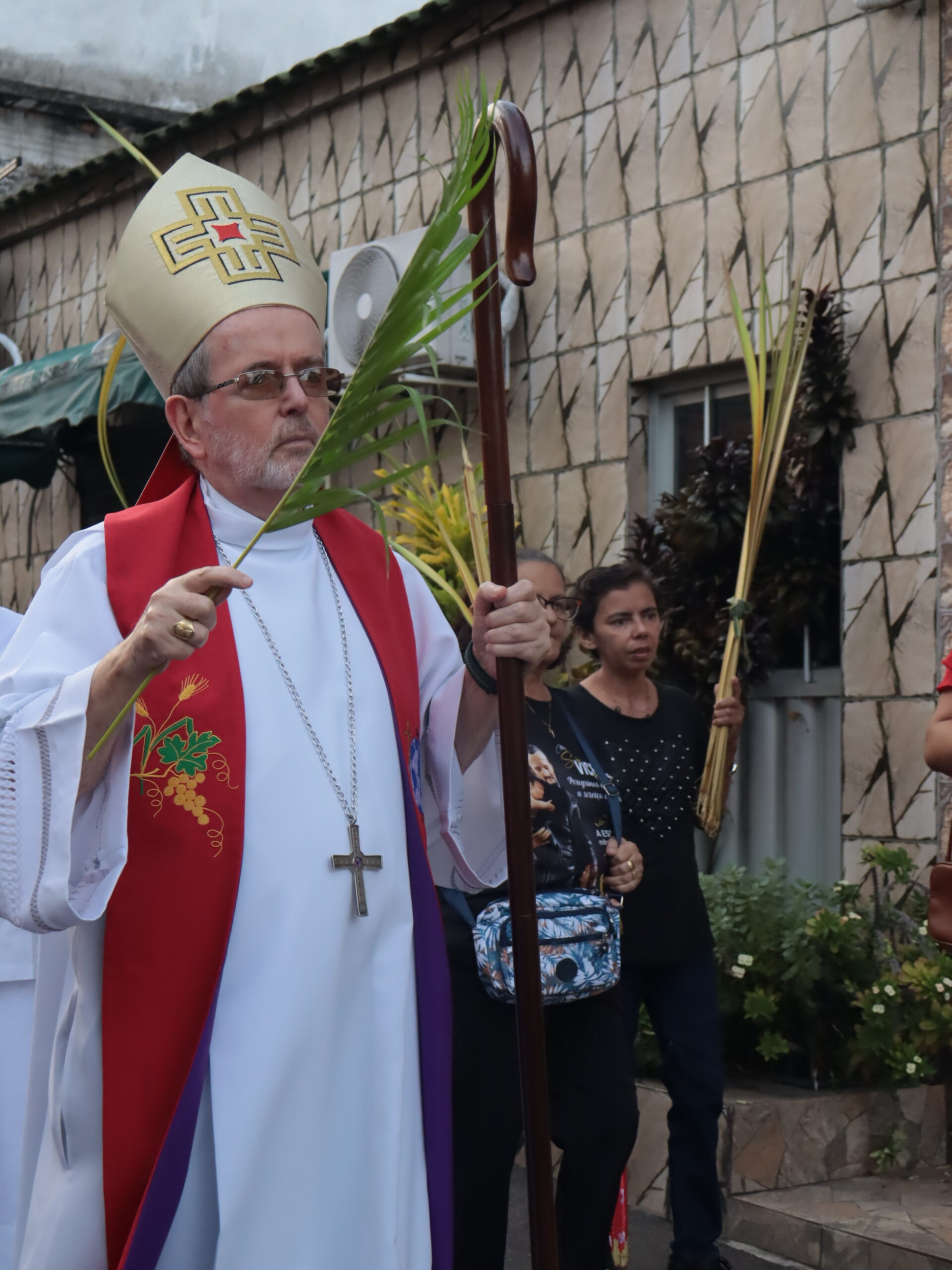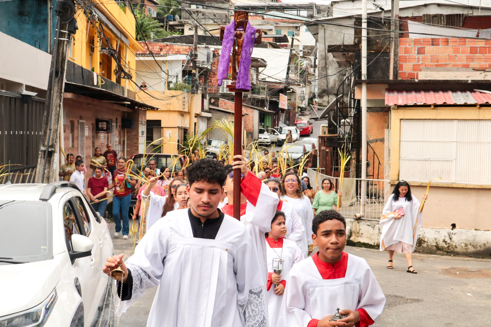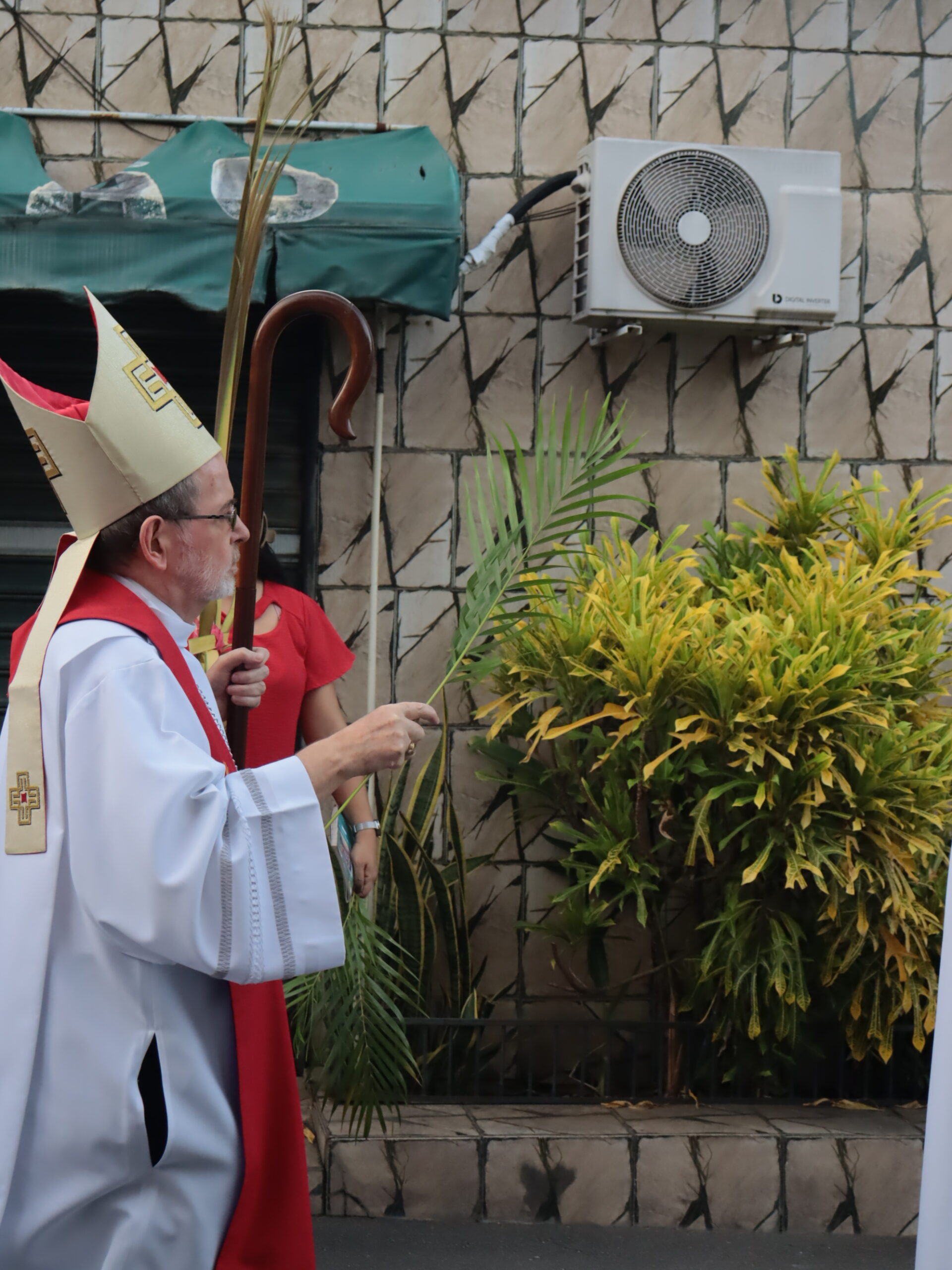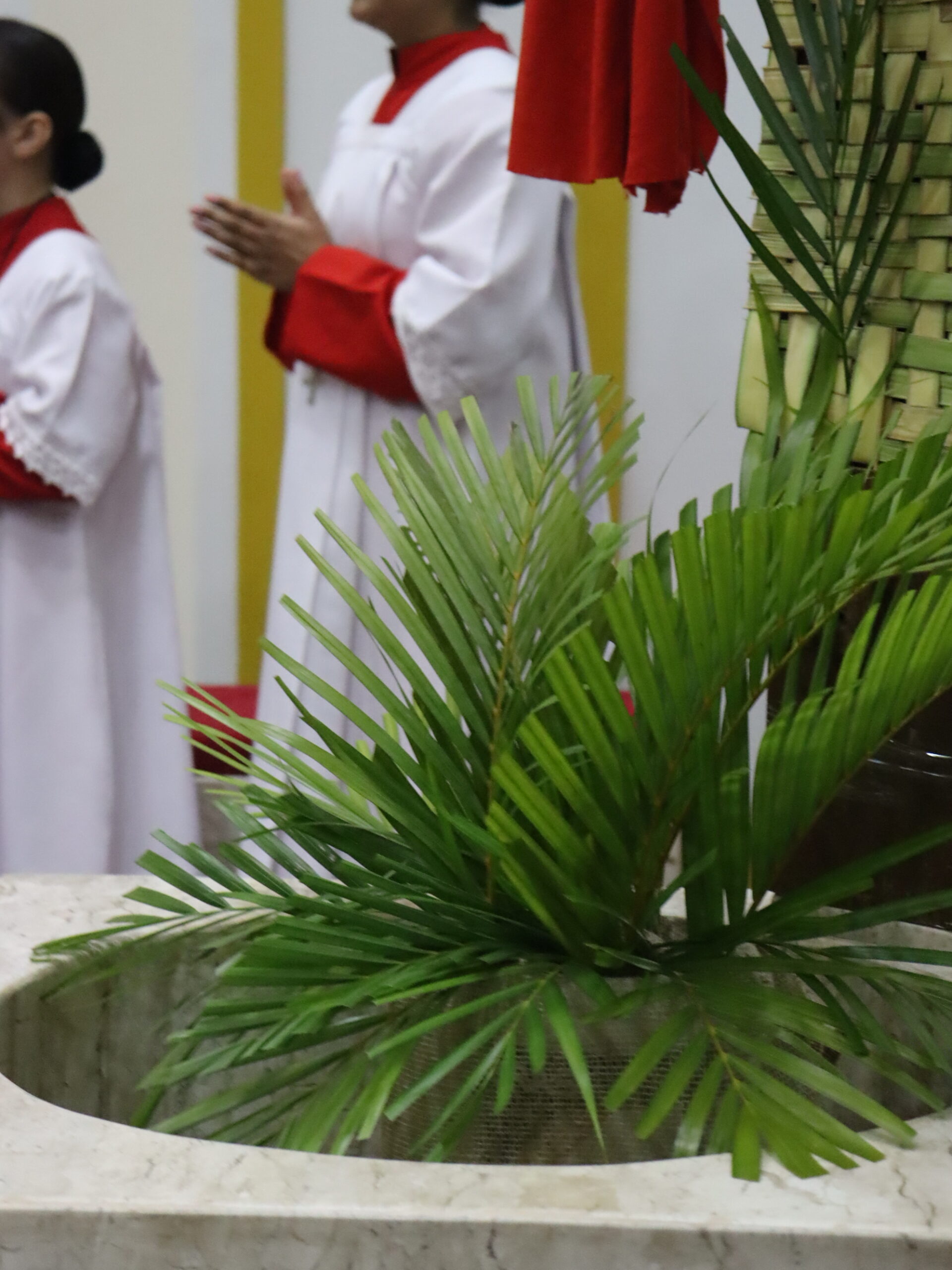 A celebração teve início fora das igrejas, com a bênção dos ramos, recordando a entrada triunfal de Jesus em Jerusalém. Em seguida, os fiéis seguiram em procissão até as igrejas, erguendo seus ramos, cantando e aclamando Jesus como Rei, em um momento marcado pela participação e devoção da comunidade.