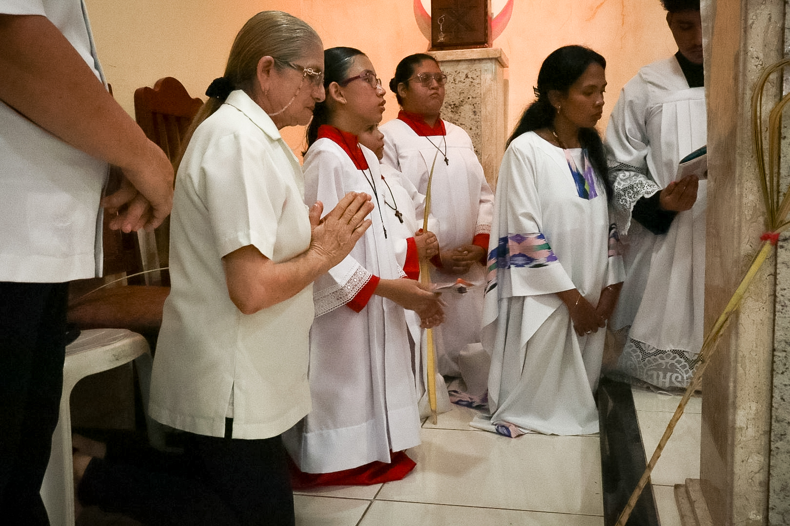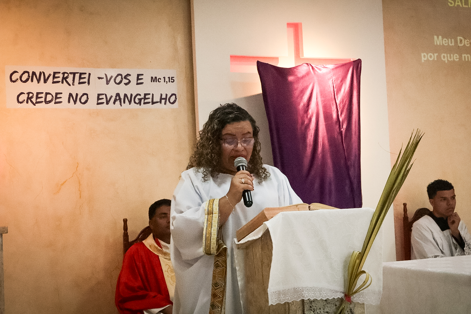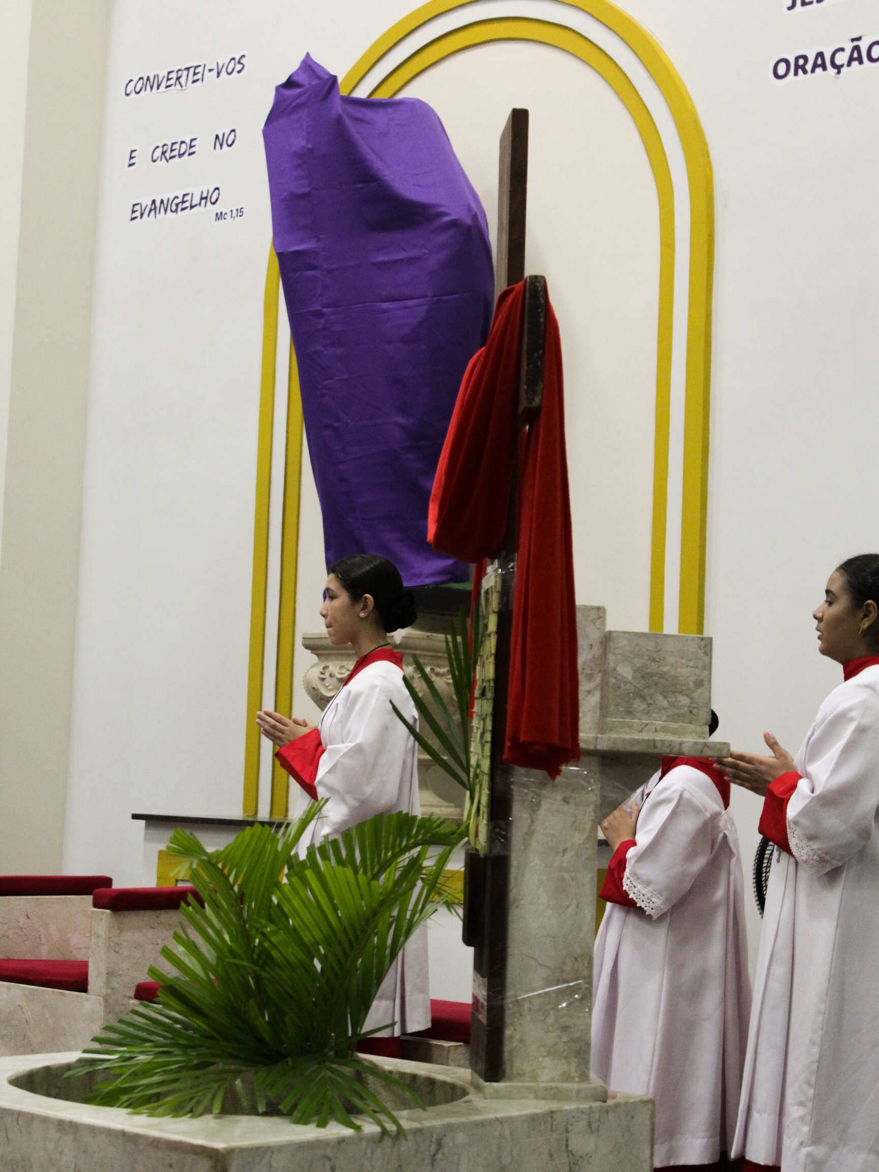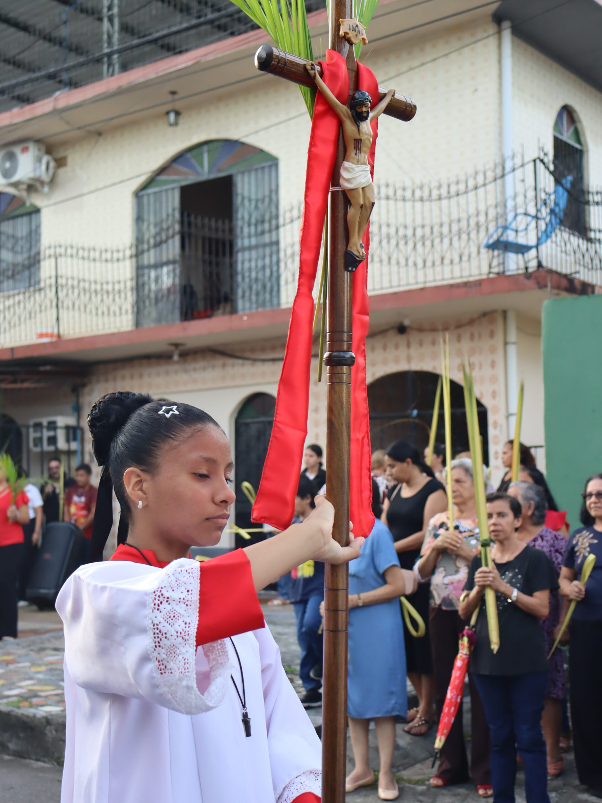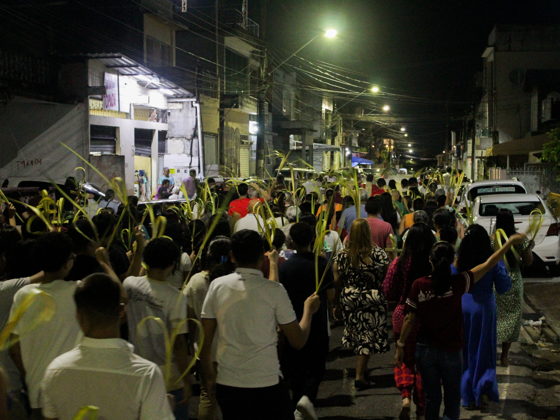 A celebração teve início fora das igrejas, com a bênção dos ramos, recordando a entrada triunfal de Jesus em Jerusalém. Em seguida, os fiéis seguiram em procissão até as igrejas, erguendo seus ramos, cantando e aclamando Jesus como Rei, em um momento marcado pela participação e devoção da comunidade.