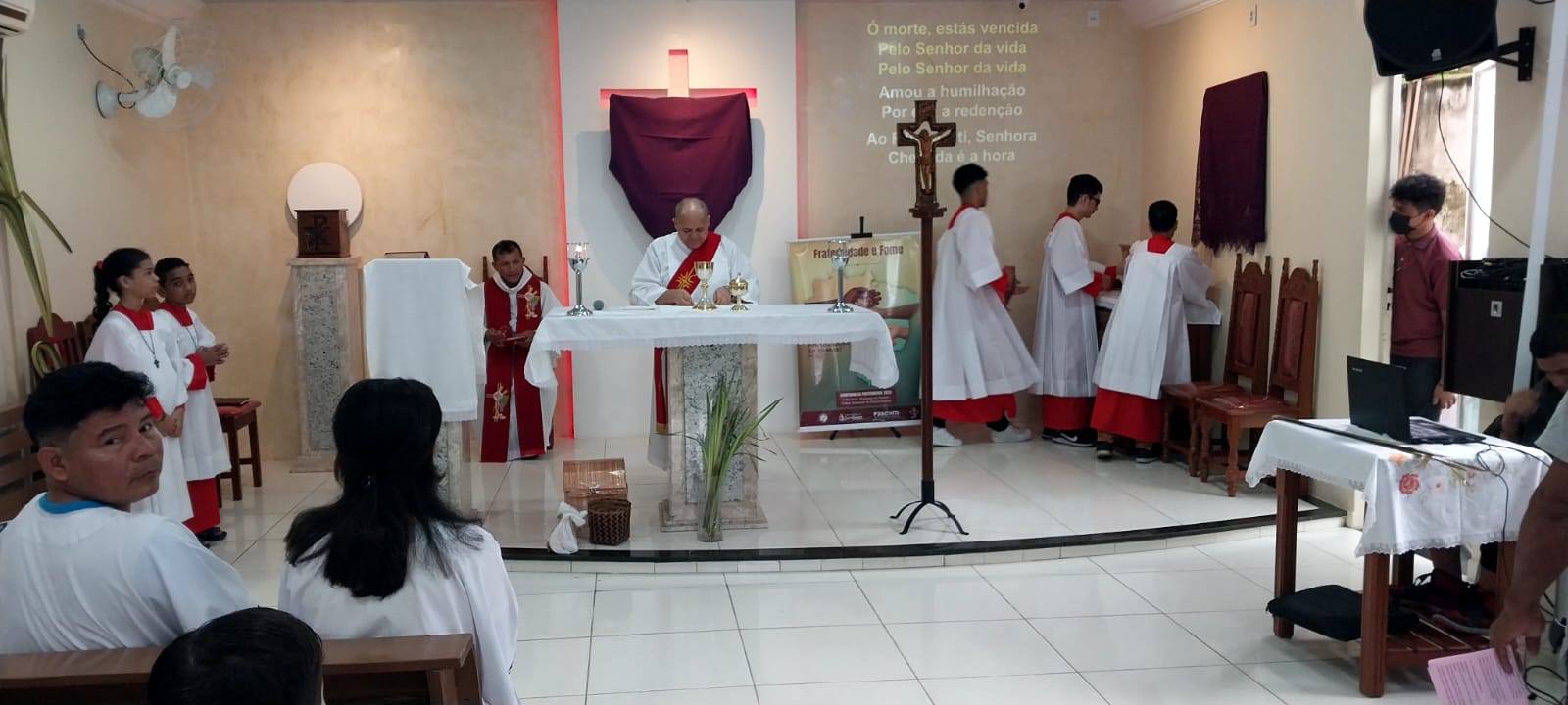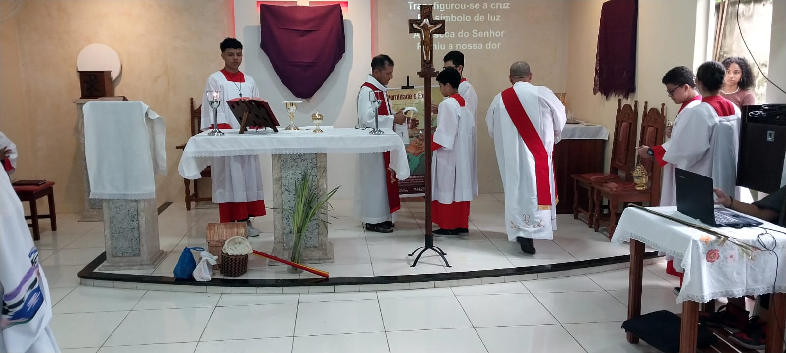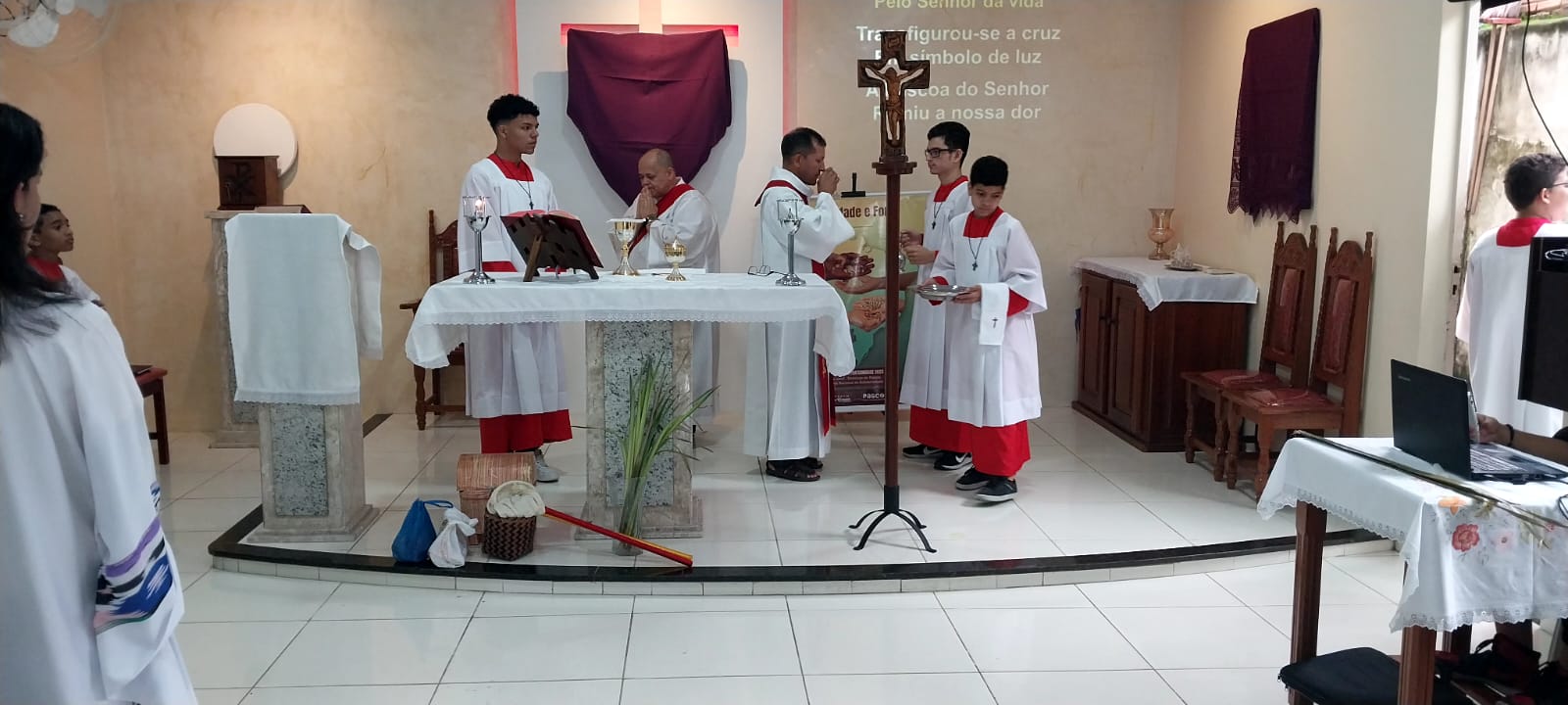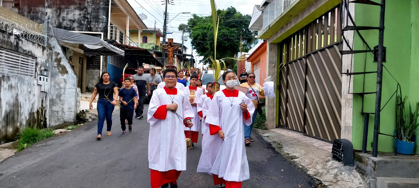 Neste Domingo de ramos (2), a paróquia São Raimundo Nonato deu o início a Semana Santa que se estende até o próximo domingo de páscoa. Com a celebração do Domingo da paixão do Senhor, recordamos a entrada triunfal de Jesus em Jerusalém entre palmas e ramos de oliveira. A liturgia dos ramos antecipa o triunfo da ressurreição. A Semana Santa é o momento central da liturgia católica e é a semana mais importante do ano litúrgico, quando se celebram de modo especial os mistérios da paixão, morte e ressurreição de Jesus Cristo.