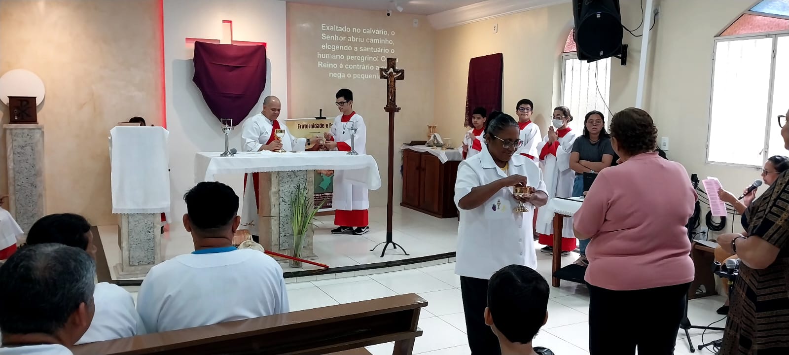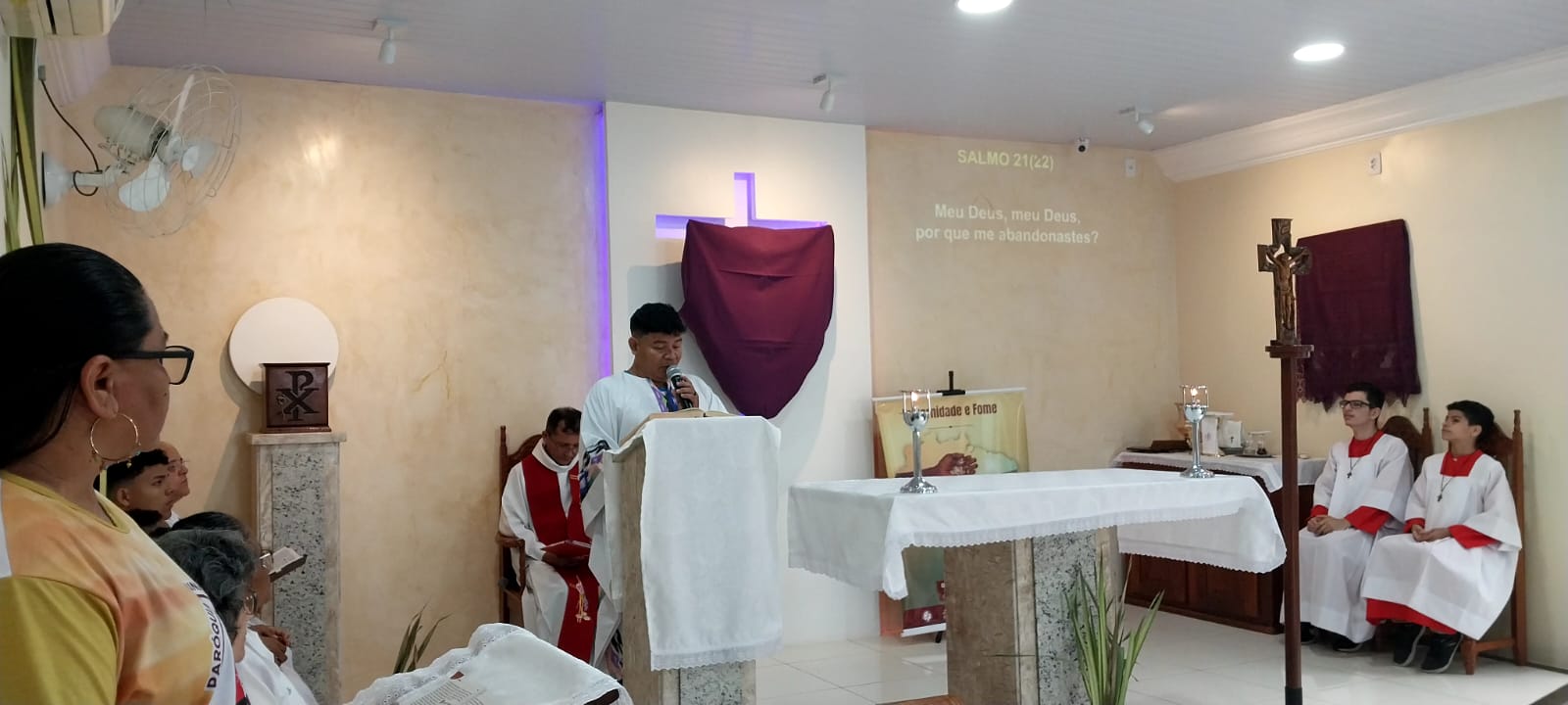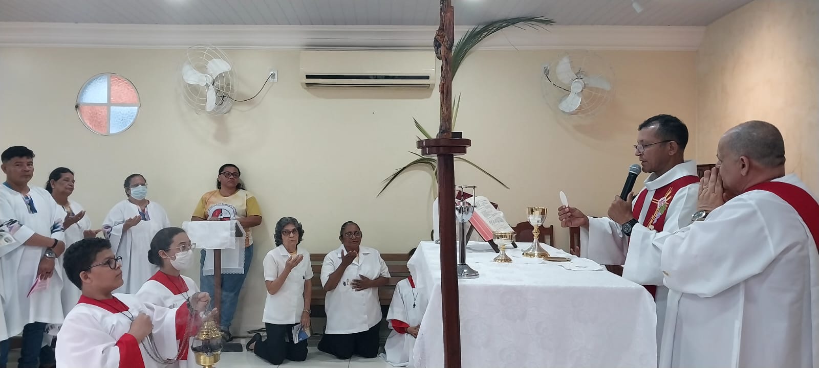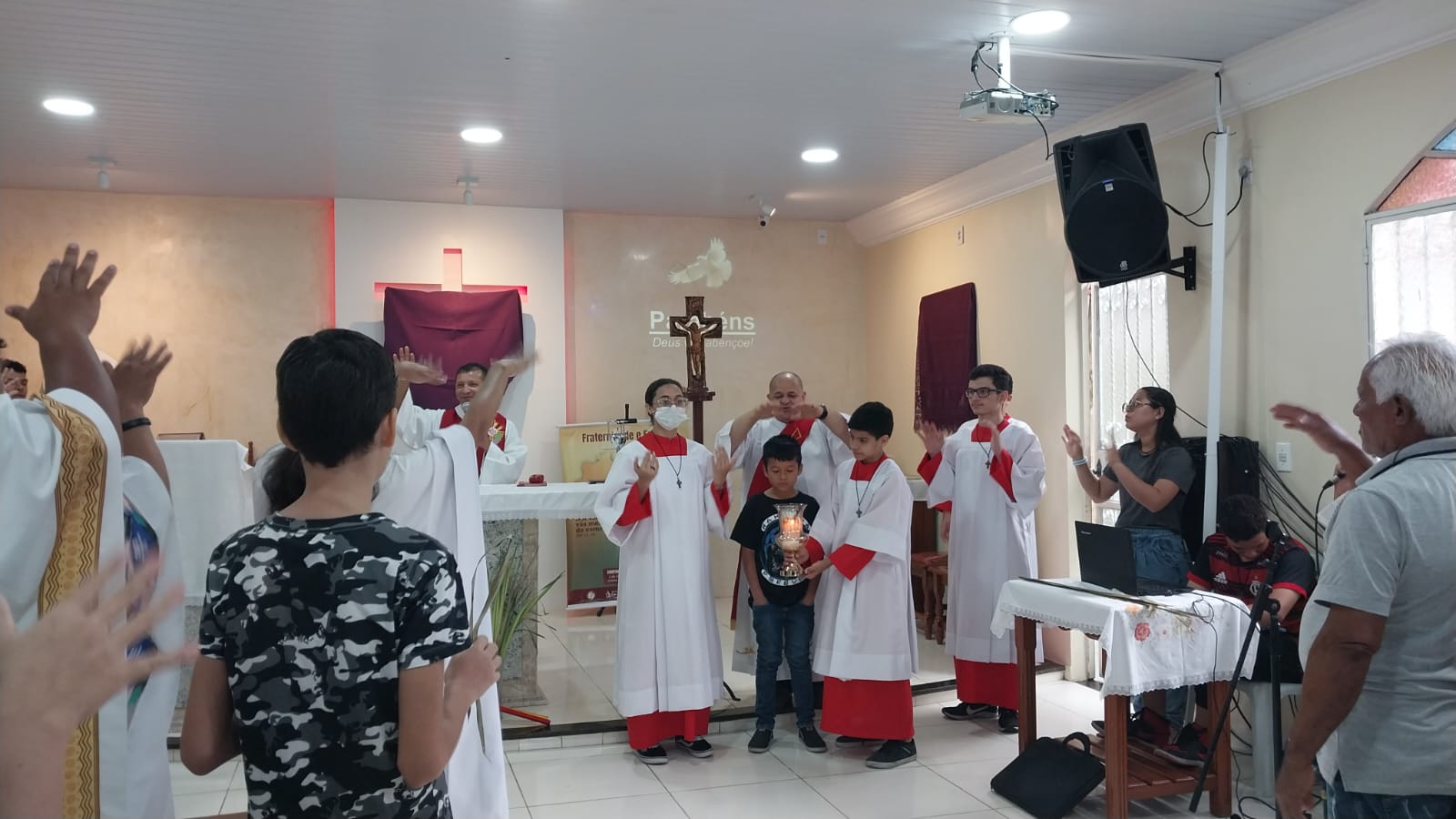 Neste Domingo de ramos (2), a paróquia São Raimundo Nonato deu o início a Semana Santa que se estende até o próximo domingo de páscoa. Com a celebração do Domingo da paixão do Senhor, recordamos a entrada triunfal de Jesus em Jerusalém entre palmas e ramos de oliveira. A liturgia dos ramos antecipa o triunfo da ressurreição. A Semana Santa é o momento central da liturgia católica e é a semana mais importante do ano litúrgico, quando se celebram de modo especial os mistérios da paixão, morte e ressurreição de Jesus Cristo.