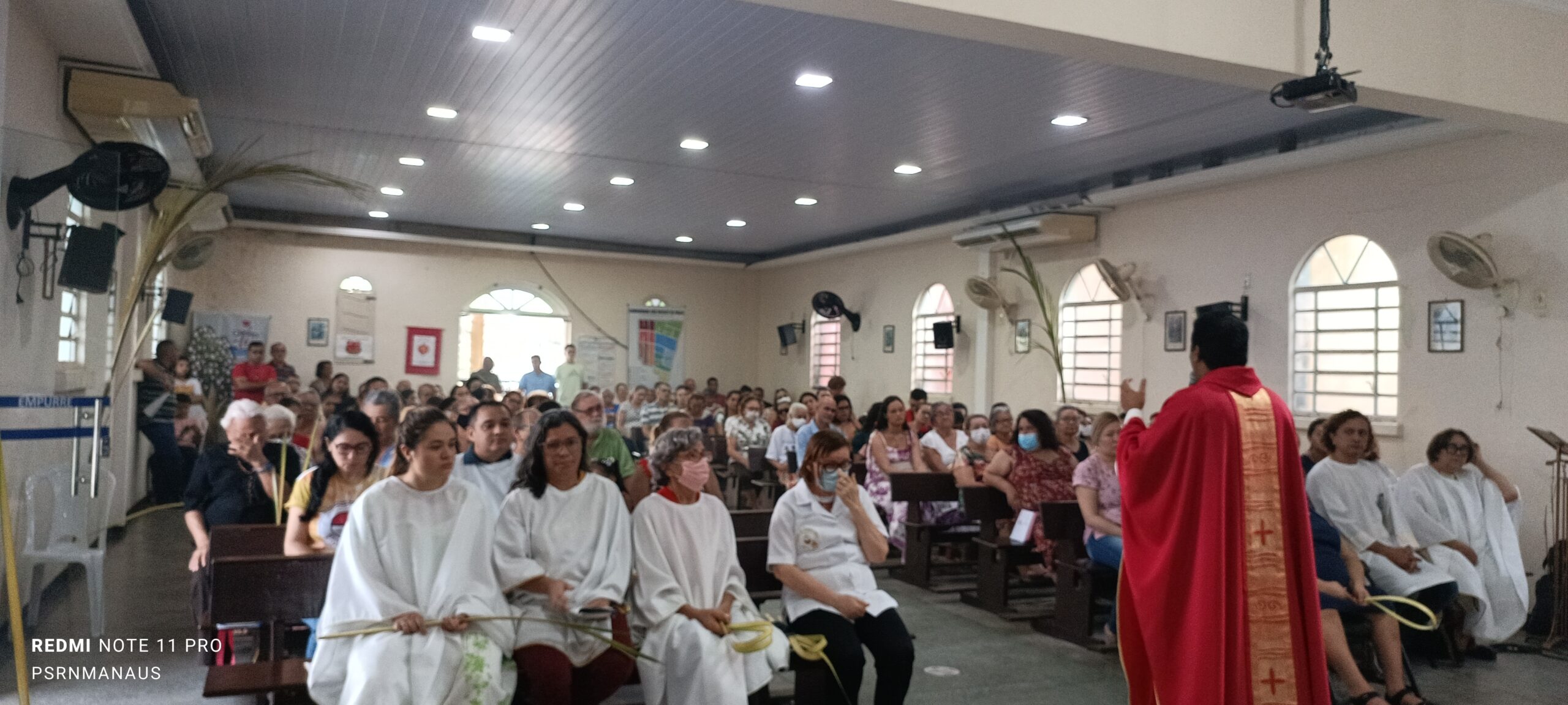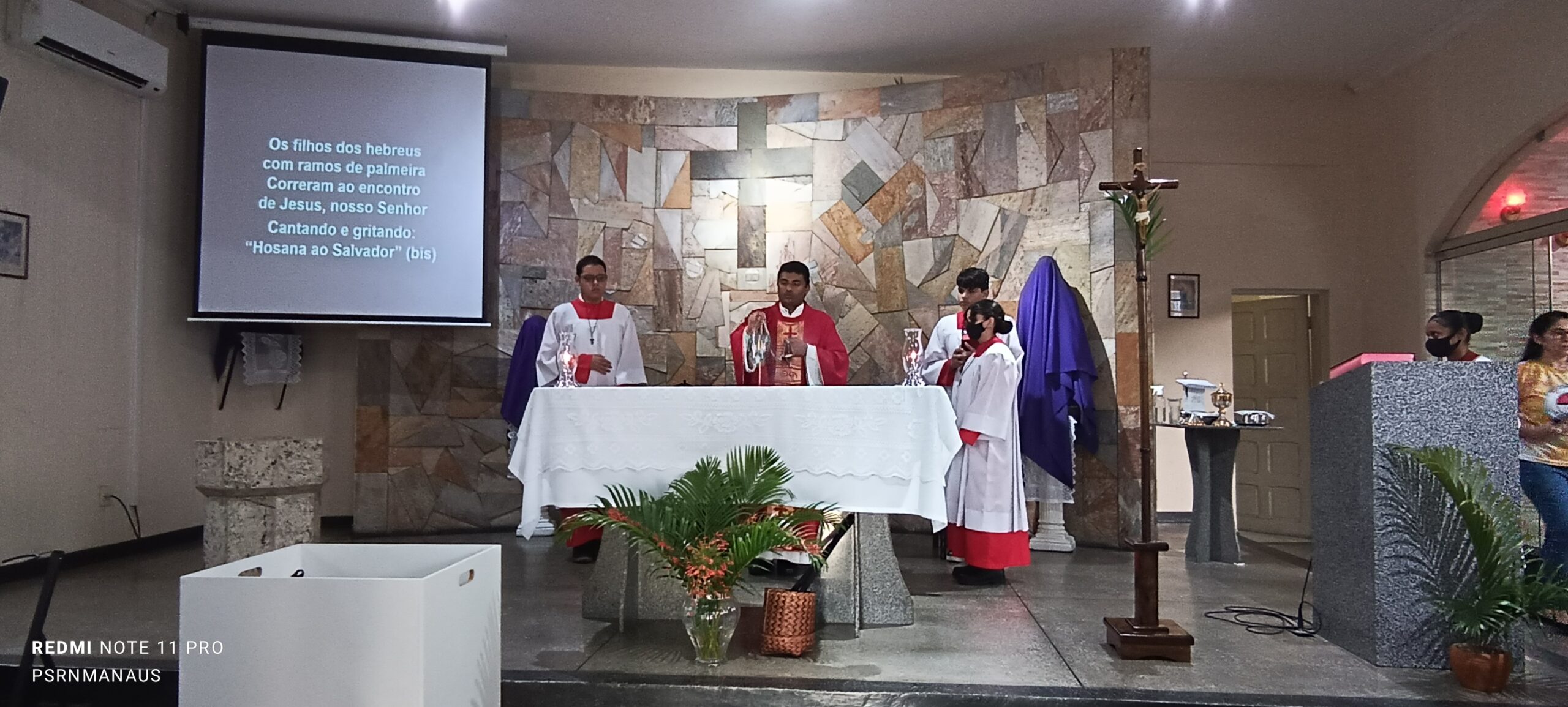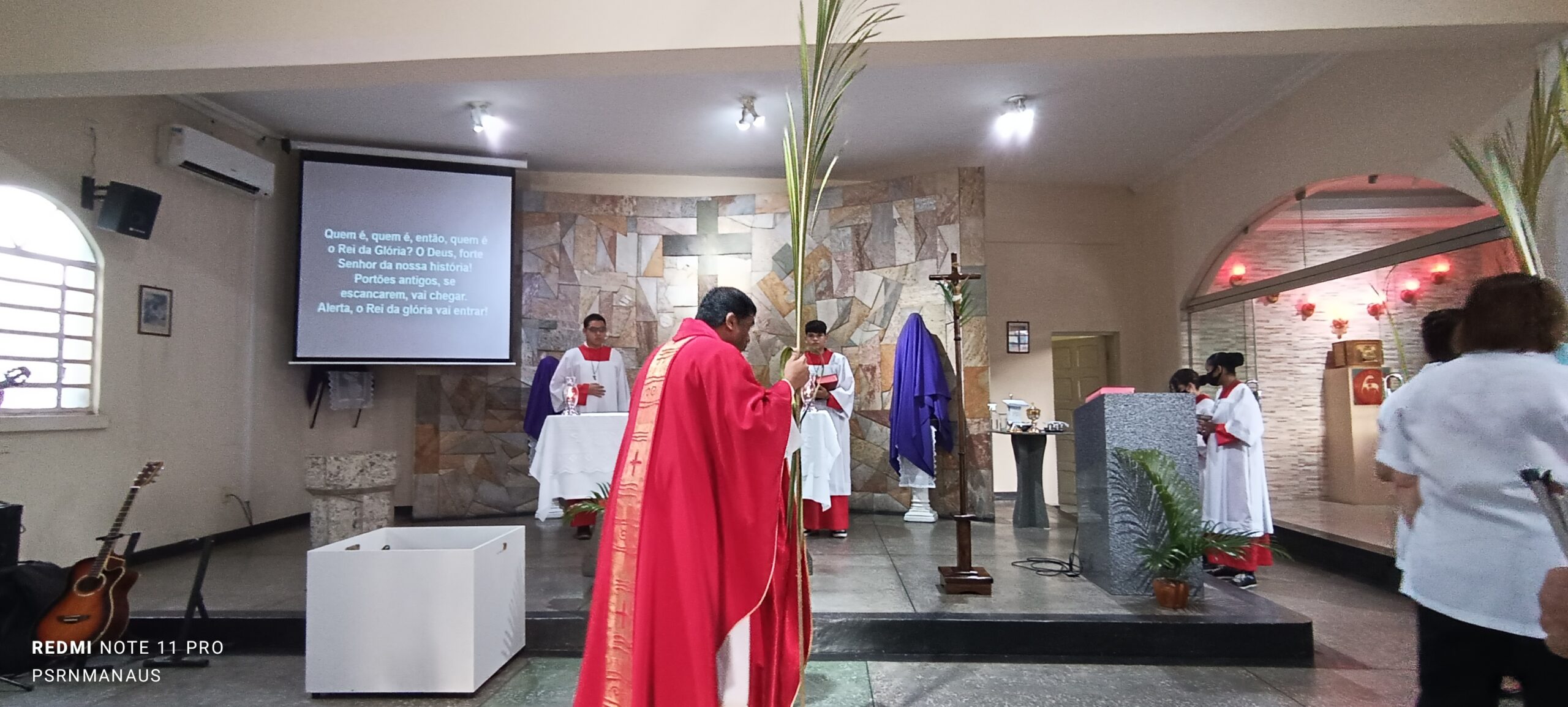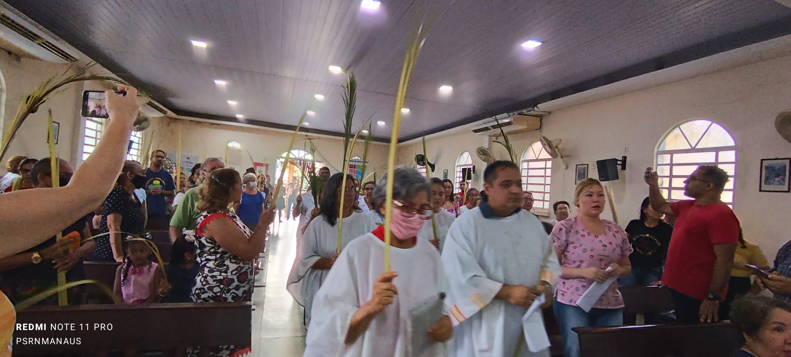 Neste Domingo de ramos (2), a paróquia São Raimundo Nonato deu o início a Semana Santa que se estende até o próximo domingo de páscoa. Com a celebração do Domingo da paixão do Senhor, recordamos a entrada triunfal de Jesus em Jerusalém entre palmas e ramos de oliveira. A liturgia dos ramos antecipa o triunfo da ressurreição. A Semana Santa é o momento central da liturgia católica e é a semana mais importante do ano litúrgico, quando se celebram de modo especial os mistérios da paixão, morte e ressurreição de Jesus Cristo.