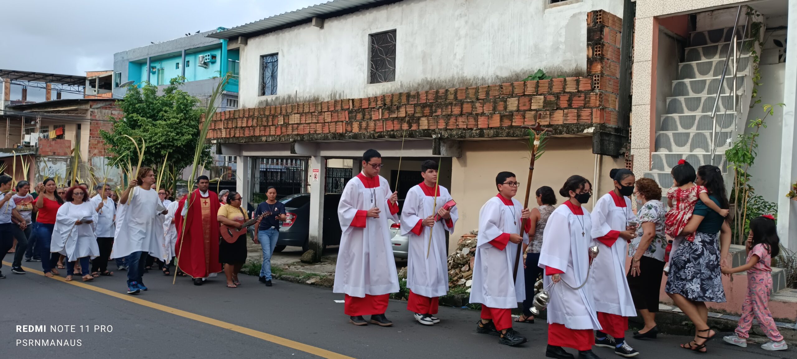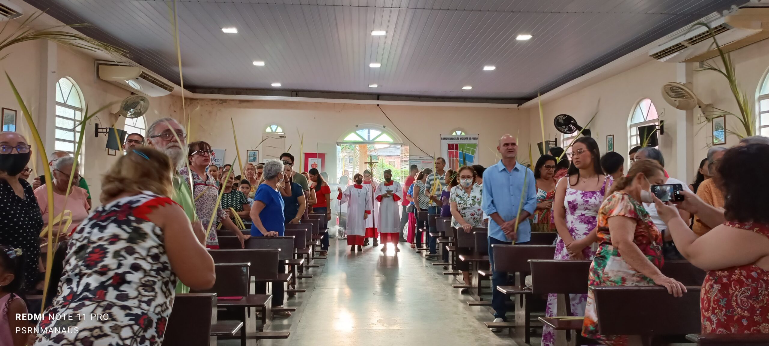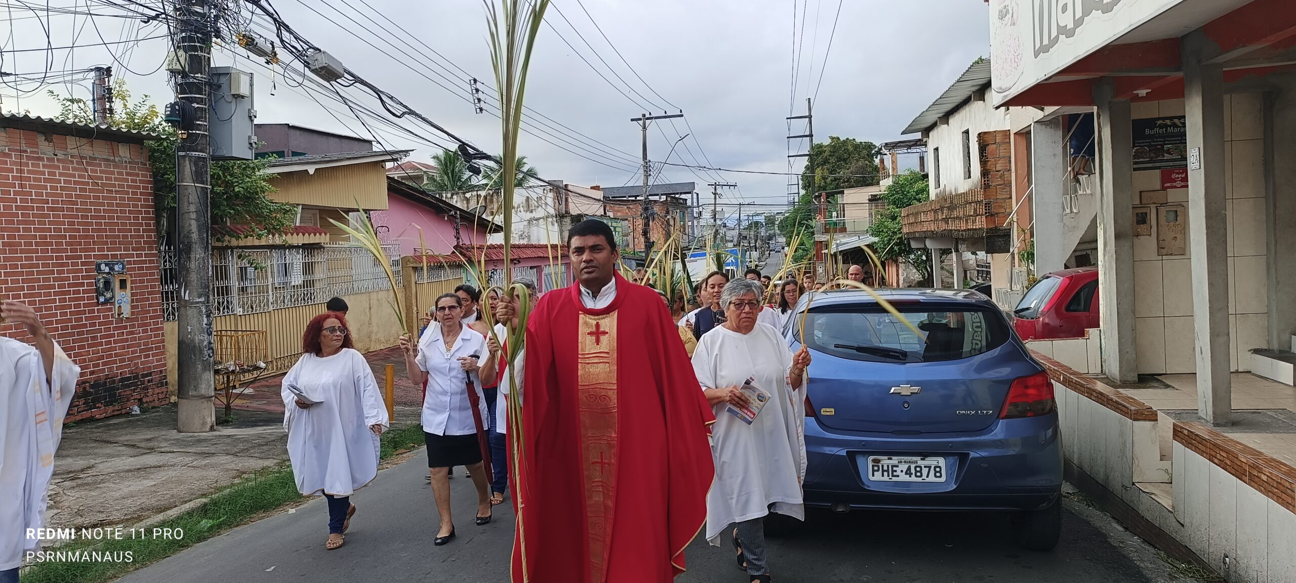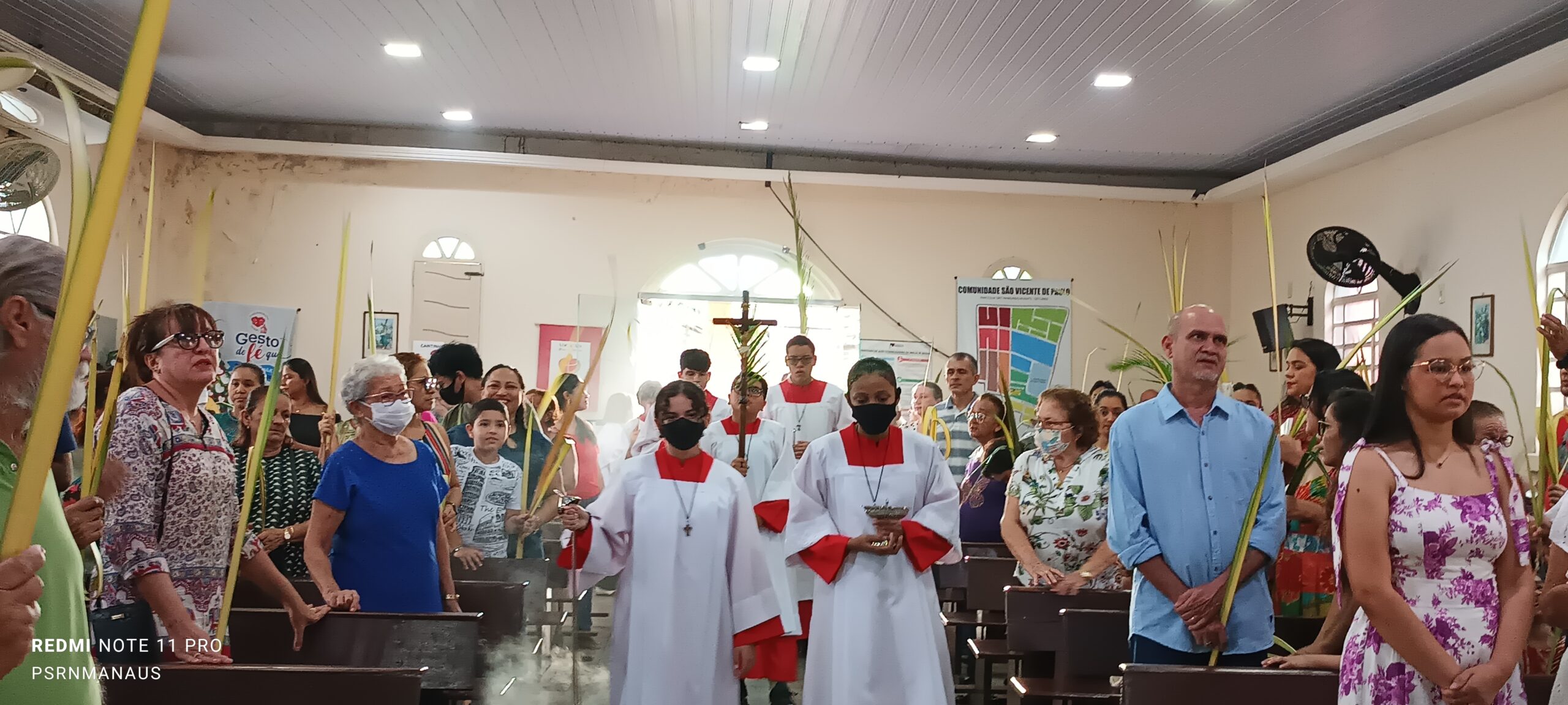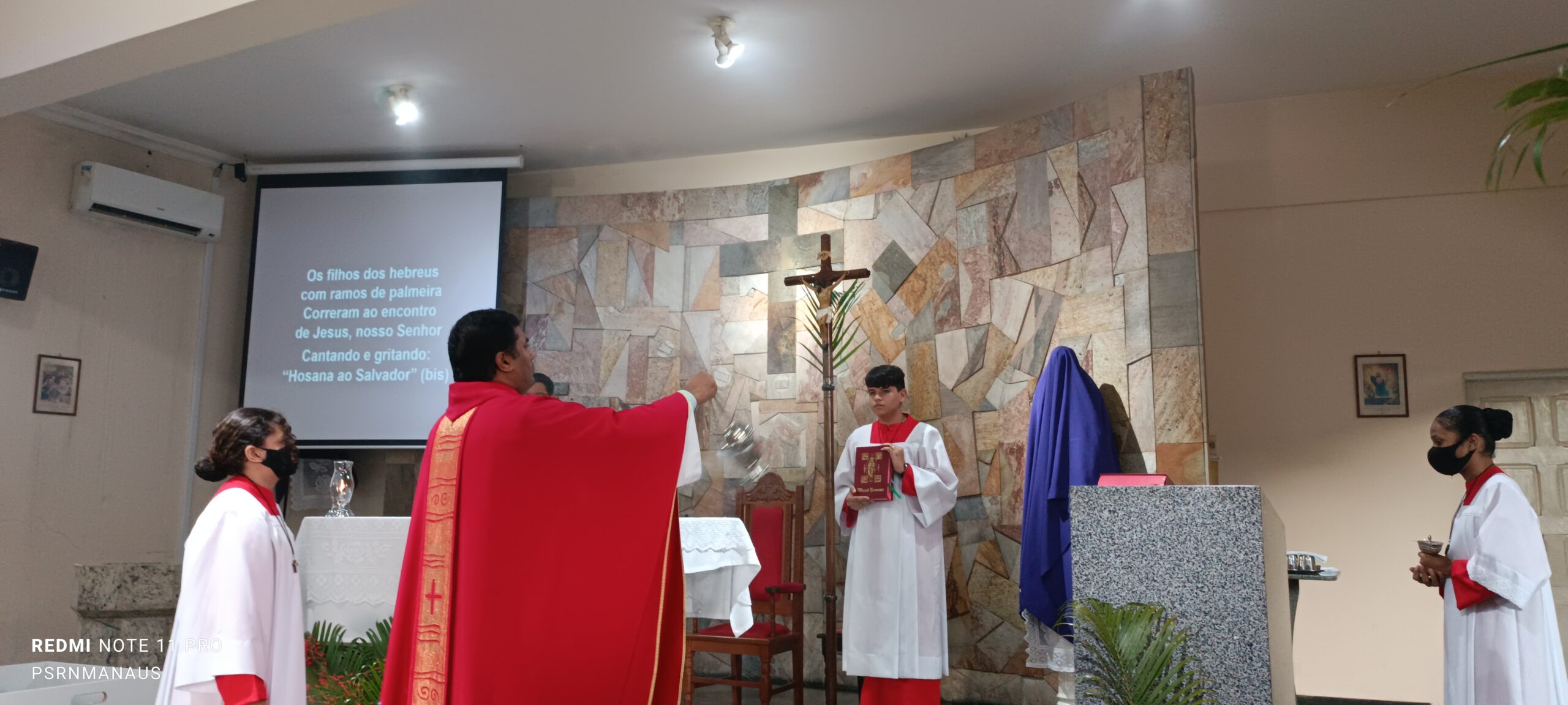 Neste Domingo de ramos (2), a paróquia São Raimundo Nonato deu o início a Semana Santa que se estende até o próximo domingo de páscoa. Com a celebração do Domingo da paixão do Senhor, recordamos a entrada triunfal de Jesus em Jerusalém entre palmas e ramos de oliveira. A liturgia dos ramos antecipa o triunfo da ressurreição. A Semana Santa é o momento central da liturgia católica e é a semana mais importante do ano litúrgico, quando se celebram de modo especial os mistérios da paixão, morte e ressurreição de Jesus Cristo.