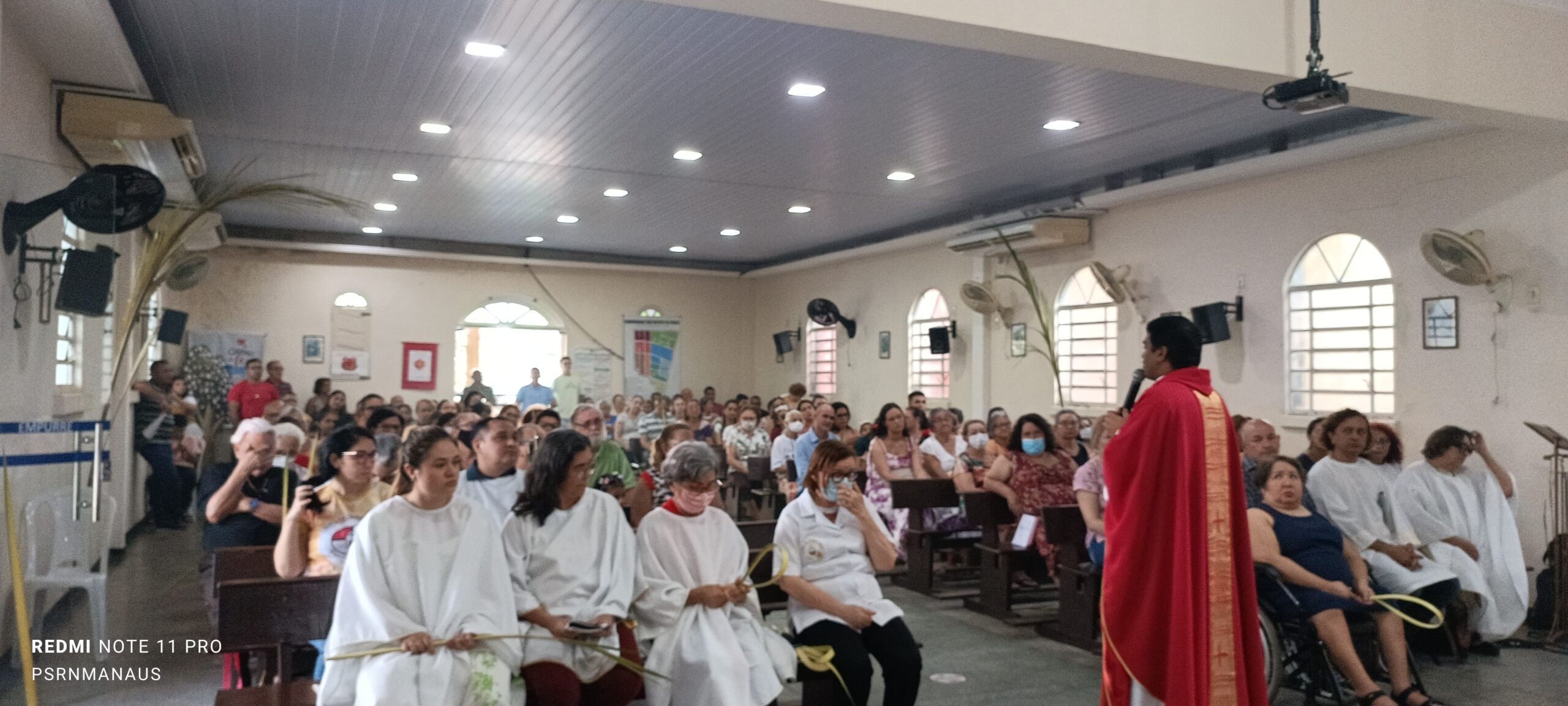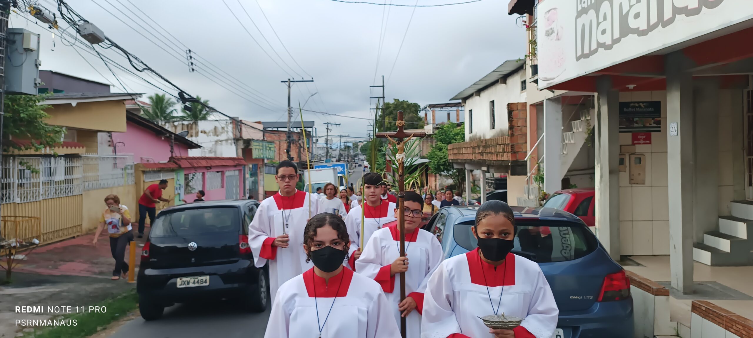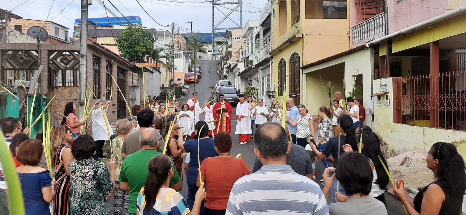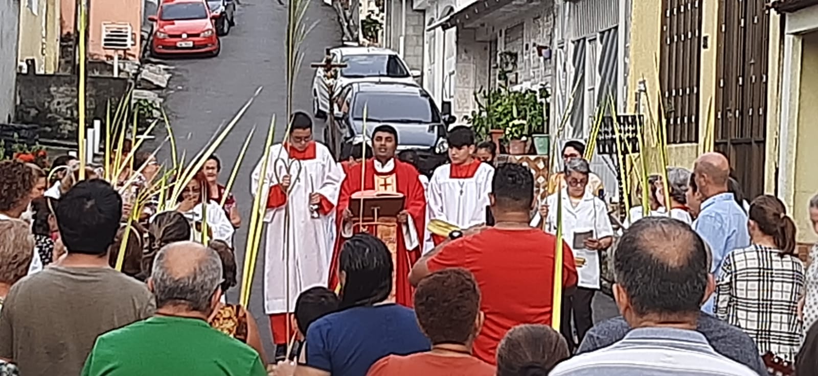 Neste Domingo de ramos (2), a paróquia São Raimundo Nonato deu o início a Semana Santa que se estende até o próximo domingo de páscoa. Com a celebração do Domingo da paixão do Senhor, recordamos a entrada triunfal de Jesus em Jerusalém entre palmas e ramos de oliveira. A liturgia dos ramos antecipa o triunfo da ressurreição. A Semana Santa é o momento central da liturgia católica e é a semana mais importante do ano litúrgico, quando se celebram de modo especial os mistérios da paixão, morte e ressurreição de Jesus Cristo.