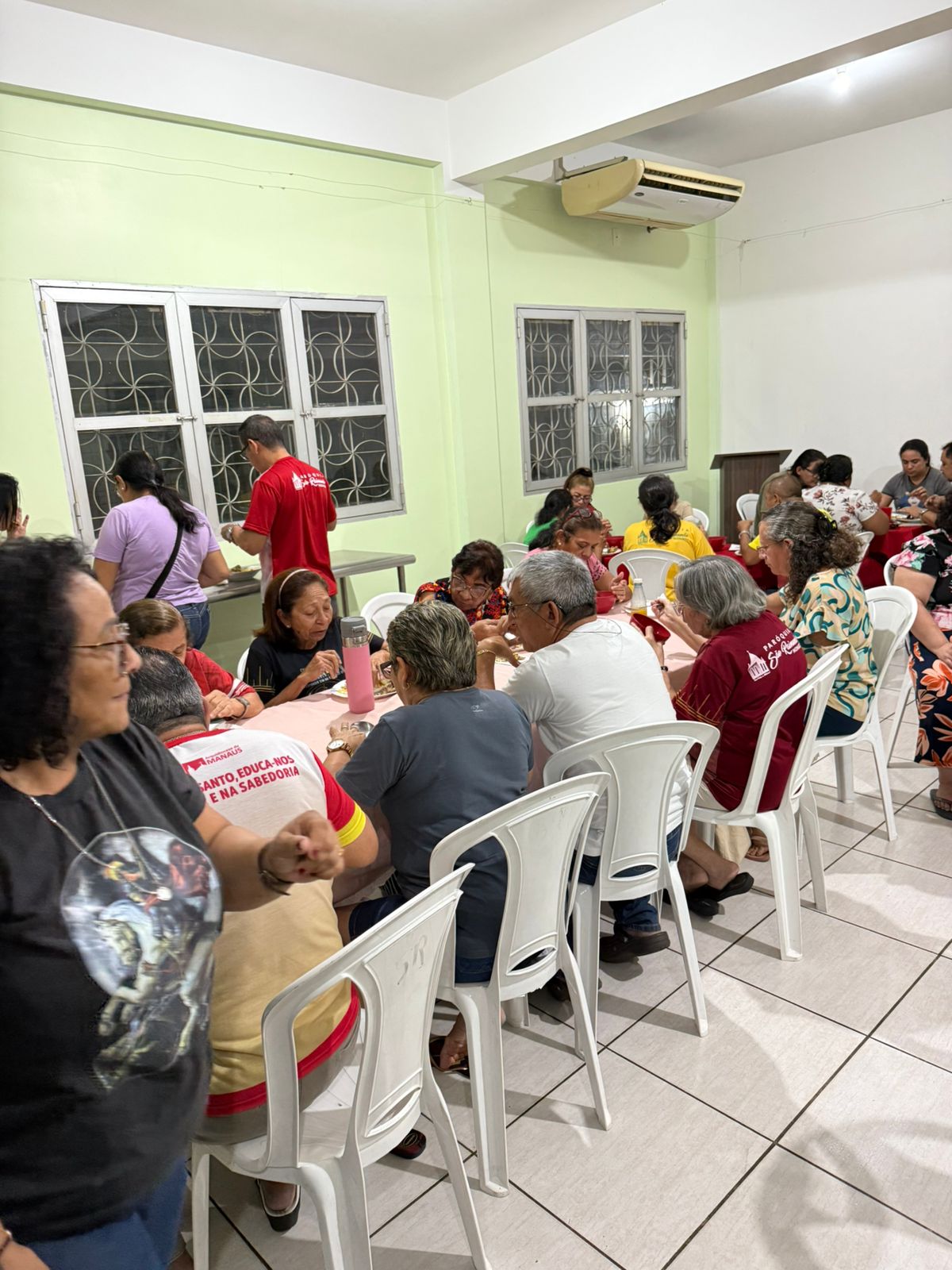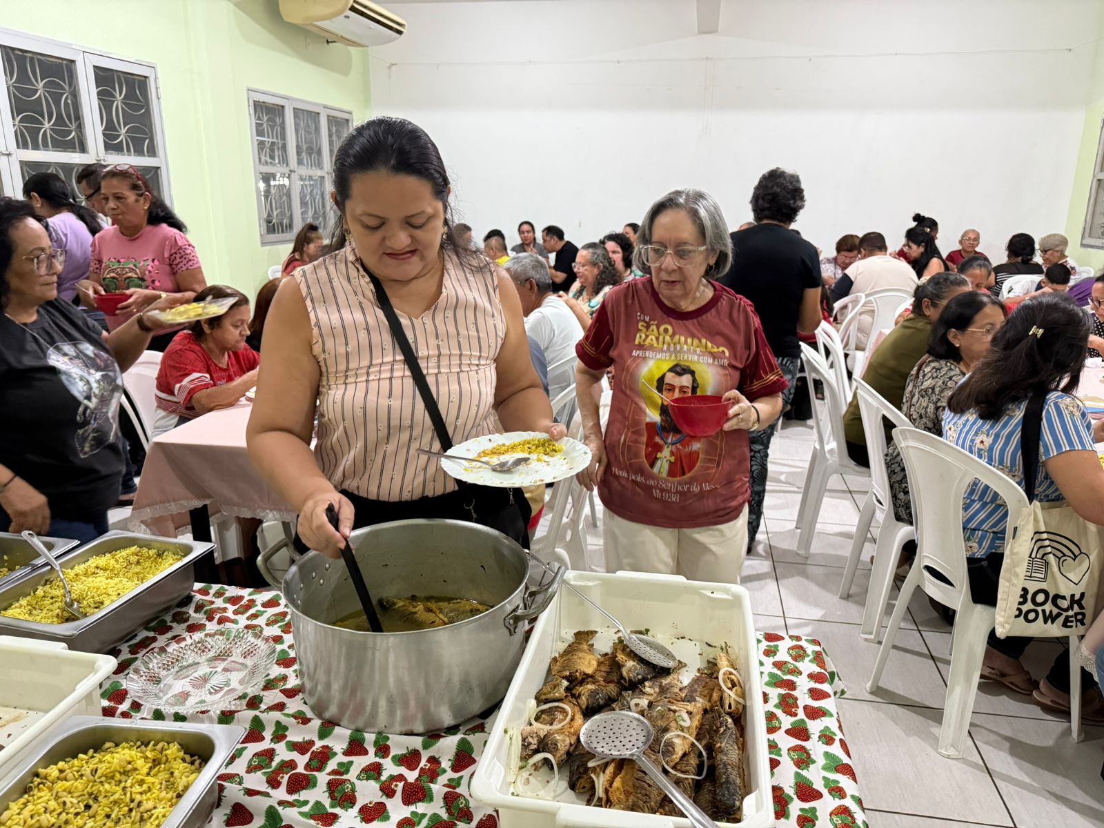 Por fim, fechando o encontro, Pe John Paul, com todo o seu carinho por seu rebanho, e um olhar privilegiado às “pessoas em situação de rua”, ofereceu lhes um jantar especial e bem regional: caldeirada de jaraqui e jaraqui frito acompanhado com baião, farinha, vinagrete e limão.