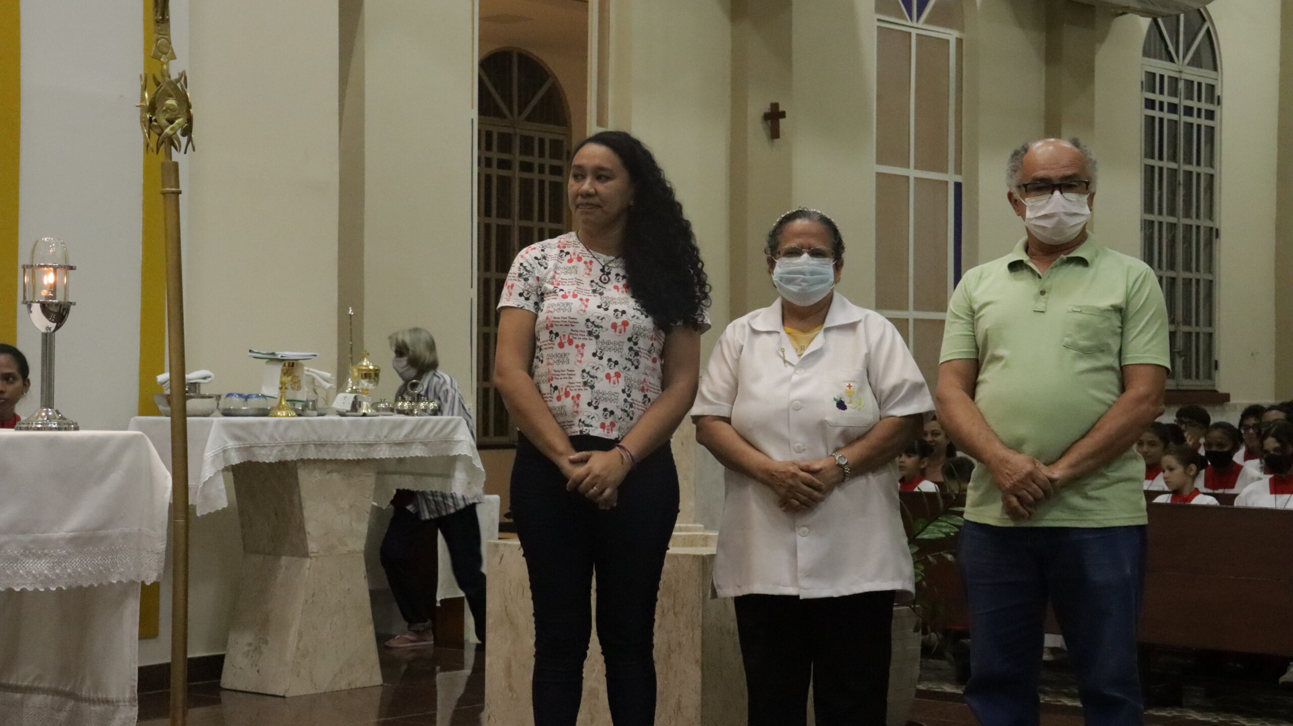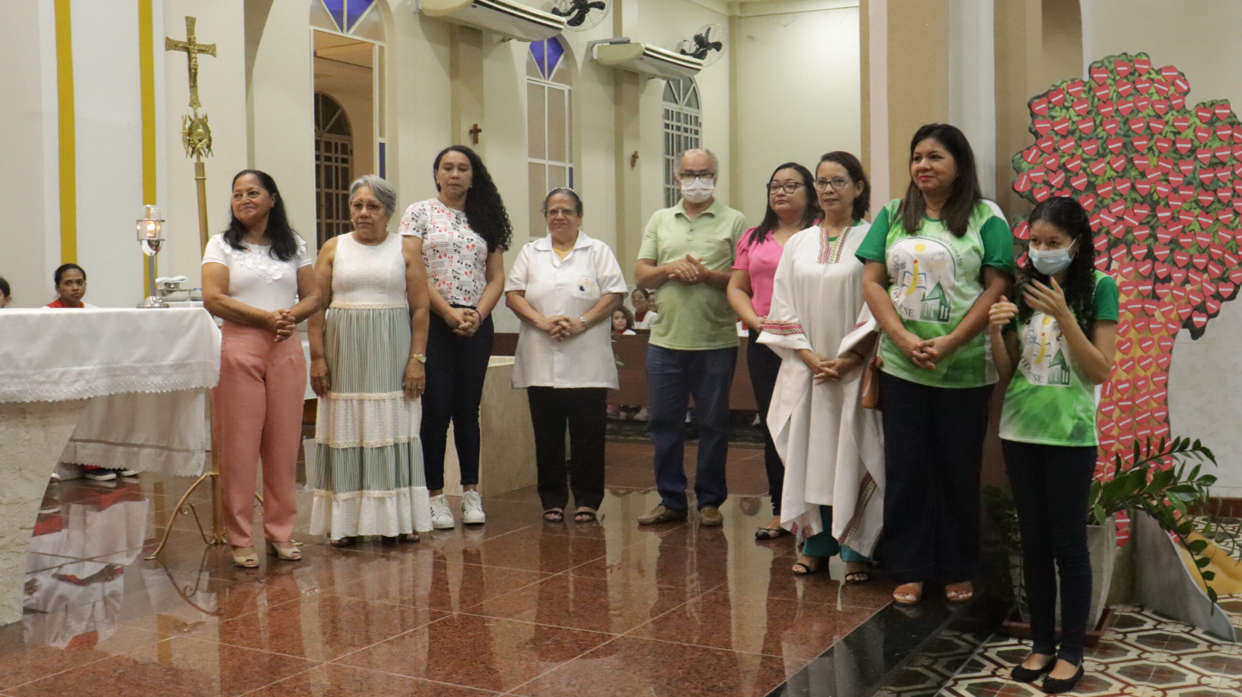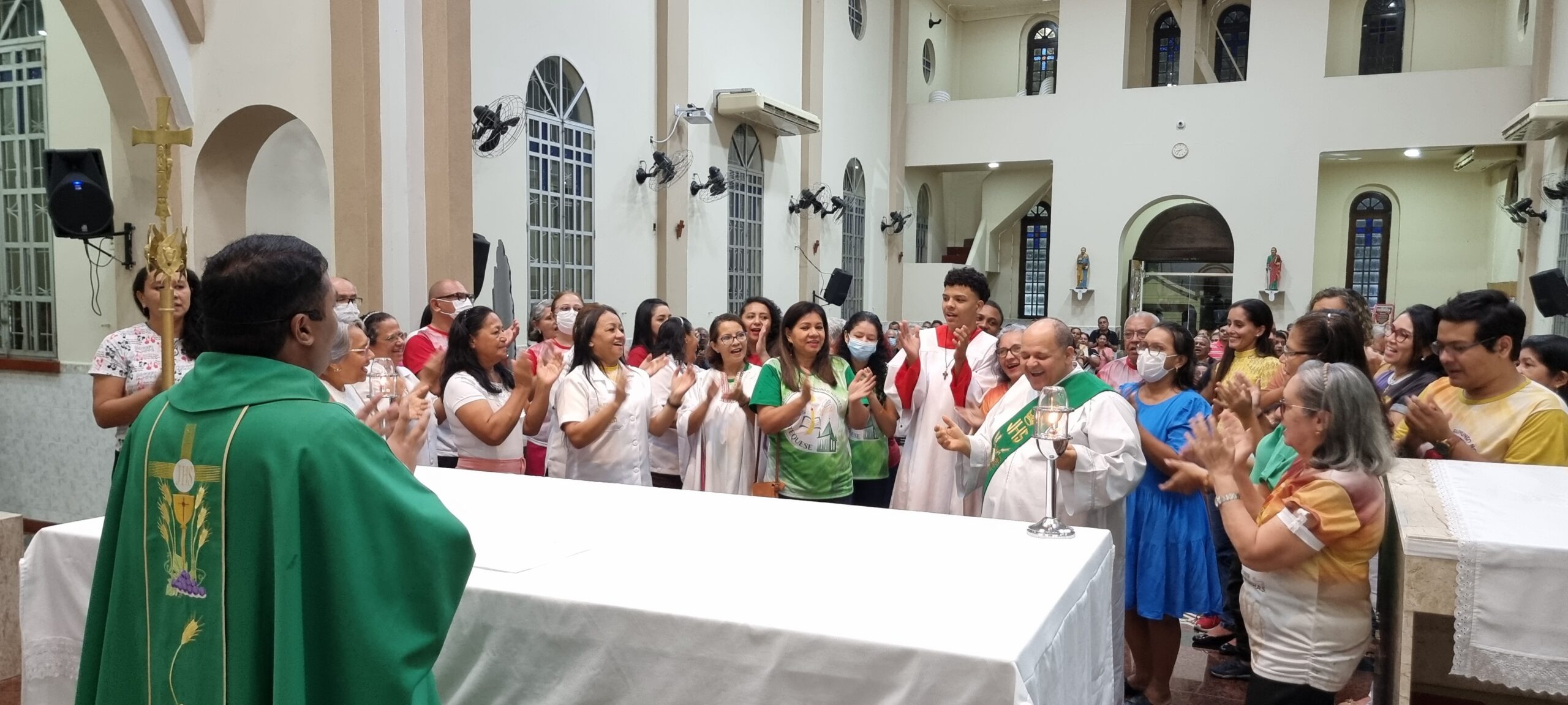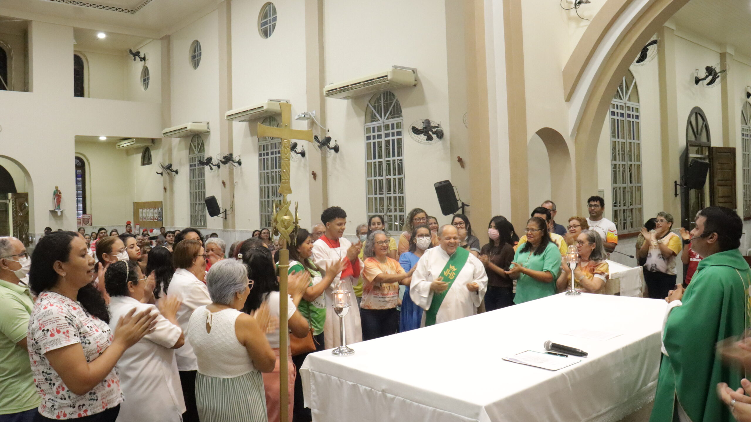 Ao final, Pe. John Paul convidou Edgar Netto, que esteve na coordenação paroquial até o ano passado, agradeceu pelo serviço realizado e apresentou a nova coordenadora Pastoral paroquial Maria Luiza Lahan Lamarão. Em seguida, apresentou Maria Dalva Pinto da Silva como tesoureira paroquial e Leimara Silva Ribeiro como secretária paroquial. Na sequência, a nova coordenadora pastoral paroquial anunciou toda coordenação pastoral e movimento paroquial.