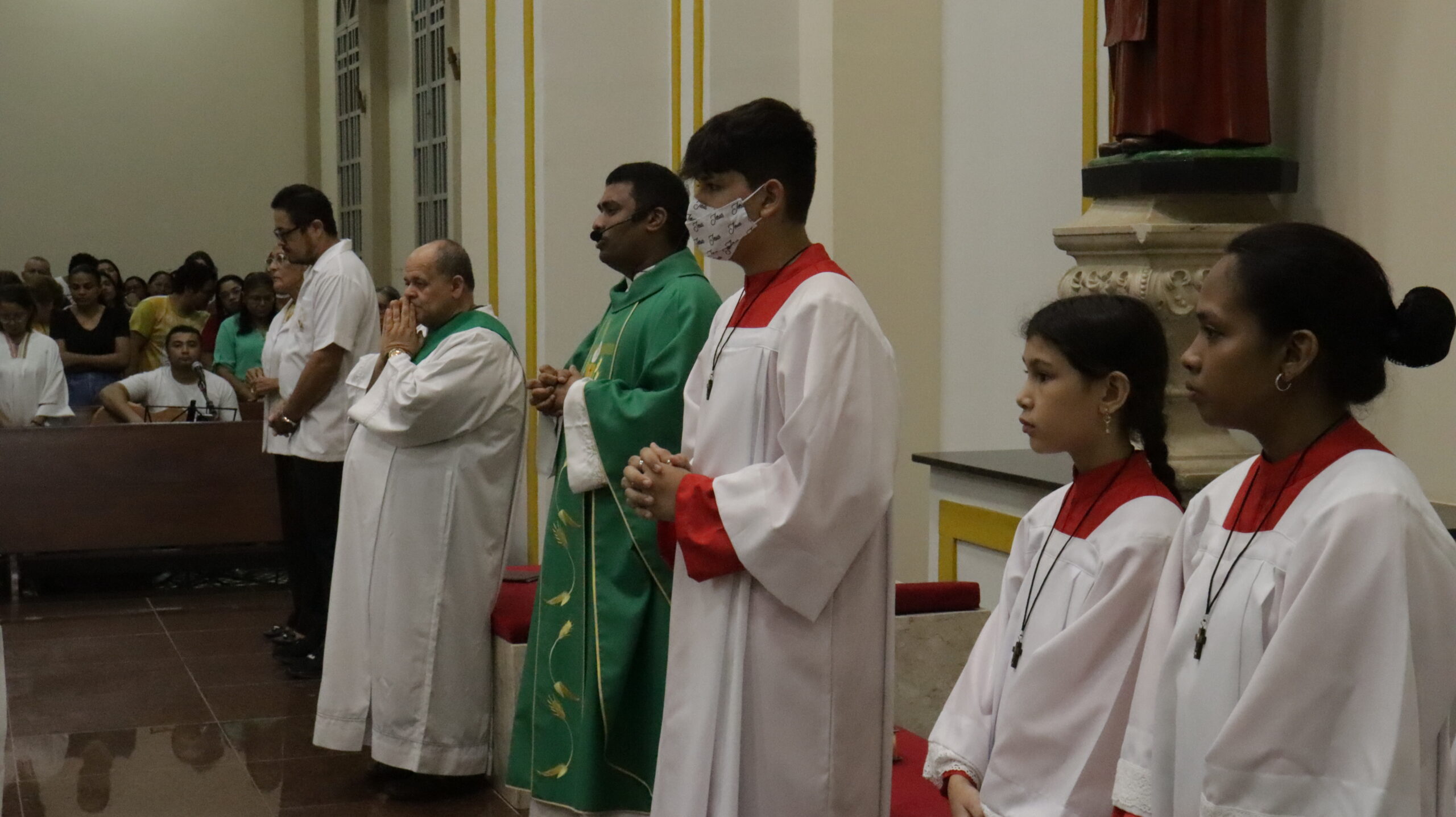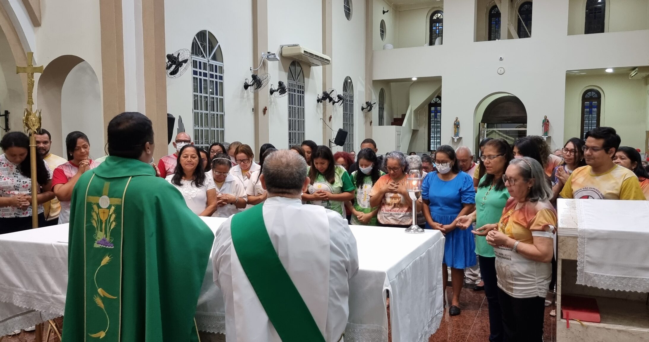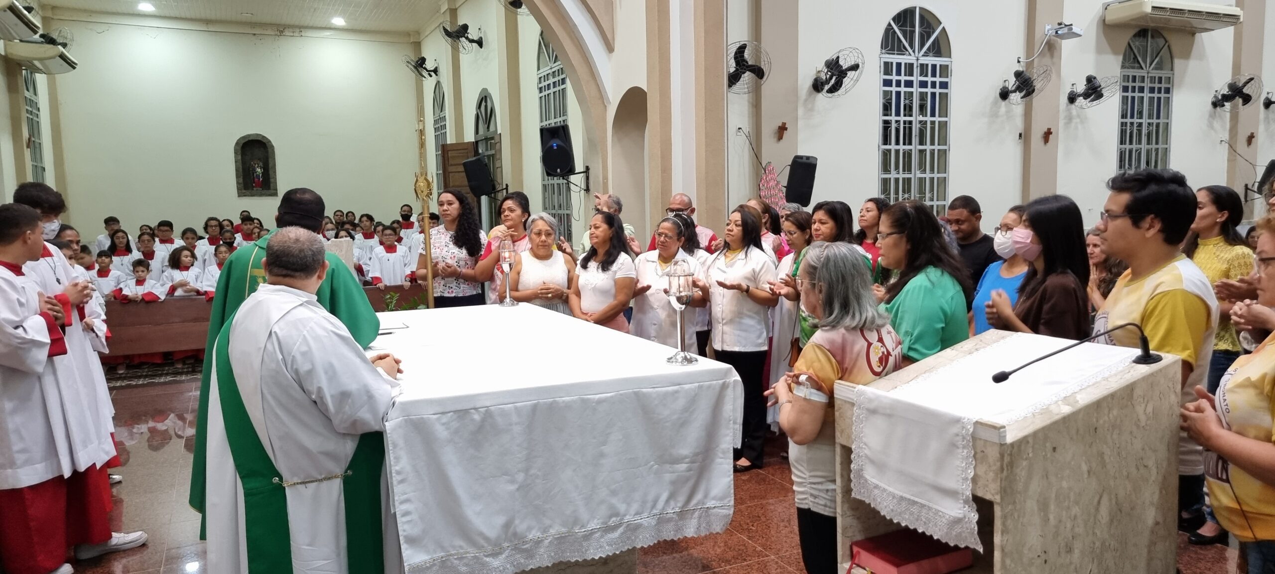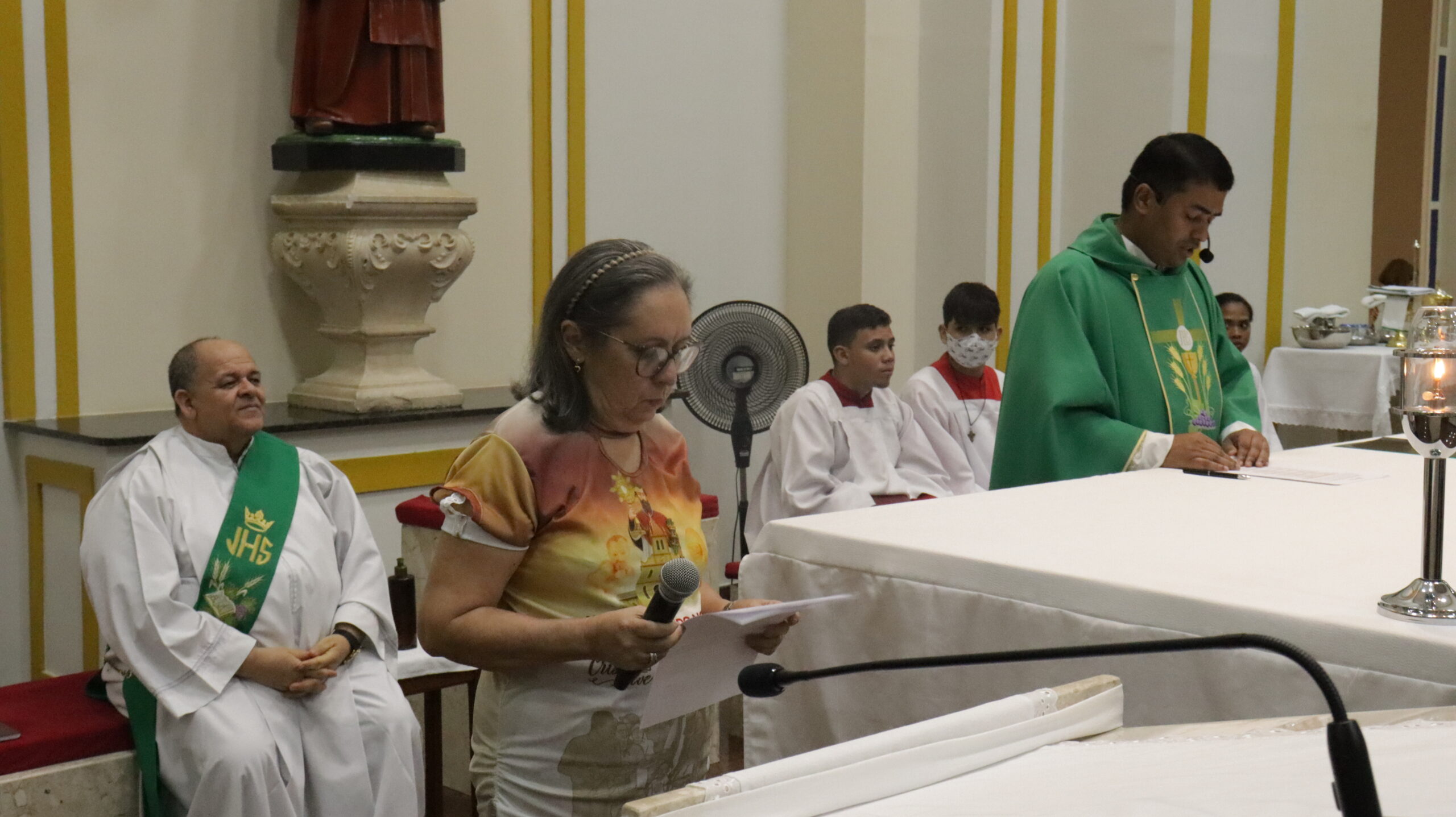 Ao final, Pe. John Paul convidou Edgar Netto, que esteve na coordenação paroquial até o ano passado, agradeceu pelo serviço realizado e apresentou a nova coordenadora Pastoral paroquial Maria Luiza Lahan Lamarão. Em seguida, apresentou Maria Dalva Pinto da Silva como tesoureira paroquial e Leimara Silva Ribeiro como secretária paroquial. Na sequência, a nova coordenadora pastoral paroquial anunciou toda coordenação pastoral e movimento paroquial.