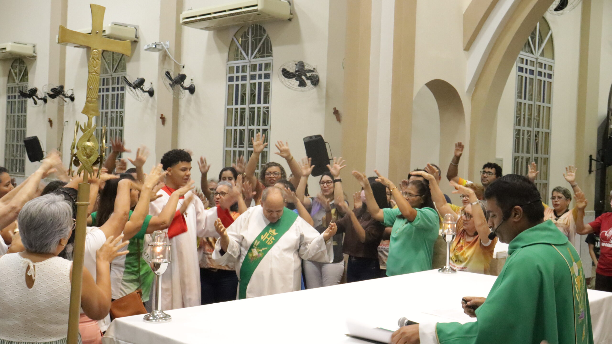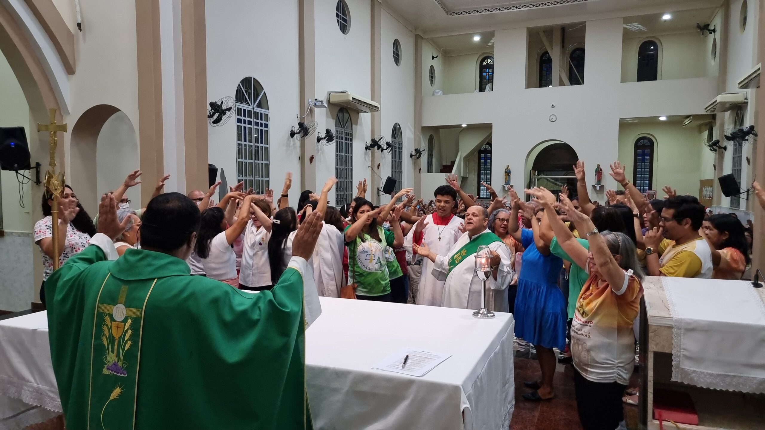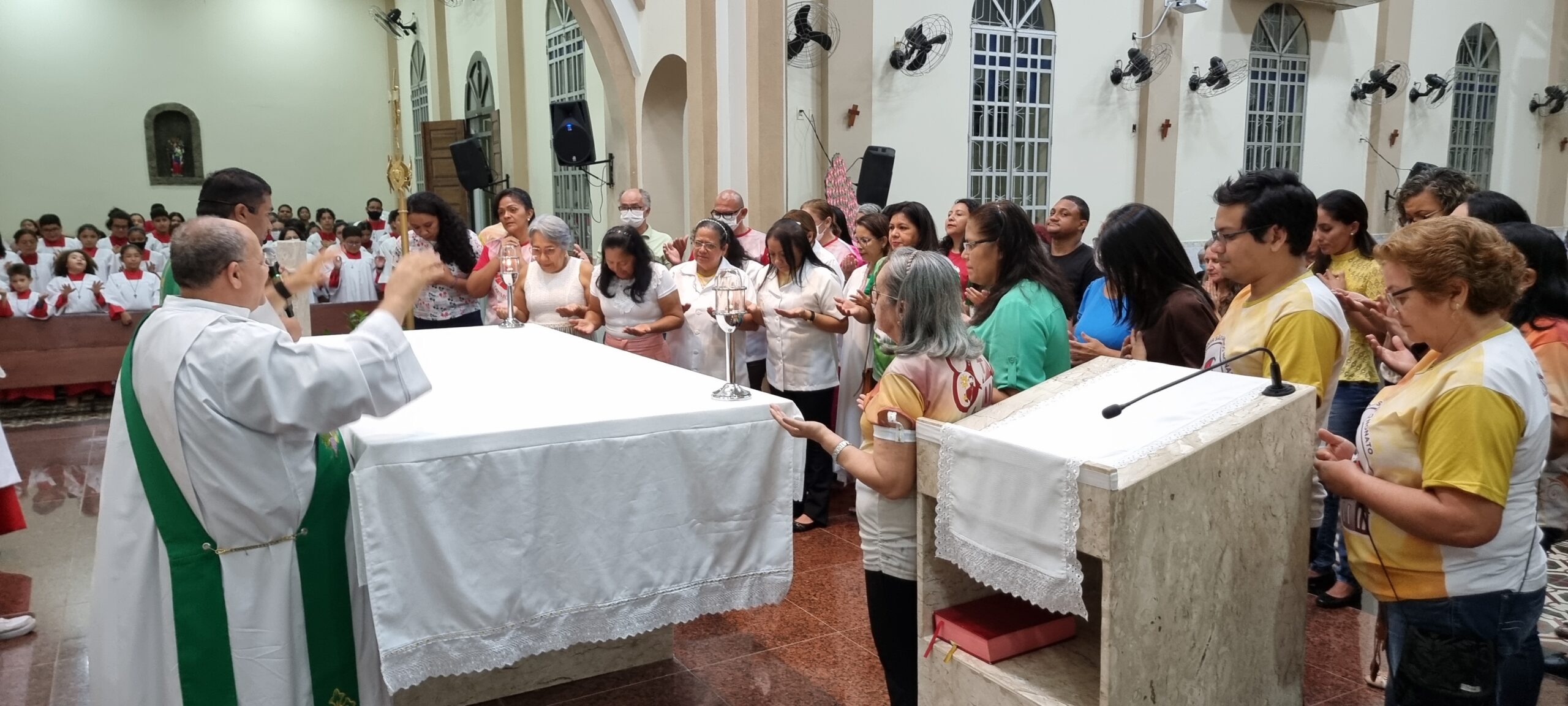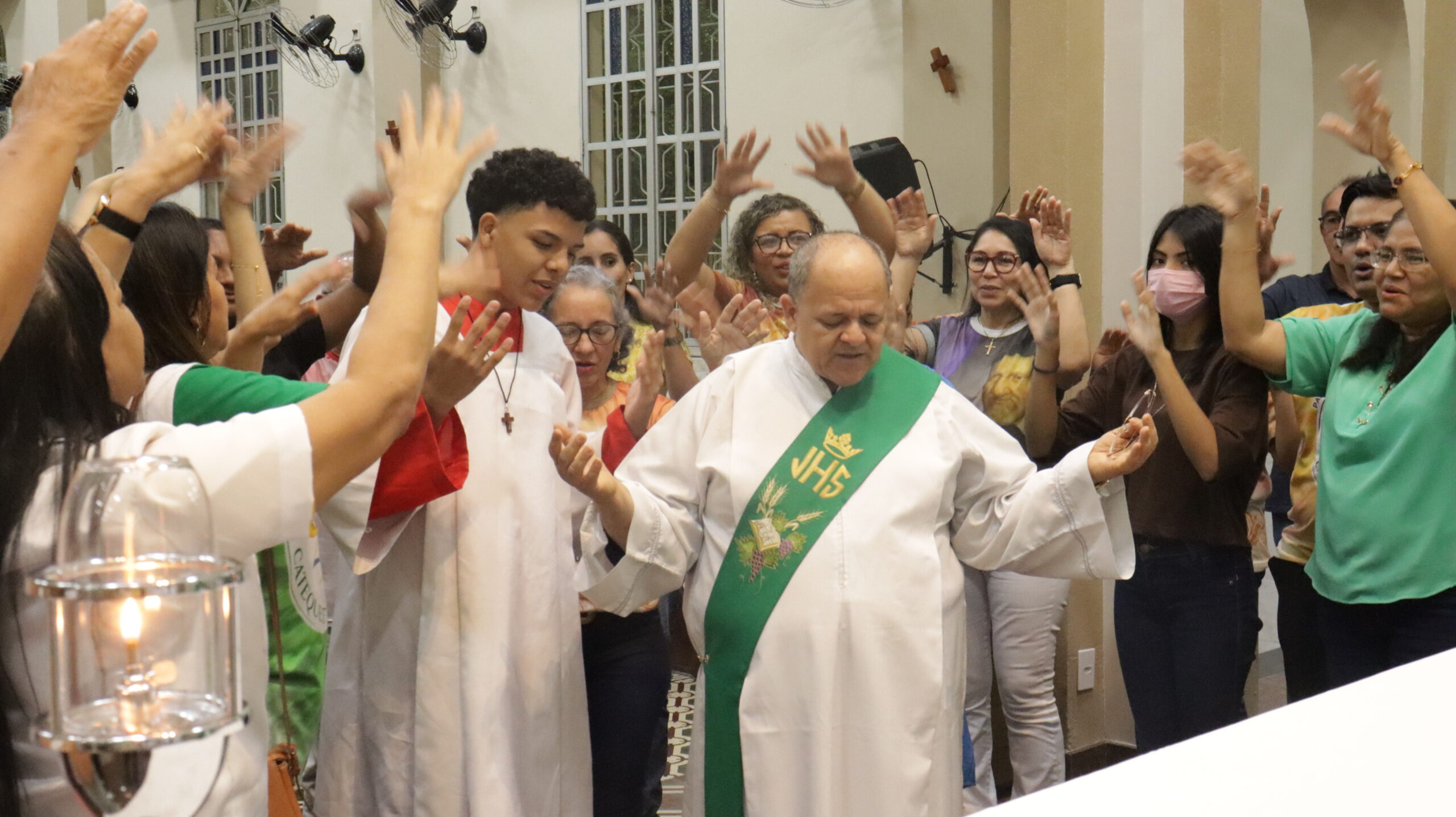 Ao final, Pe. John Paul convidou Edgar Netto, que esteve na coordenação paroquial até o ano passado, agradeceu pelo serviço realizado e apresentou a nova coordenadora Pastoral paroquial Maria Luiza Lahan Lamarão. Em seguida, apresentou Maria Dalva Pinto da Silva como tesoureira paroquial e Leimara Silva Ribeiro como secretária paroquial. Na sequência, a nova coordenadora pastoral paroquial anunciou toda coordenação pastoral e movimento paroquial.