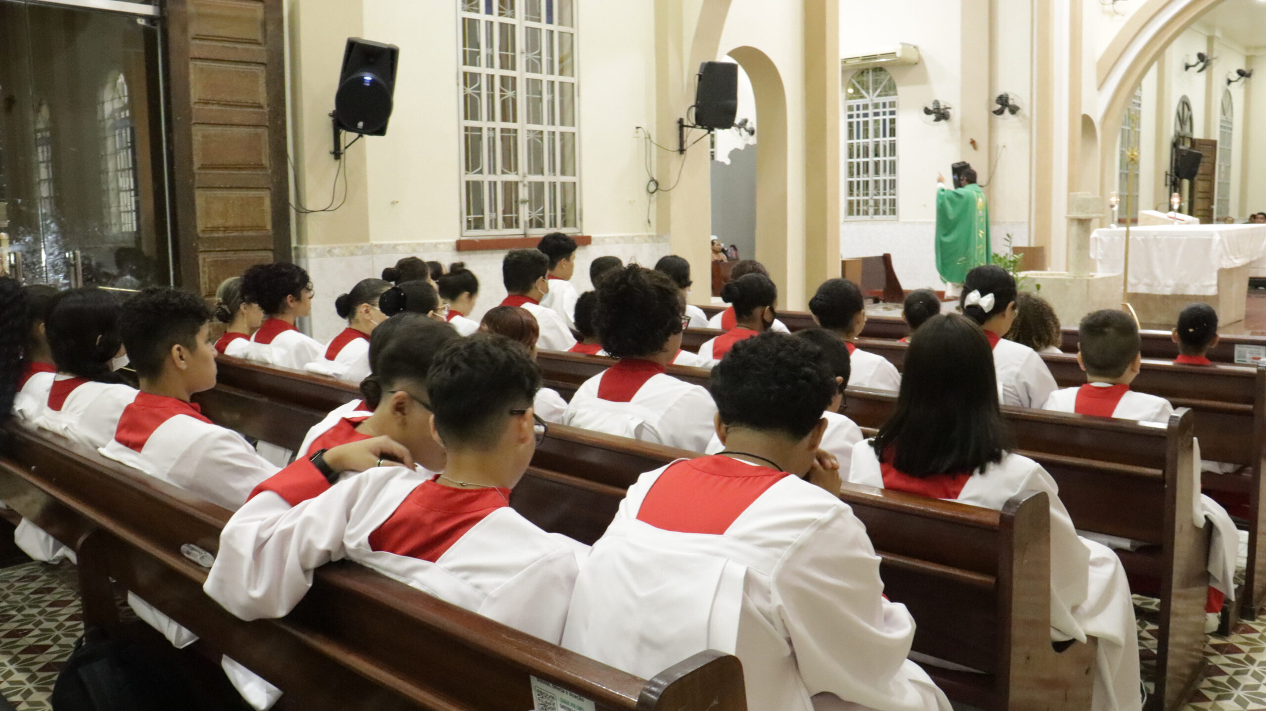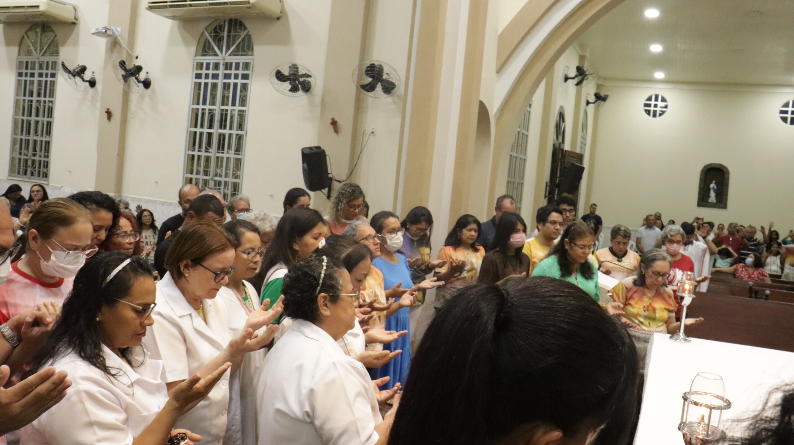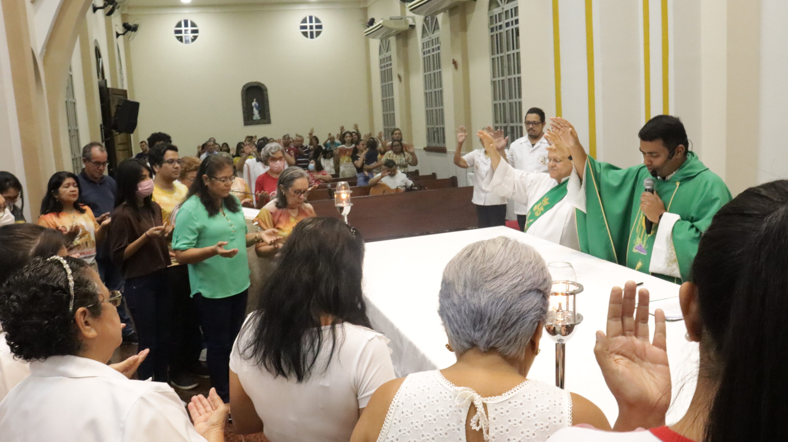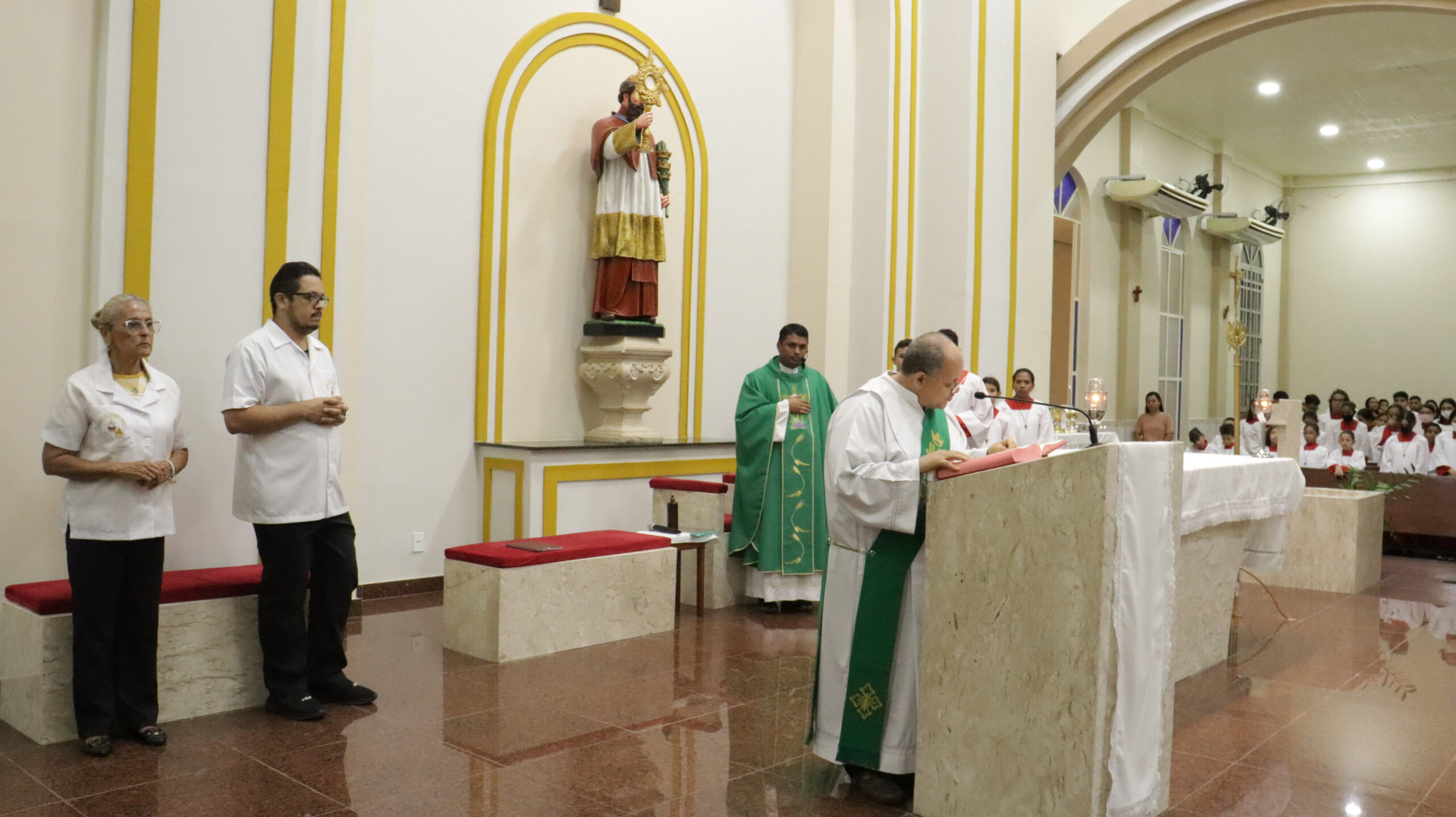 Ao final, Pe. John Paul convidou Edgar Netto, que esteve na coordenação paroquial até o ano passado, agradeceu pelo serviço realizado e apresentou a nova coordenadora Pastoral paroquial Maria Luiza Lahan Lamarão. Em seguida, apresentou Maria Dalva Pinto da Silva como tesoureira paroquial e Leimara Silva Ribeiro como secretária paroquial. Na sequência, a nova coordenadora pastoral paroquial anunciou toda coordenação pastoral e movimento paroquial.