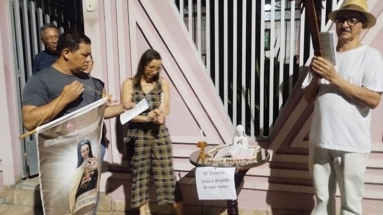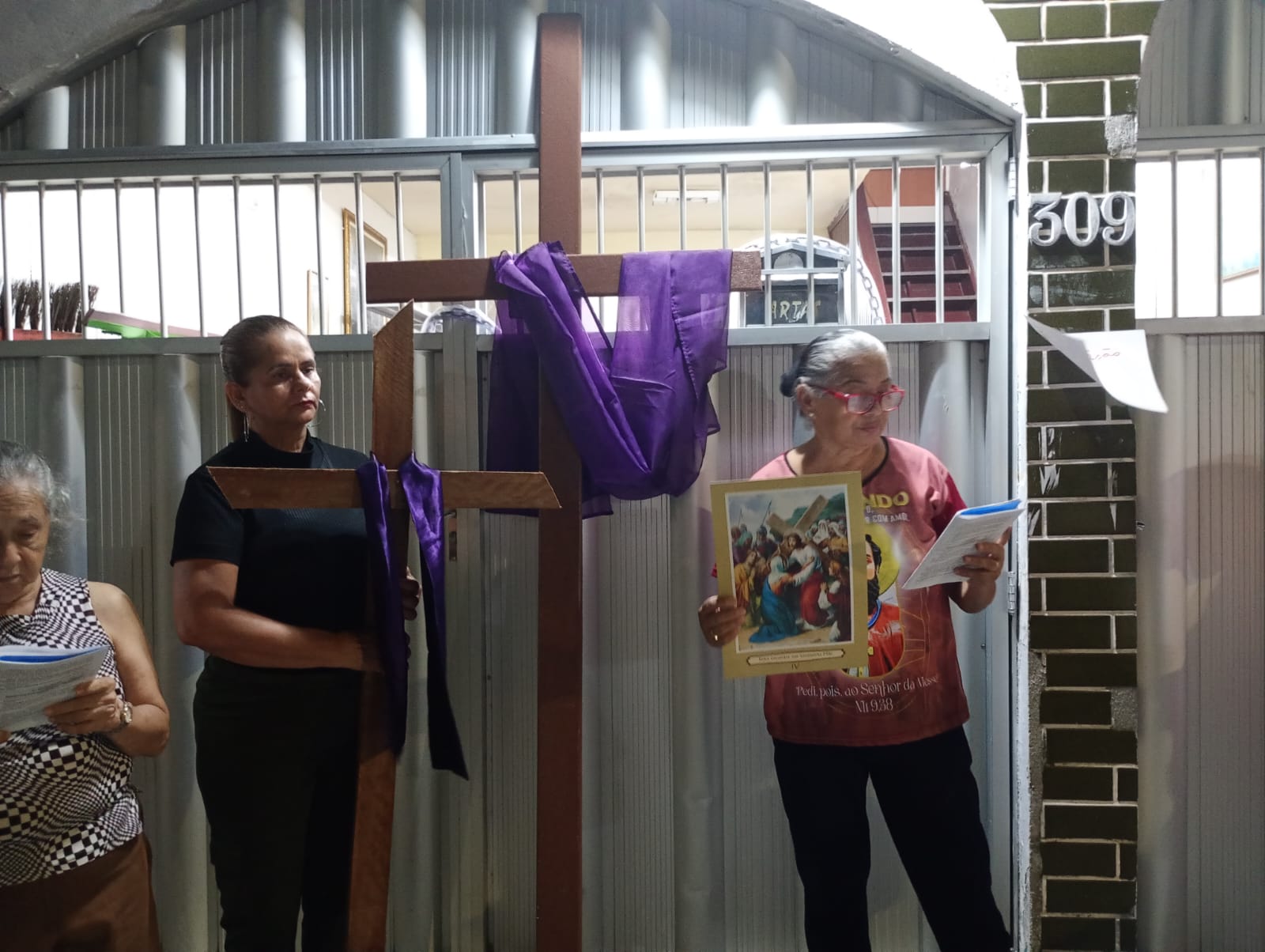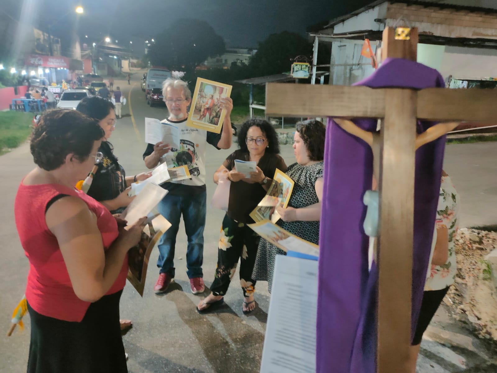 As vias-sacras realizadas na sexta-feira, 21 de março, aconteceram em cada uma das Comunidades Paroquiais: São Raimundo Nonato, São Vicente de Paulo e Beata Maria Assunta. Muitas famílias das Pequenas Comunidades Missionárias (PCMs) participaram ativamente. A Catequese preparou as cenas de cada estação, valorizando esse momento de profunda espiritualidade.