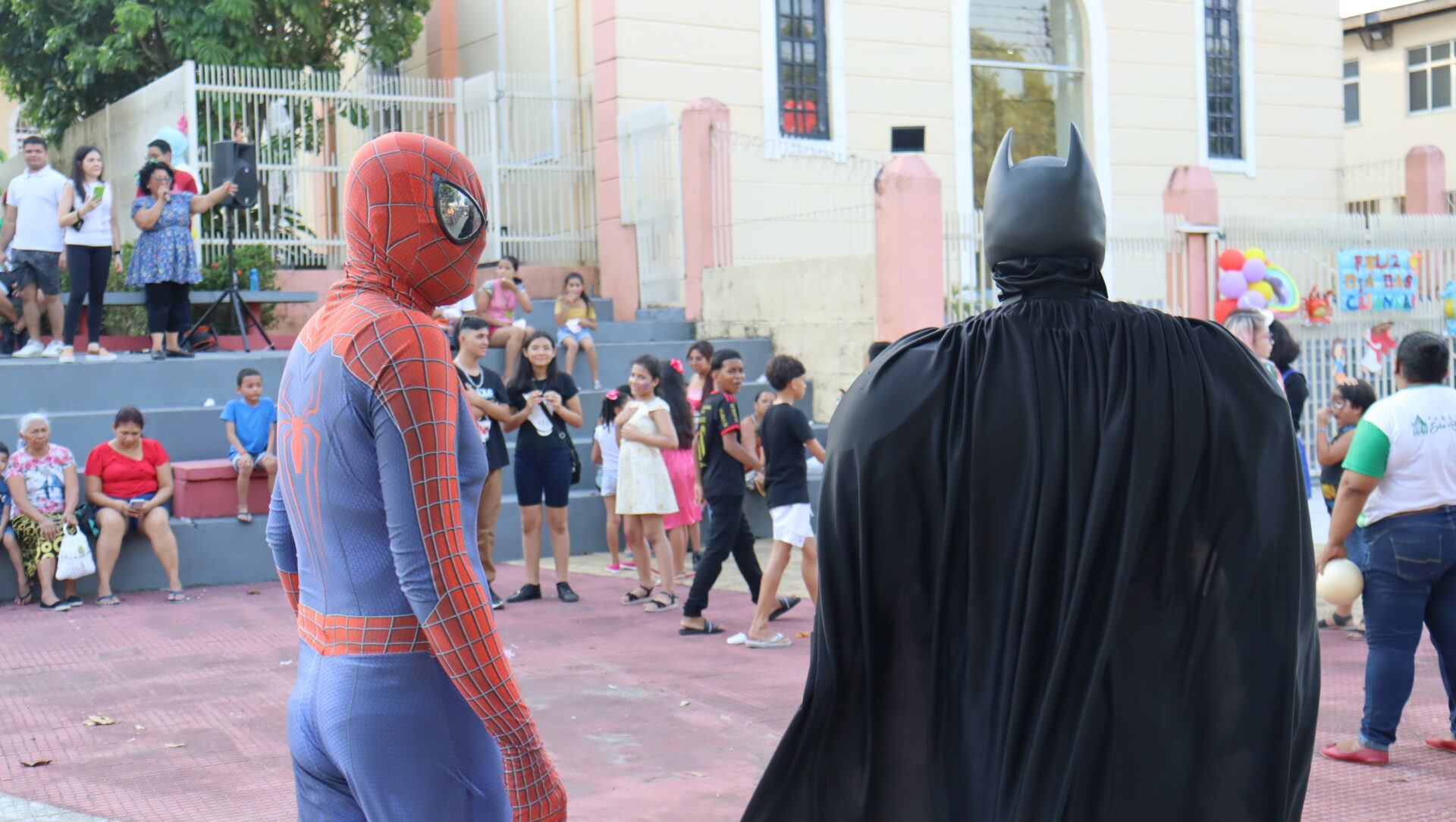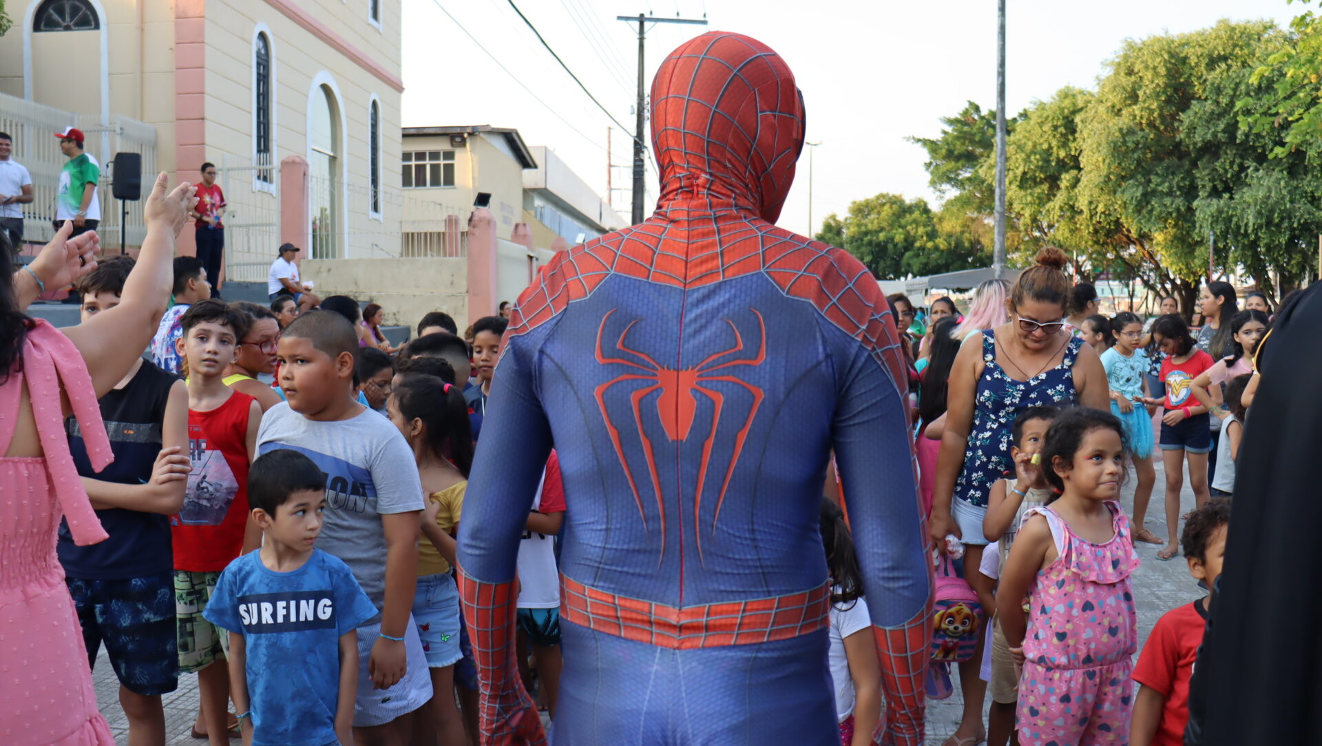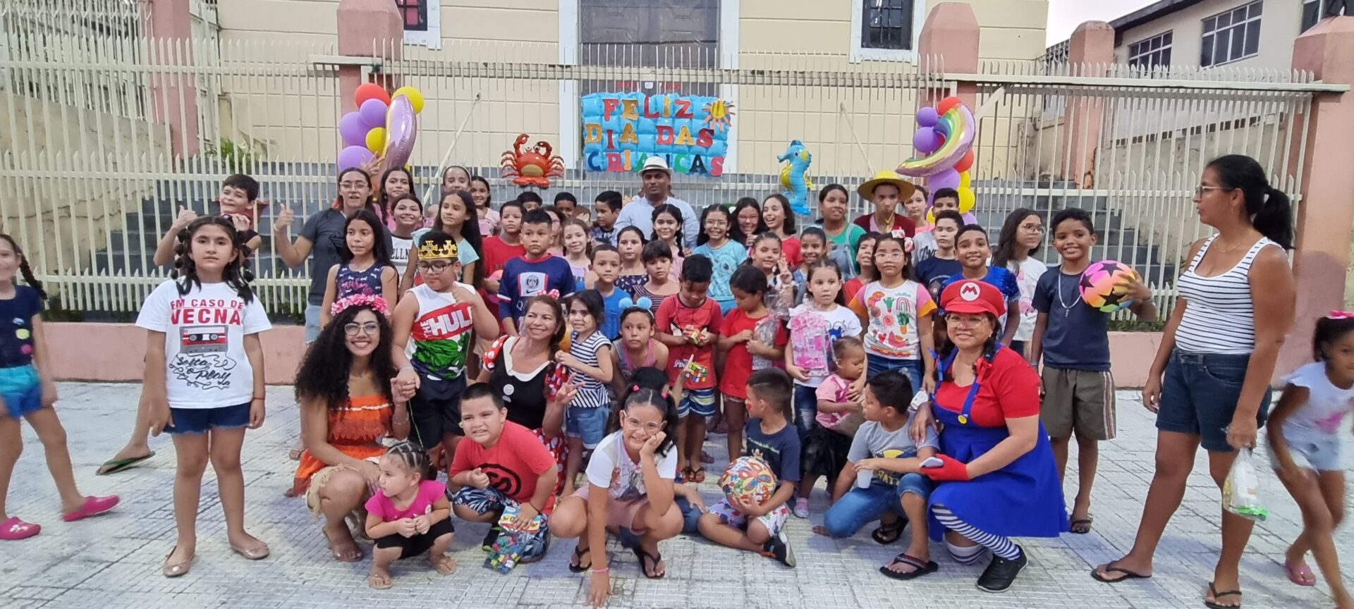 Foi uma festa grandiosa! Muitas crianças, de todas as idades e até os jovens participaram. As crianças estavam acompanhadas do papai, mamãe, vovó, vovô….. Enfim, a família foi junto. Muita alegria no rosto de todas elas! As brincadeiras, músicas, personagens em quadrinho representados por alguns colaboradores anônimos. Gratidão a todos os que colaboraram em espécie, doações de brinquedos, doces e lanche! Difícil mensurar e identificar as pessoas generosas que contribuíram para o sucesso deste evento, que envolveu não somente crianças da catequese, mas do nosso bairro e até de bairros adjacentes. À todas as pastorais e comunidades que gastaram seu tempo para organizar e realizar a festa. Parabéns à Cáritas e Catequese Paroquial que pensaram e planejaram, articularam as outras pastorais. Gratidão a Deus pelo seu grande amor, que nos fortalece na missão! São Raimundo Nonato, protegei todas as nossas famílias! Nossa Senhora Aparecida, rogai por nós!