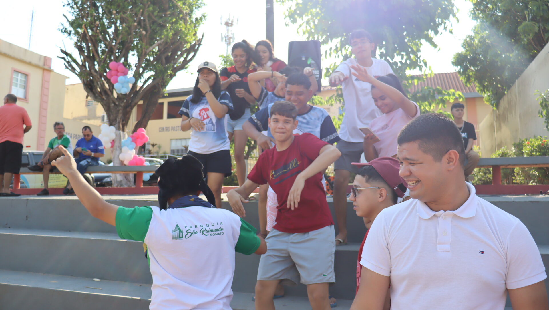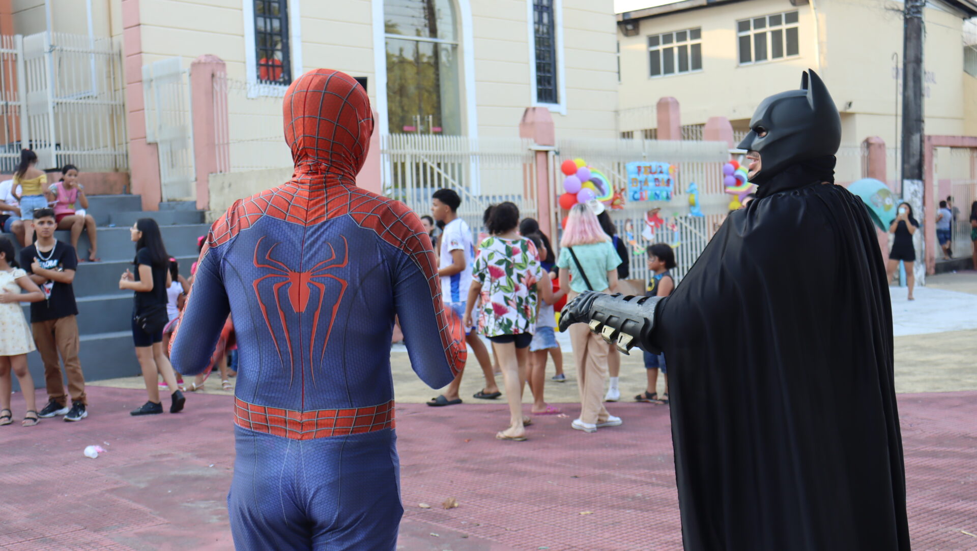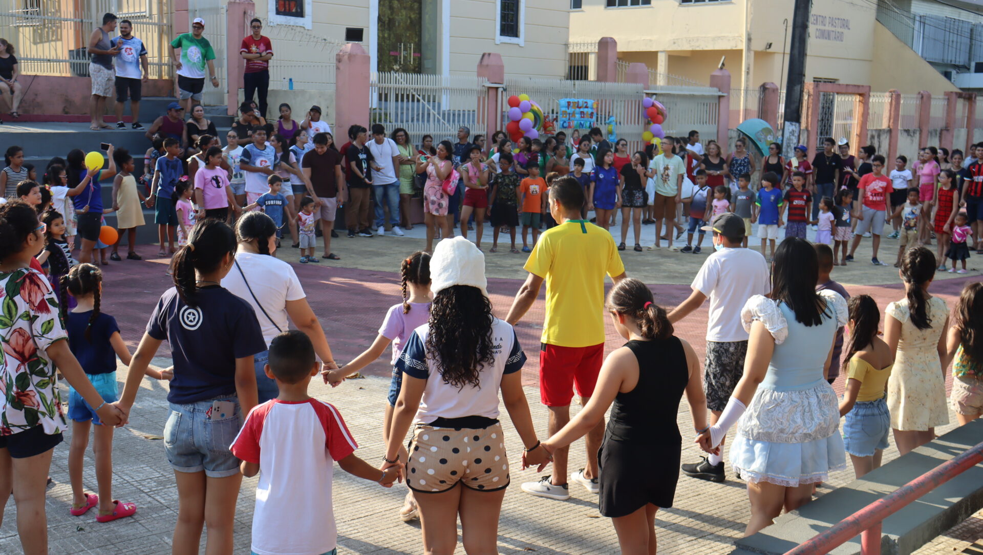 Foi uma festa grandiosa! Muitas crianças, de todas as idades e até os jovens participaram. As crianças estavam acompanhadas do papai, mamãe, vovó, vovô….. Enfim, a família foi junto. Muita alegria no rosto de todas elas! As brincadeiras, músicas, personagens em quadrinho representados por alguns colaboradores anônimos. Gratidão a todos os que colaboraram em espécie, doações de brinquedos, doces e lanche! Difícil mensurar e identificar as pessoas generosas que contribuíram para o sucesso deste evento, que envolveu não somente crianças da catequese, mas do nosso bairro e até de bairros adjacentes. À todas as pastorais e comunidades que gastaram seu tempo para organizar e realizar a festa. Parabéns à Cáritas e Catequese Paroquial que pensaram e planejaram, articularam as outras pastorais. Gratidão a Deus pelo seu grande amor, que nos fortalece na missão! São Raimundo Nonato, protegei todas as nossas famílias! Nossa Senhora Aparecida, rogai por nós!