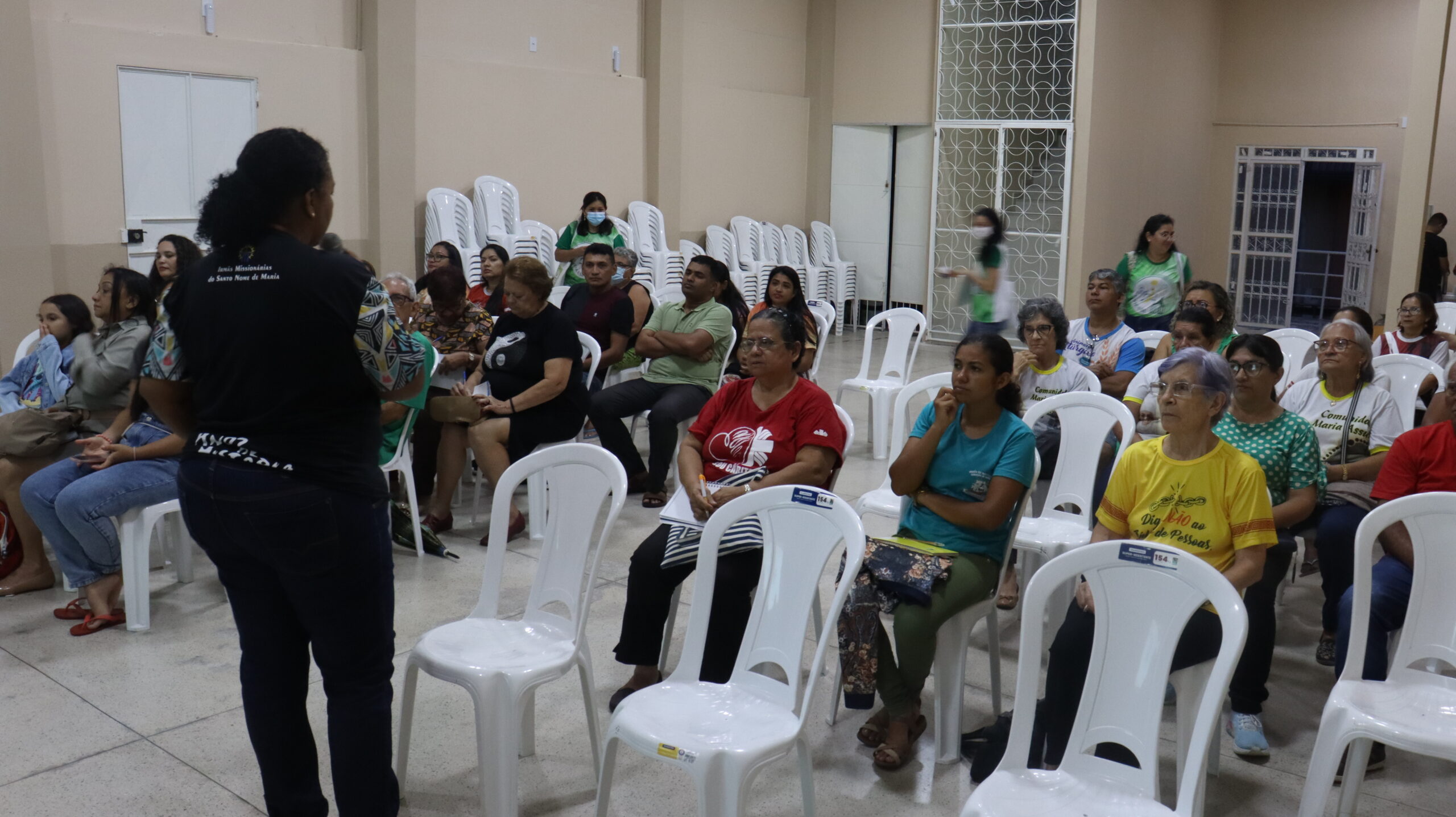 Seguindo com a nossa escola de formação, no dia 25/02, a partir das 18 horas, no Centro Social Paroquial, a Irmã Maria Couto nos ajudou a entender sobre o cuidado com a saúde mental. Estiveram presentes 40 pessoas na formação, entre agentes de pastorais e comunitários.