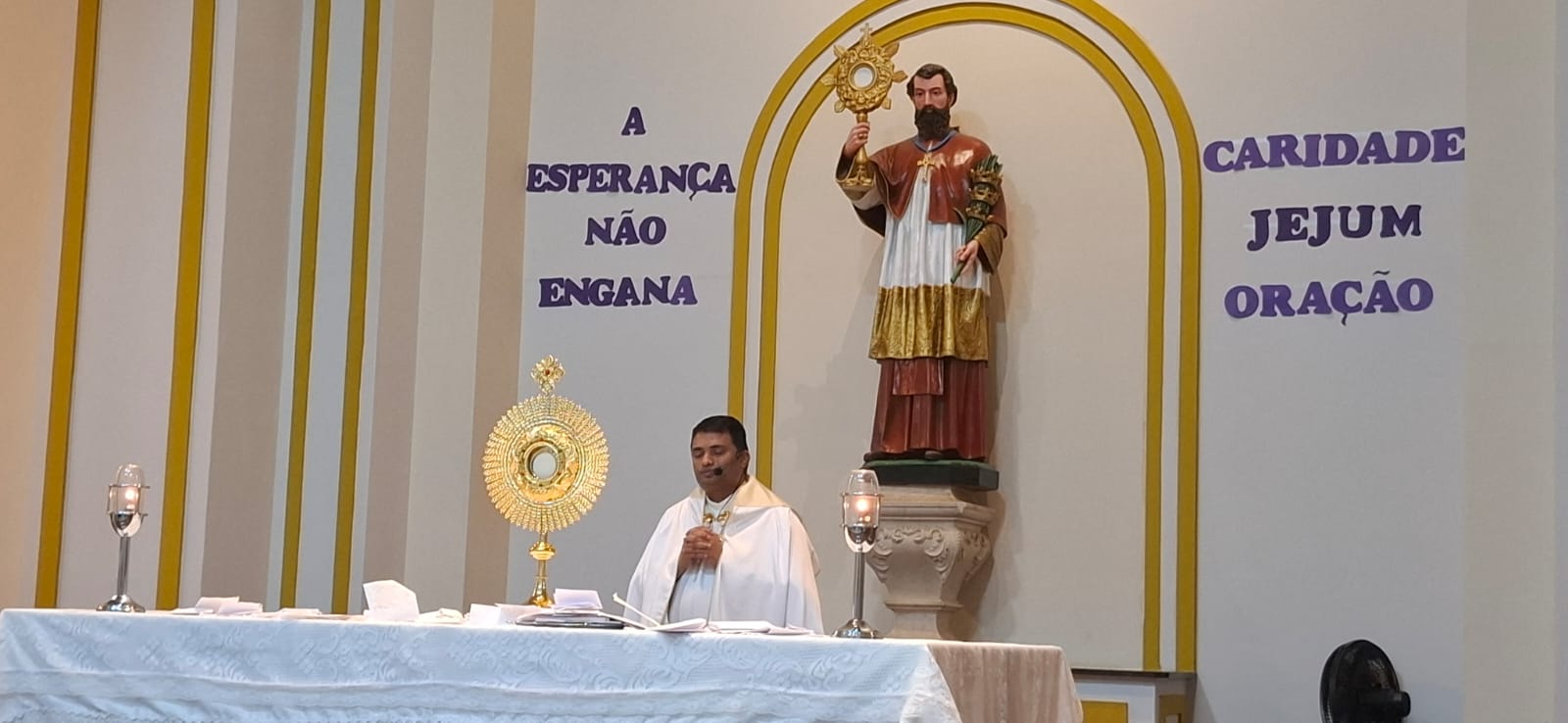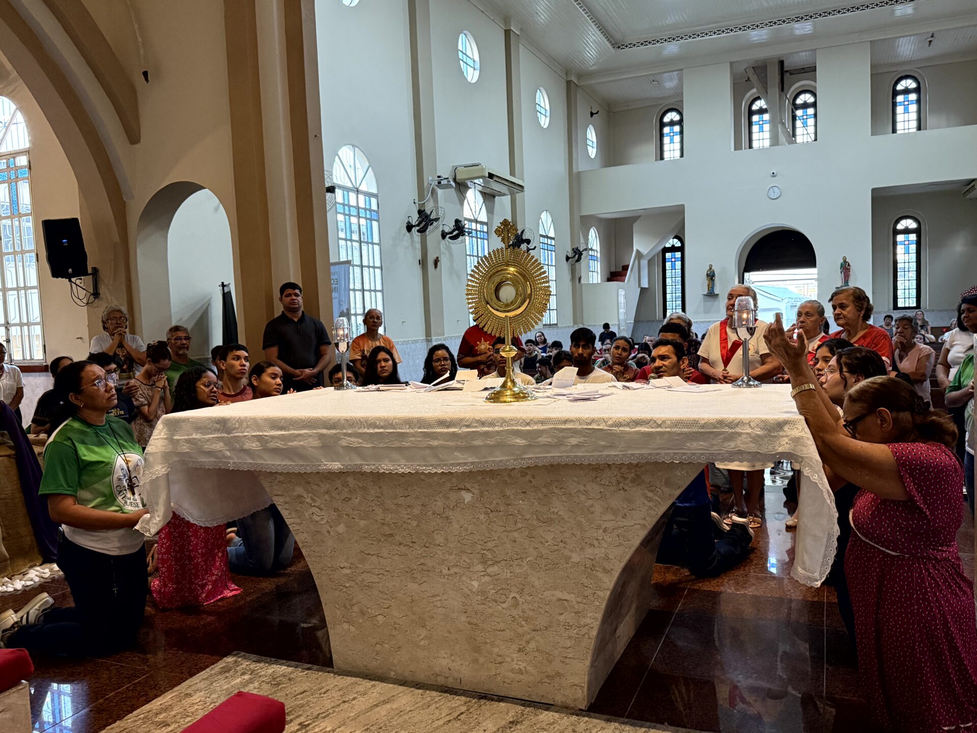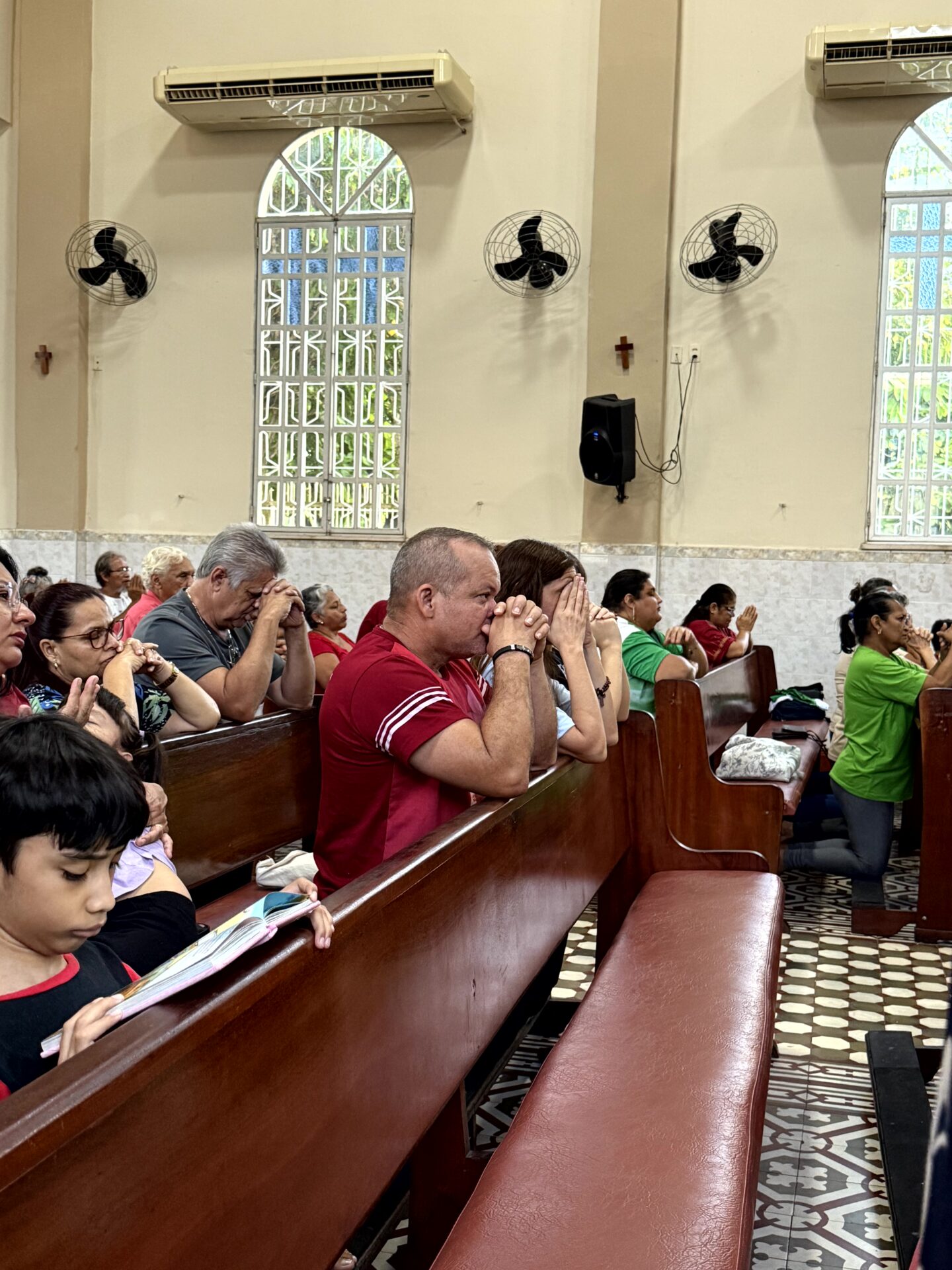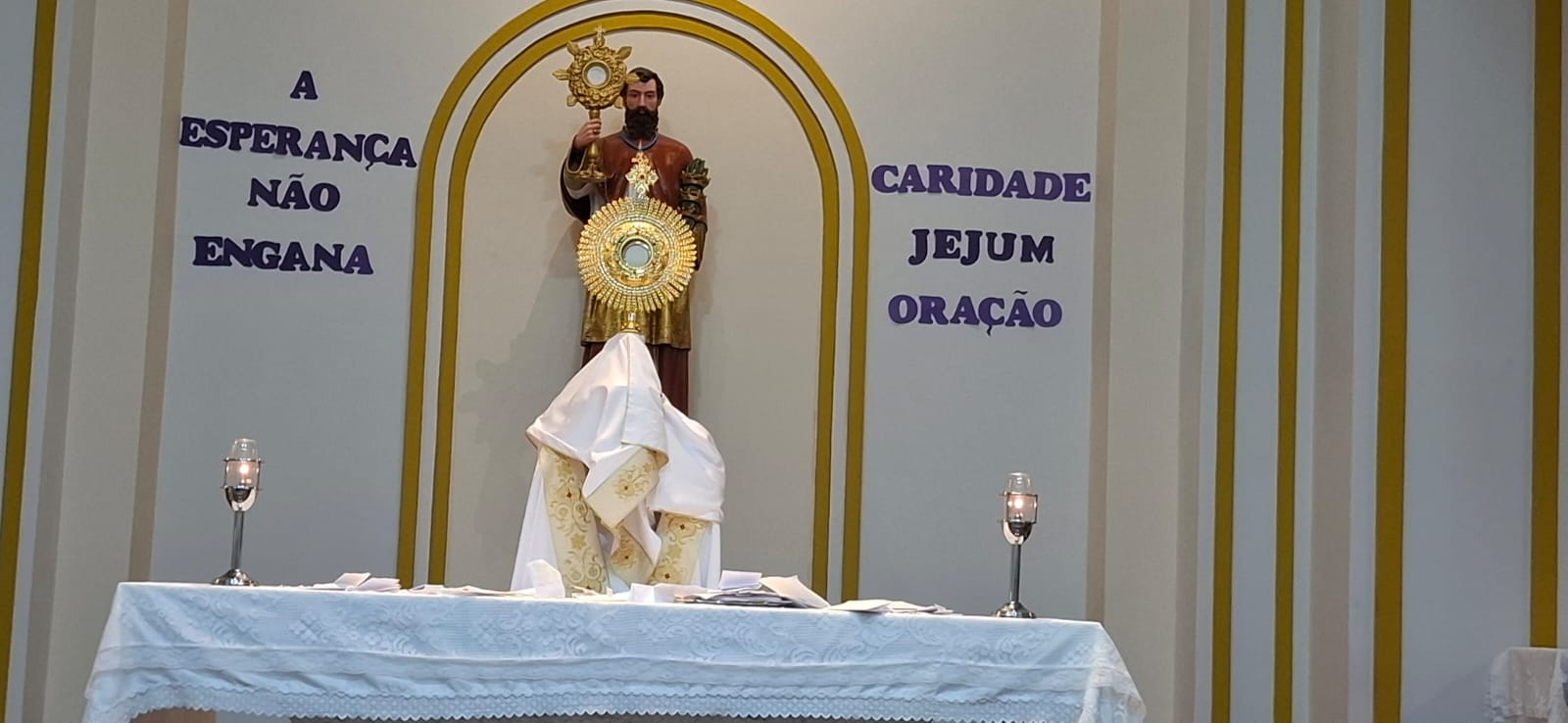 Sobre os pedidos por escrito, colocados aos pés do Senhor, o sacerdote pediu que todos unidos apresentamos à Virgem Maria, a Mulher Eucarística, Mãe de Deus e nossa mãe, a oração da Ave Maria. Ela intercede por nós junto a Jesus.
