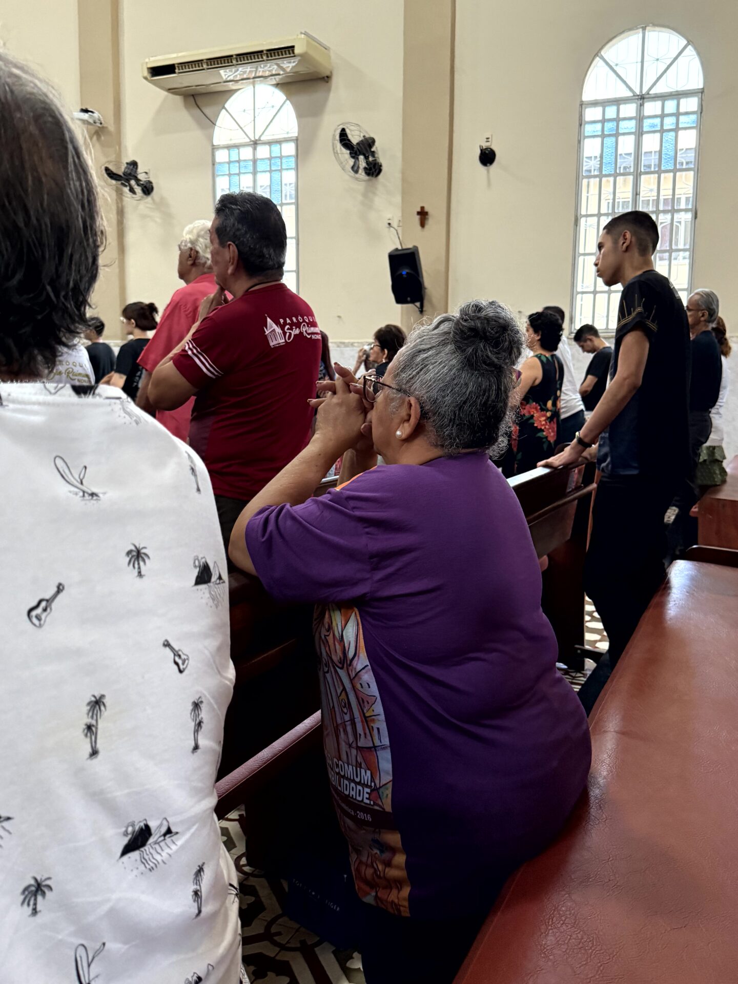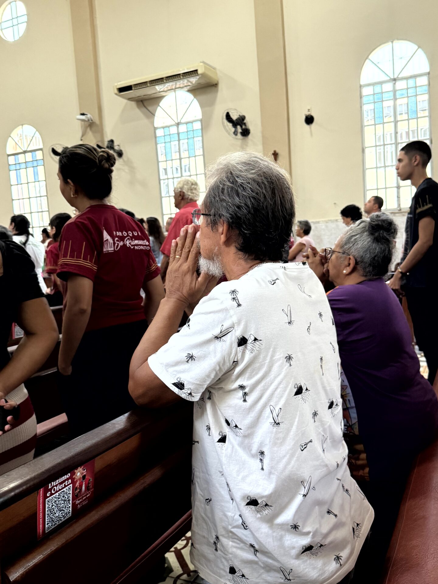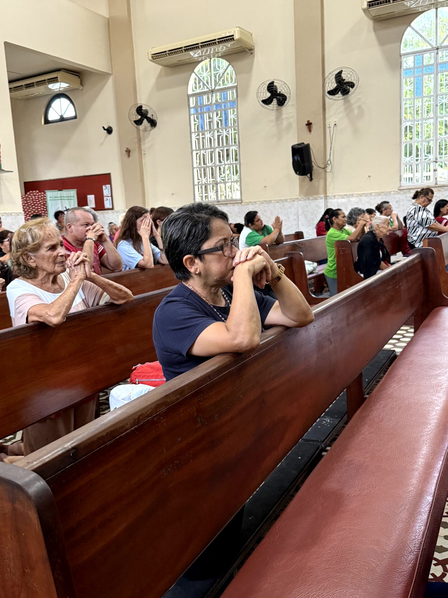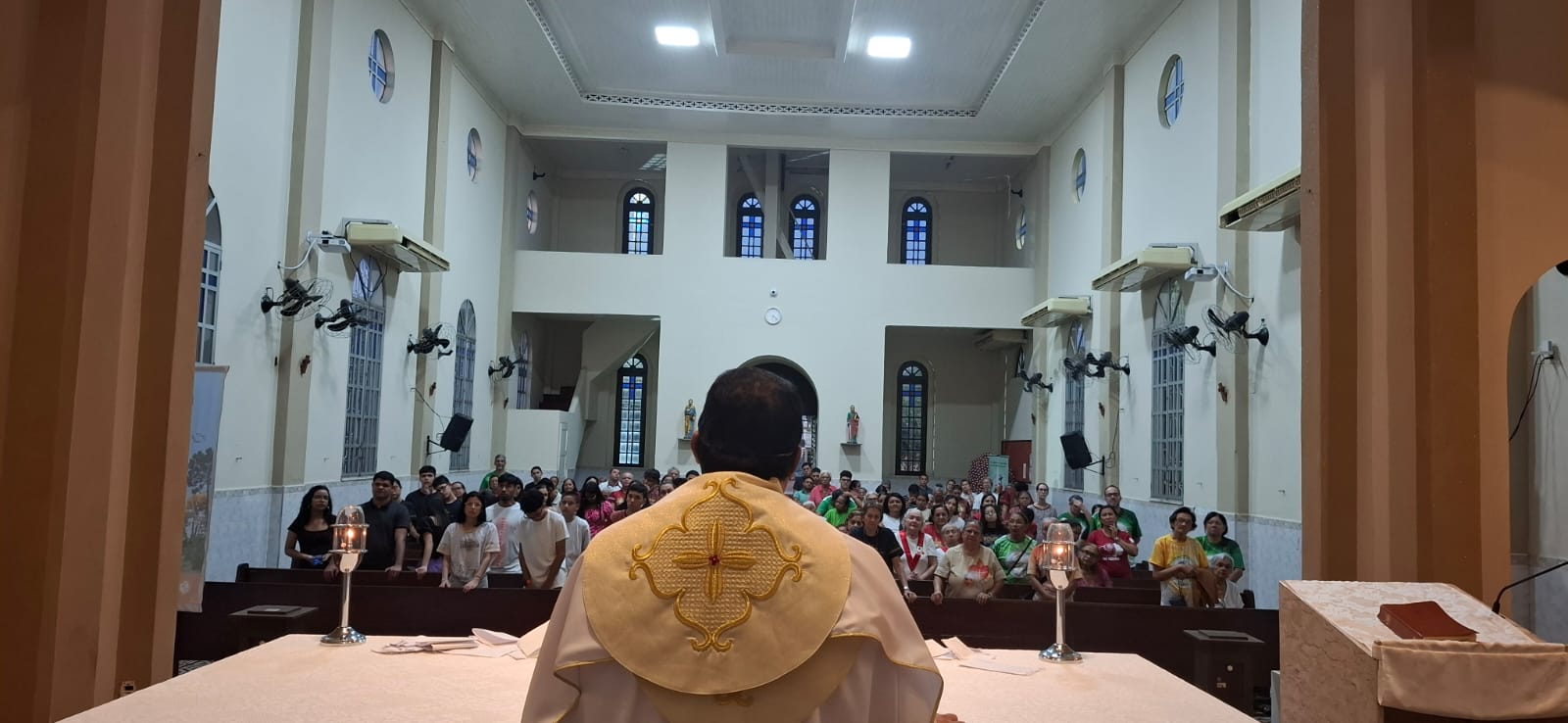 Sobre os pedidos por escrito, colocados aos pés do Senhor, o sacerdote pediu que todos unidos apresentamos à Virgem Maria, a Mulher Eucarística, Mãe de Deus e nossa mãe, a oração da Ave Maria. Ela intercede por nós junto a Jesus.