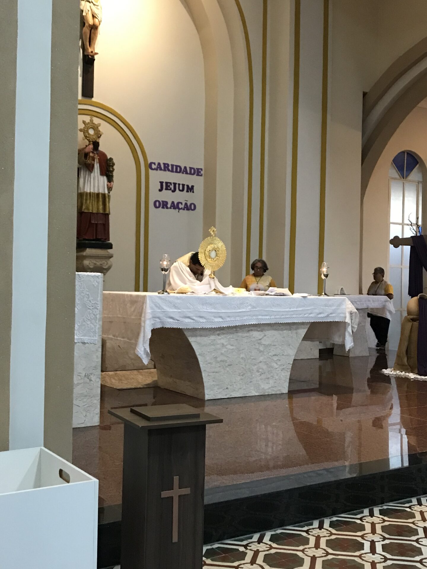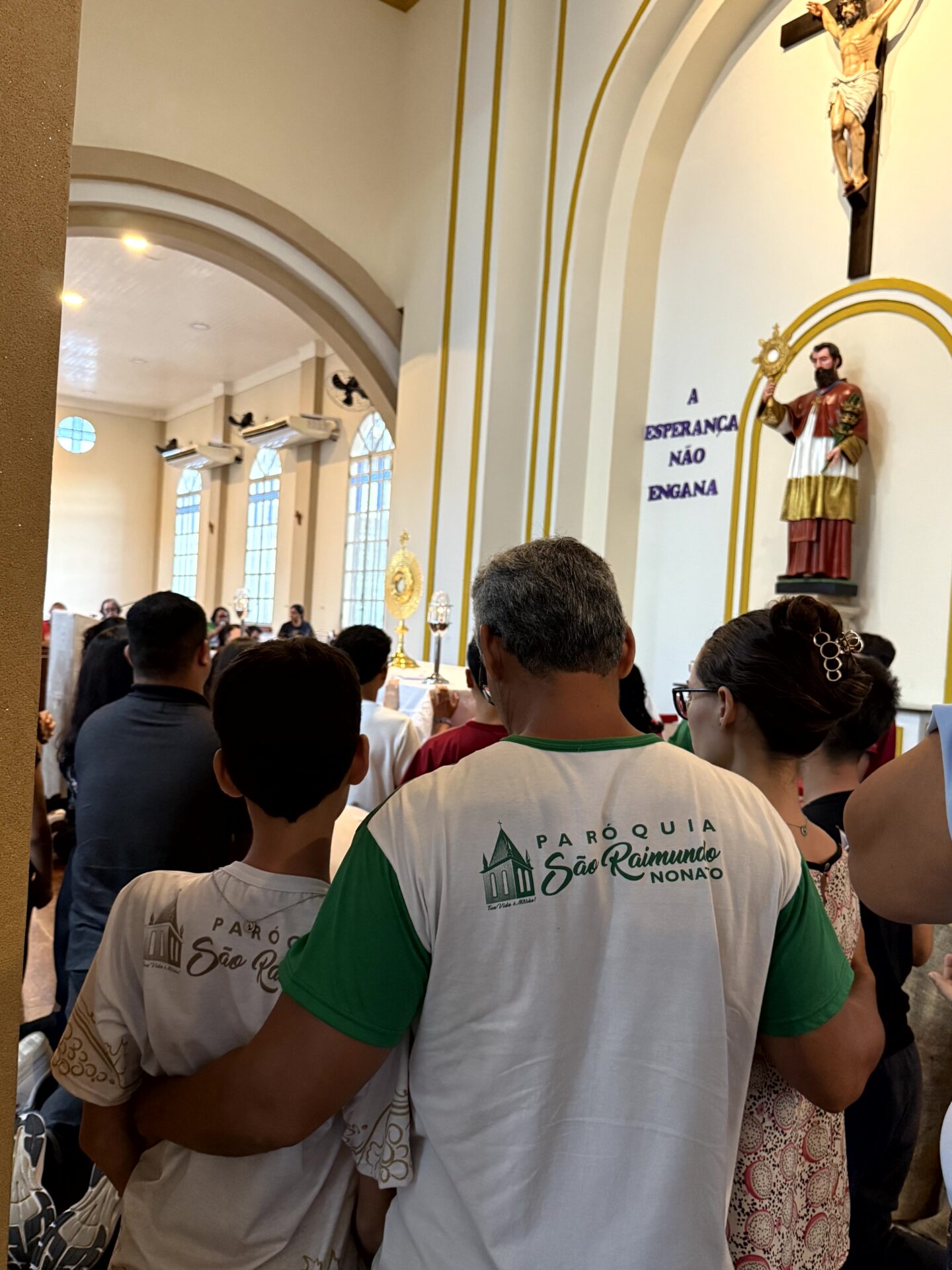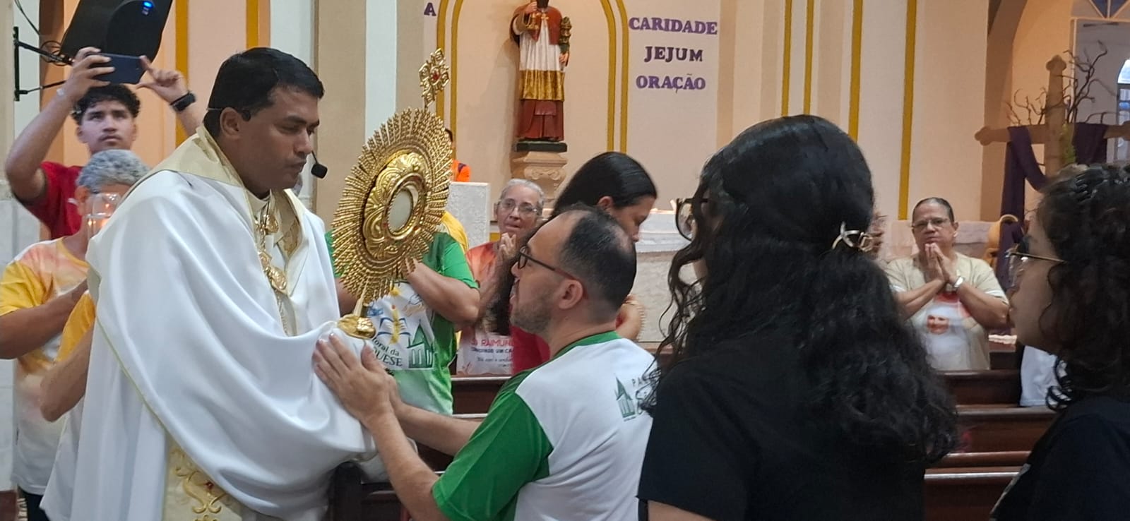 Em seguida, o Pe John Paul caminhou com Jesus Sacramentado em meio à multidão, que após a Vigília, ansiávamos em nossos corações, pela passagem do Senhor no meio de nós, onde pudéssemos tocar-lhe e crer que Ele nos recebe nesse momento, e entende o porquê do nosso refúgio nos braços do Pai, e somente Ele nos confirma a ESPERANÇA de sermos merecedores de receber suas graças. Após o passeio eucarístico, o sacerdote transmitiu a Benção do Santíssimo, num momento fortalecedor de paz, certeza e esperança que Deus está preparando dias melhores por vir.