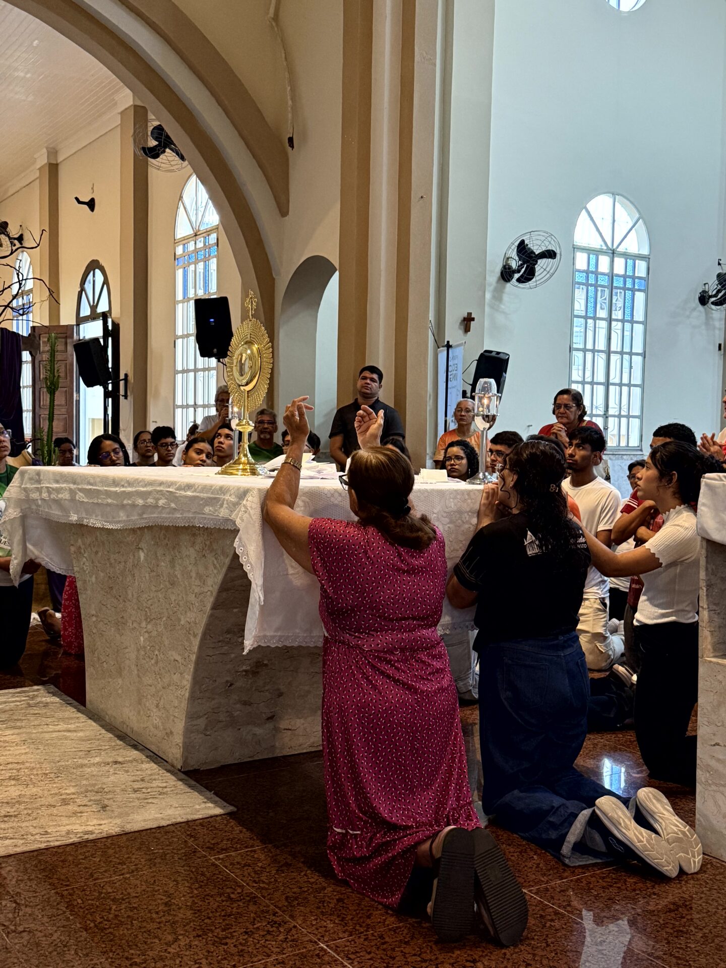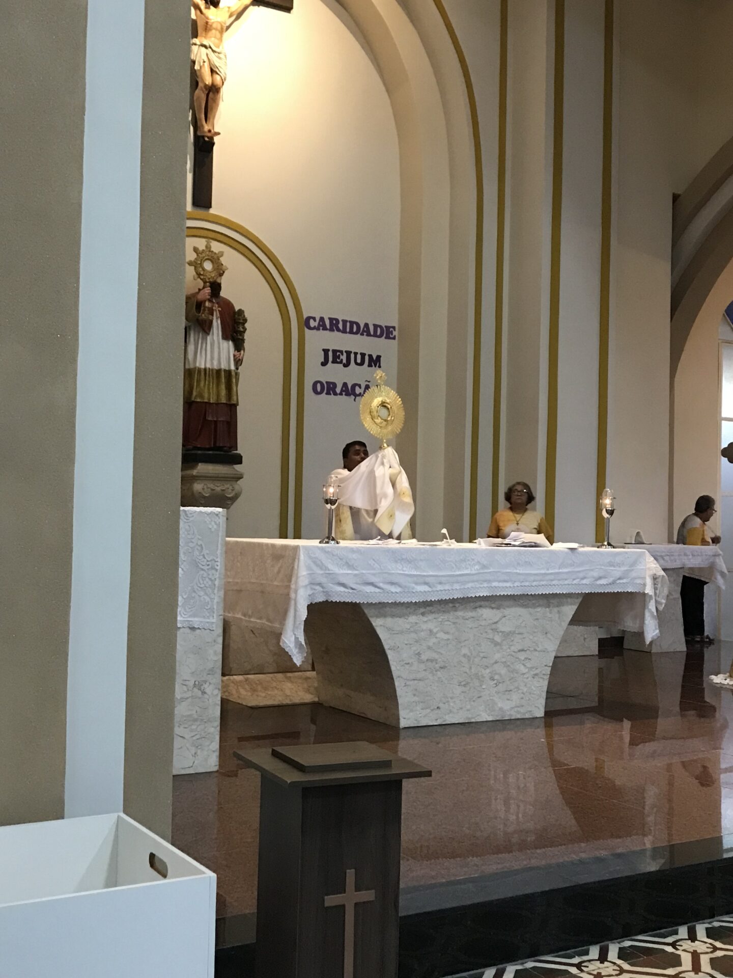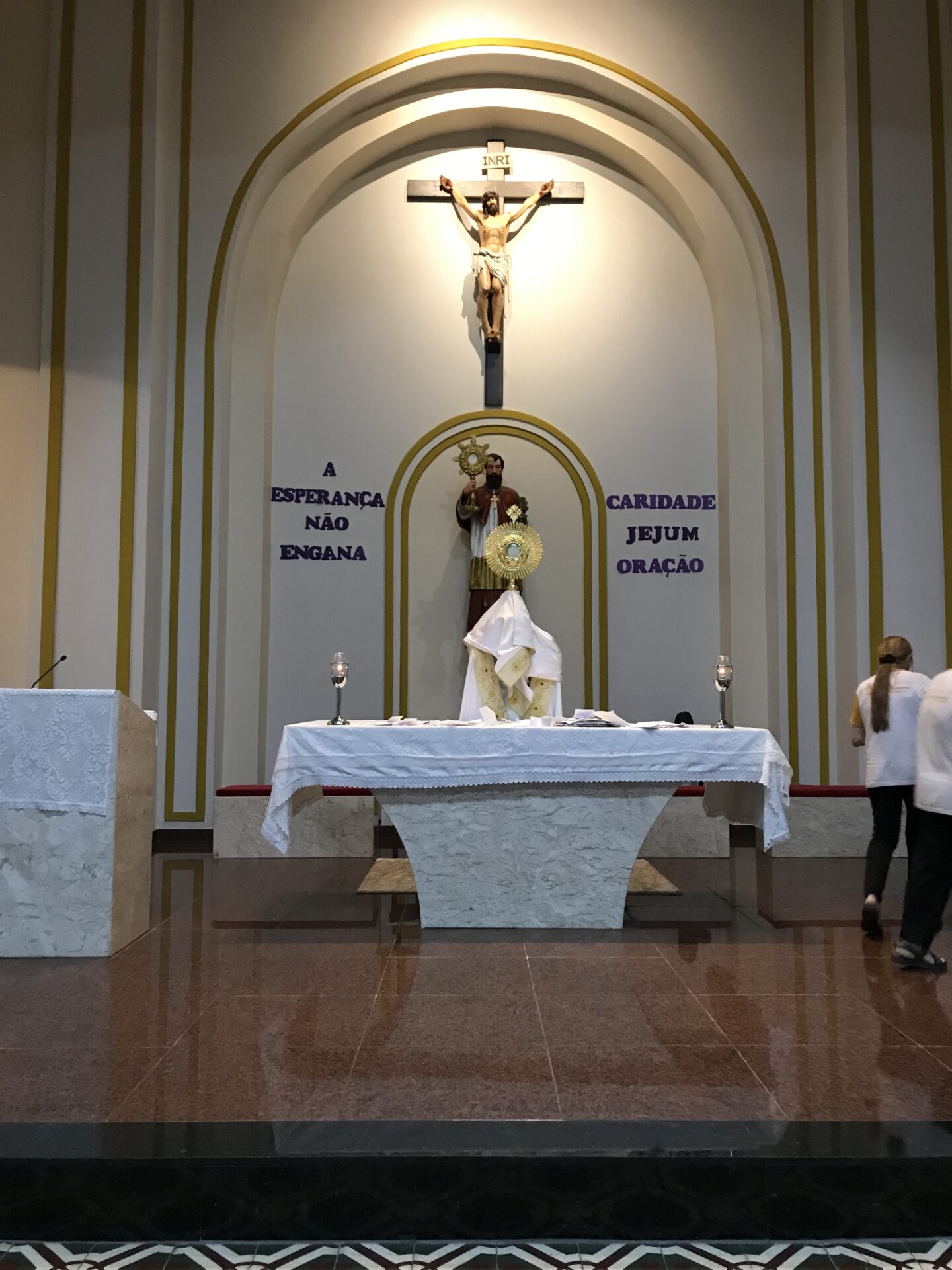 Em seguida, o Pe John Paul caminhou com Jesus Sacramentado em meio à multidão, que após a Vigília, ansiávamos em nossos corações, pela passagem do Senhor no meio de nós, onde pudéssemos tocar-lhe e crer que Ele nos recebe nesse momento, e entende o porquê do nosso refúgio nos braços do Pai, e somente Ele nos confirma a ESPERANÇA de sermos merecedores de receber suas graças. Após o passeio eucarístico, o sacerdote transmitiu a Benção do Santíssimo, num momento fortalecedor de paz, certeza e esperança que Deus está preparando dias melhores por vir.