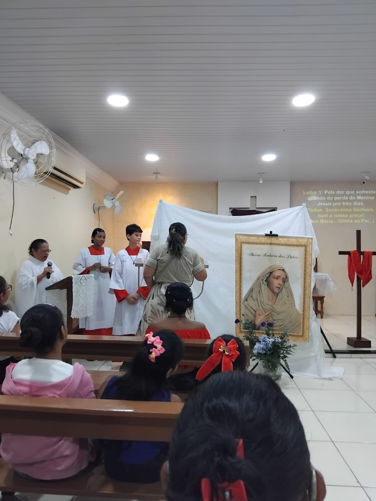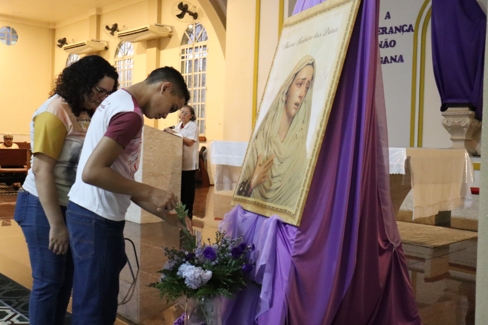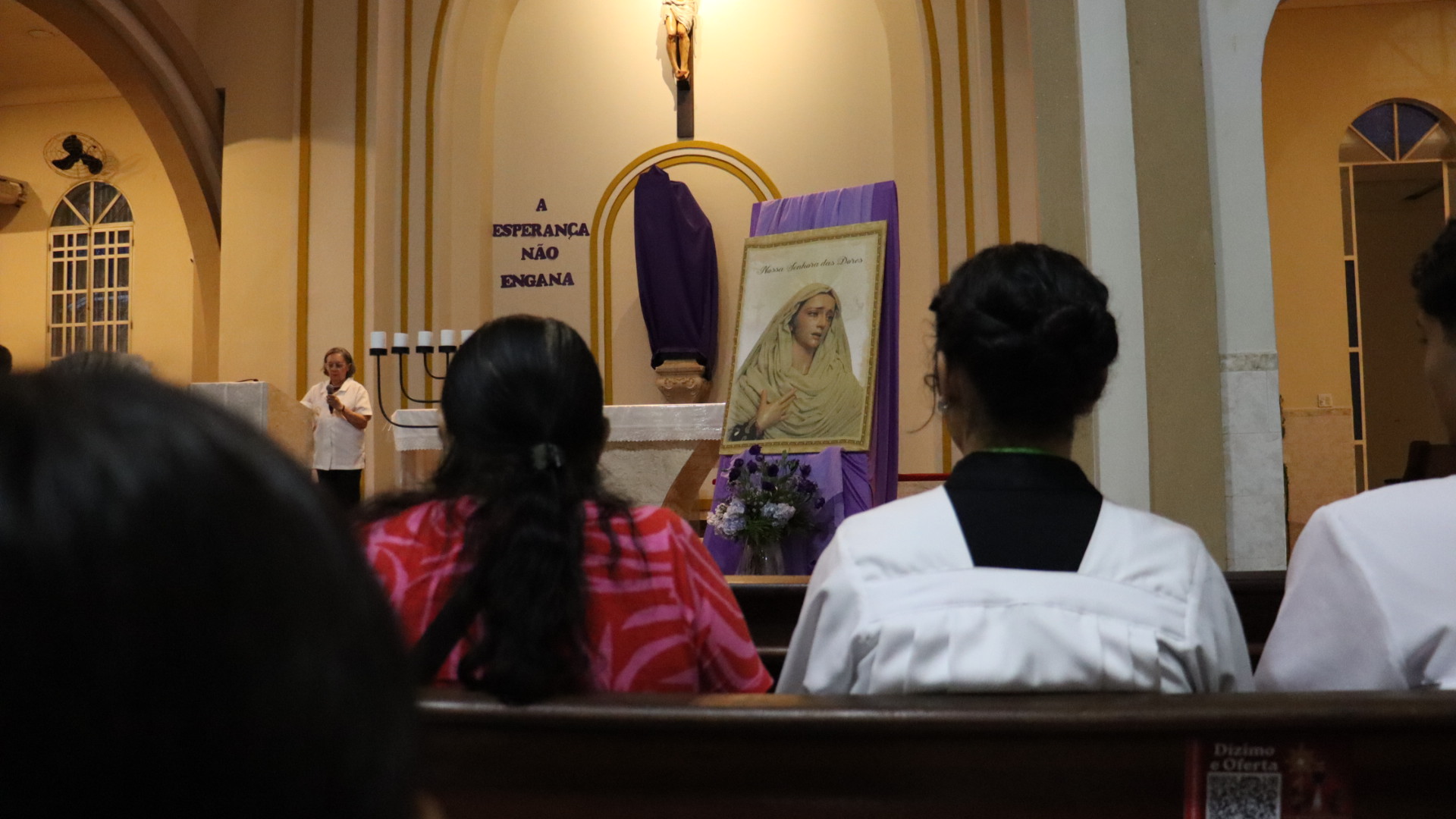 Nesta segunda-feira da Semana Santa (14/04), meditamos e contemplamos às Dores de Nossa Senhora com o tema: MARIA ESPERANÇA DO POVO. Contemplamos alguns momentos dolorosos que marcaram a vida de Maria, que nos permitirão compreender melhor o imenso amor e sacrifício da Mãe de Deus, desde quando aceitou ser a Mãe do Salvador. As celebrações aconteceram nas Comunidades São Raimundo Nonato e Beata Maria Assunta com a participação de uma numerosa assembleia que vivenciou este momento tão significativo da Semana Santa.